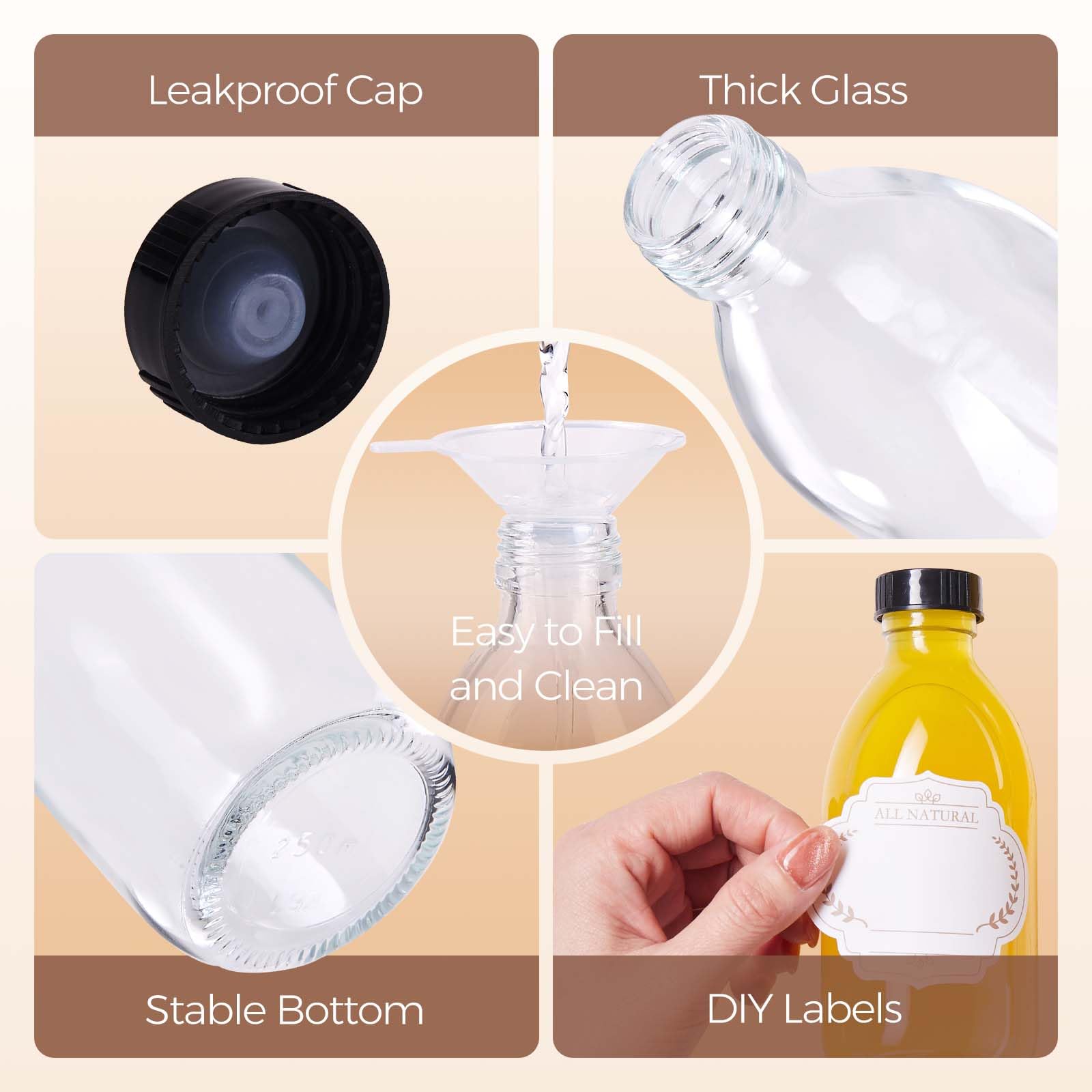 Premium Quality & Clarity: Crafted from high-quality, lead-free glass, these Glass Juice Bottles offer crystal-clear visibility. Perfect for showcasing the vibrant colors of your fresh-pressed green juices, smoothies, or nut milks.
