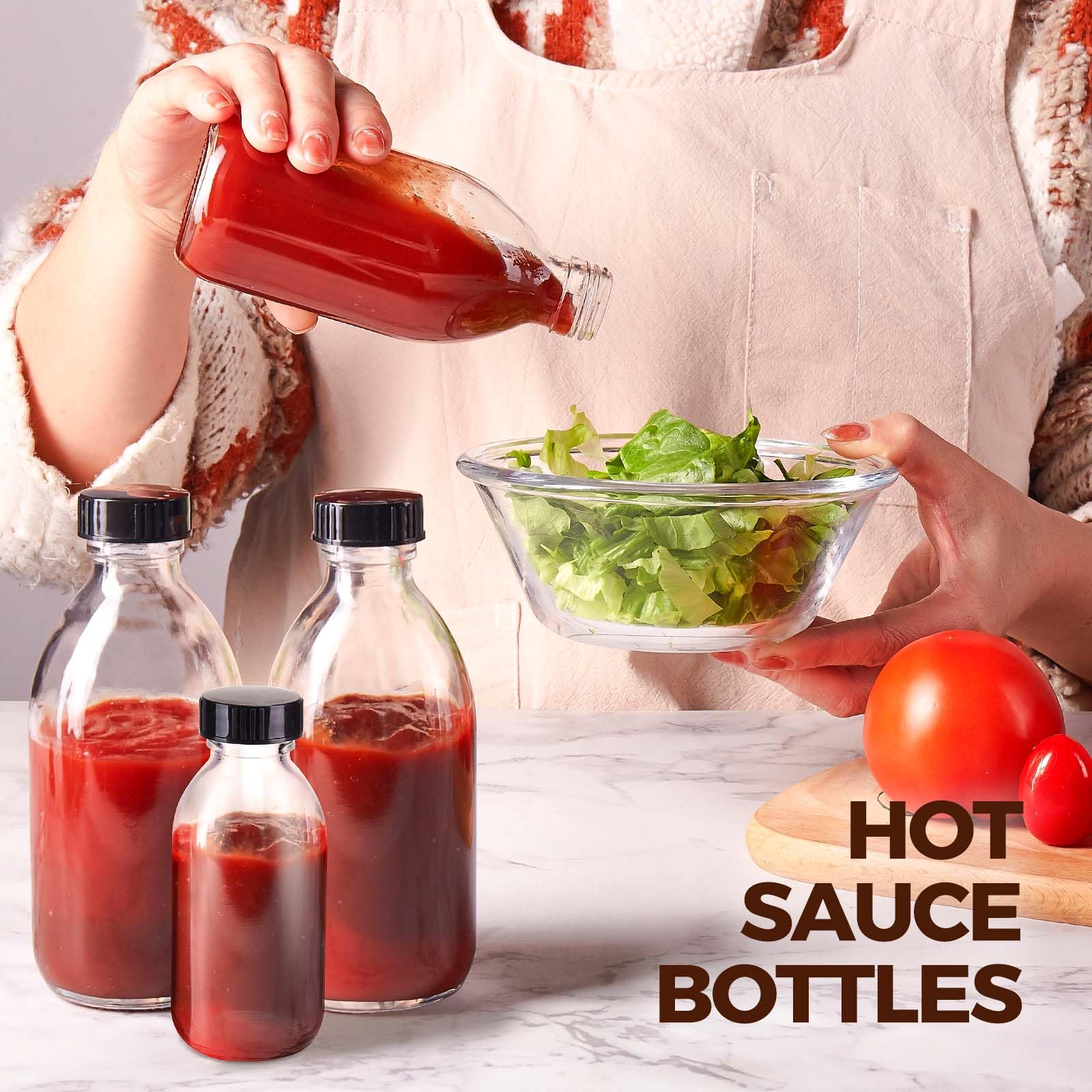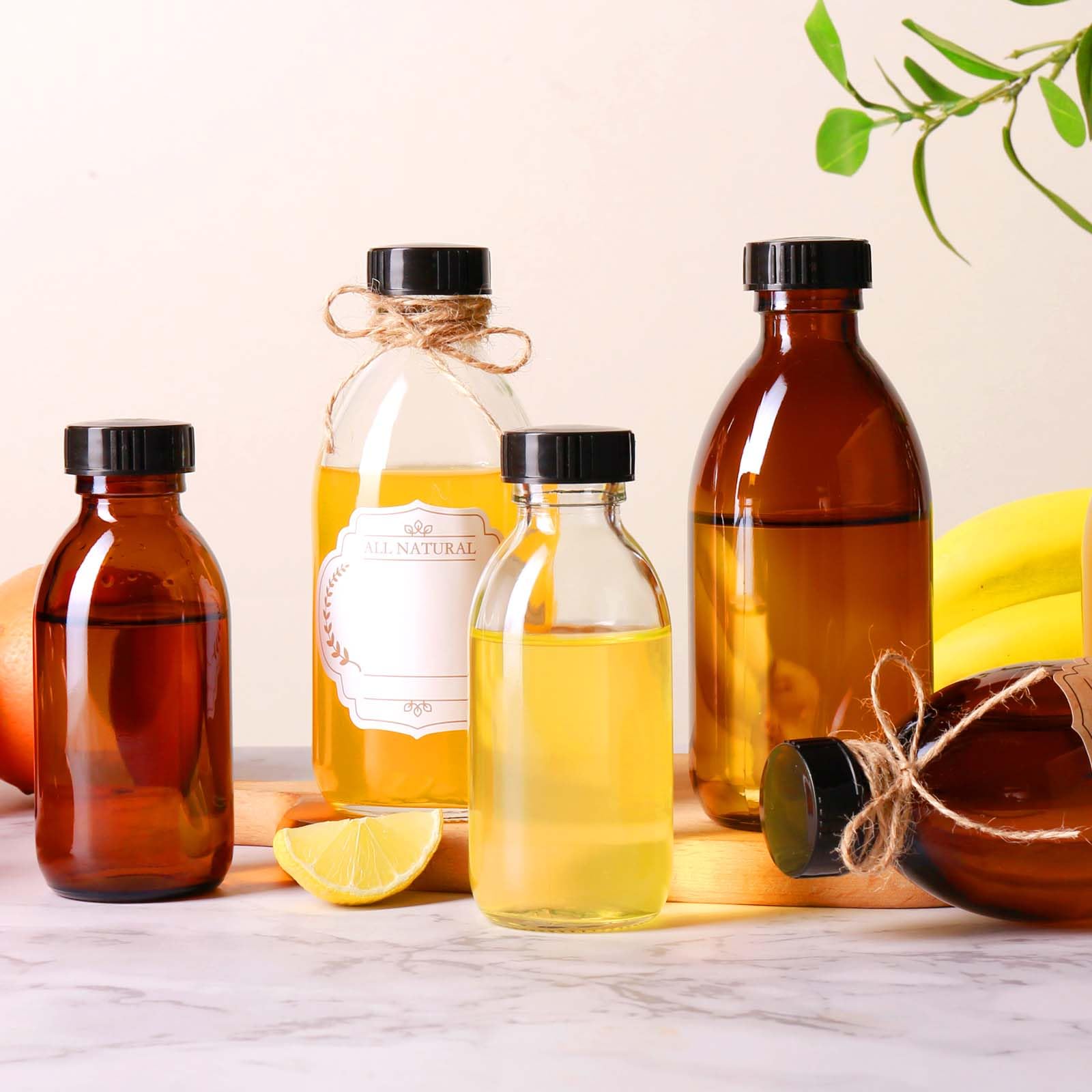 Airtight and Leakproof: Each glass bottle features a black phenolic cap with a polycone liner, creating a tight, leak-proof seal. This makes them perfect for storing essential oils, liquids or fermented goods without any risk of spillage or contamination.