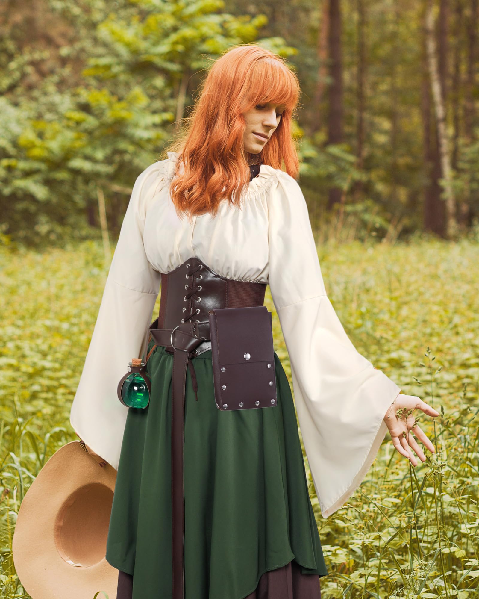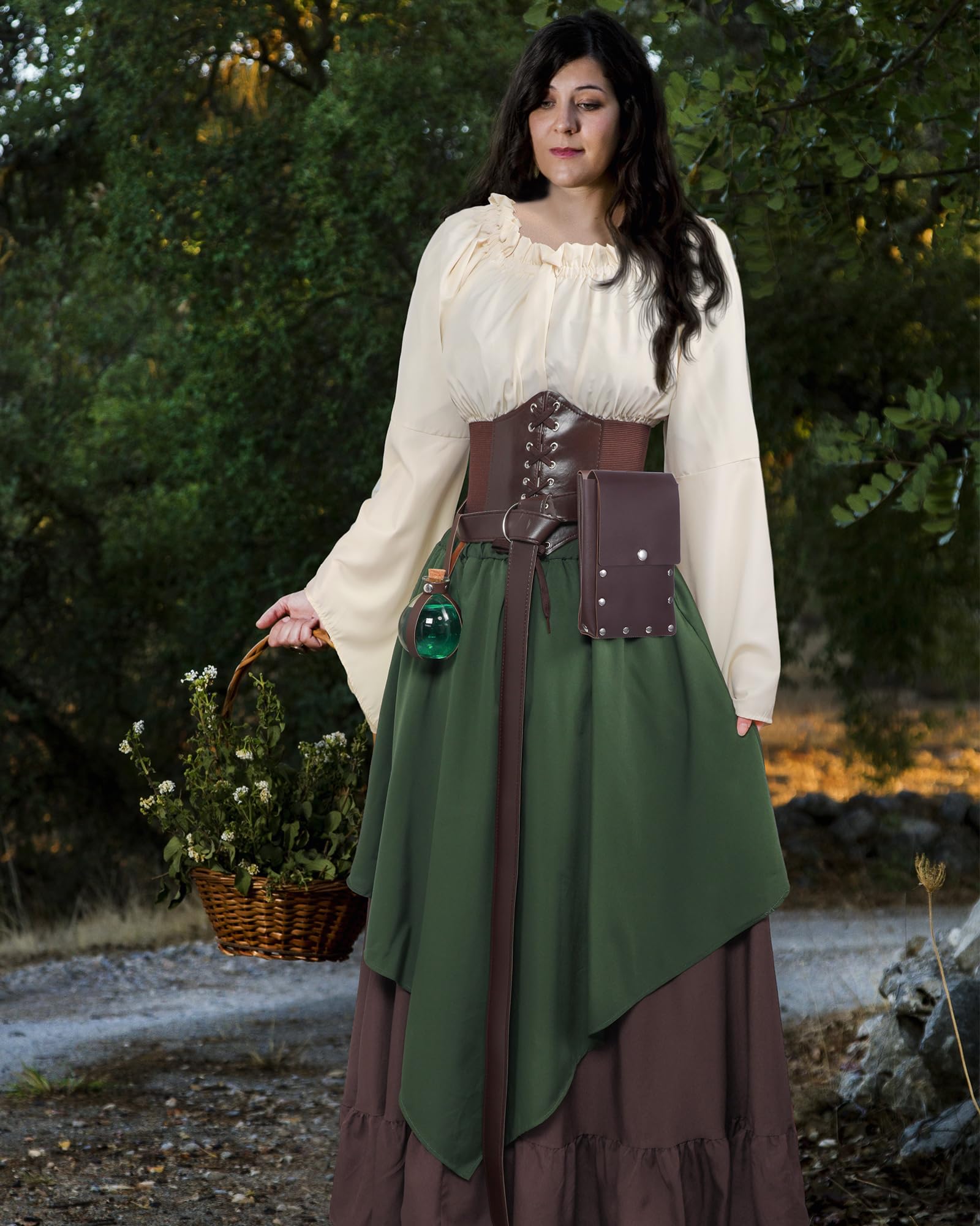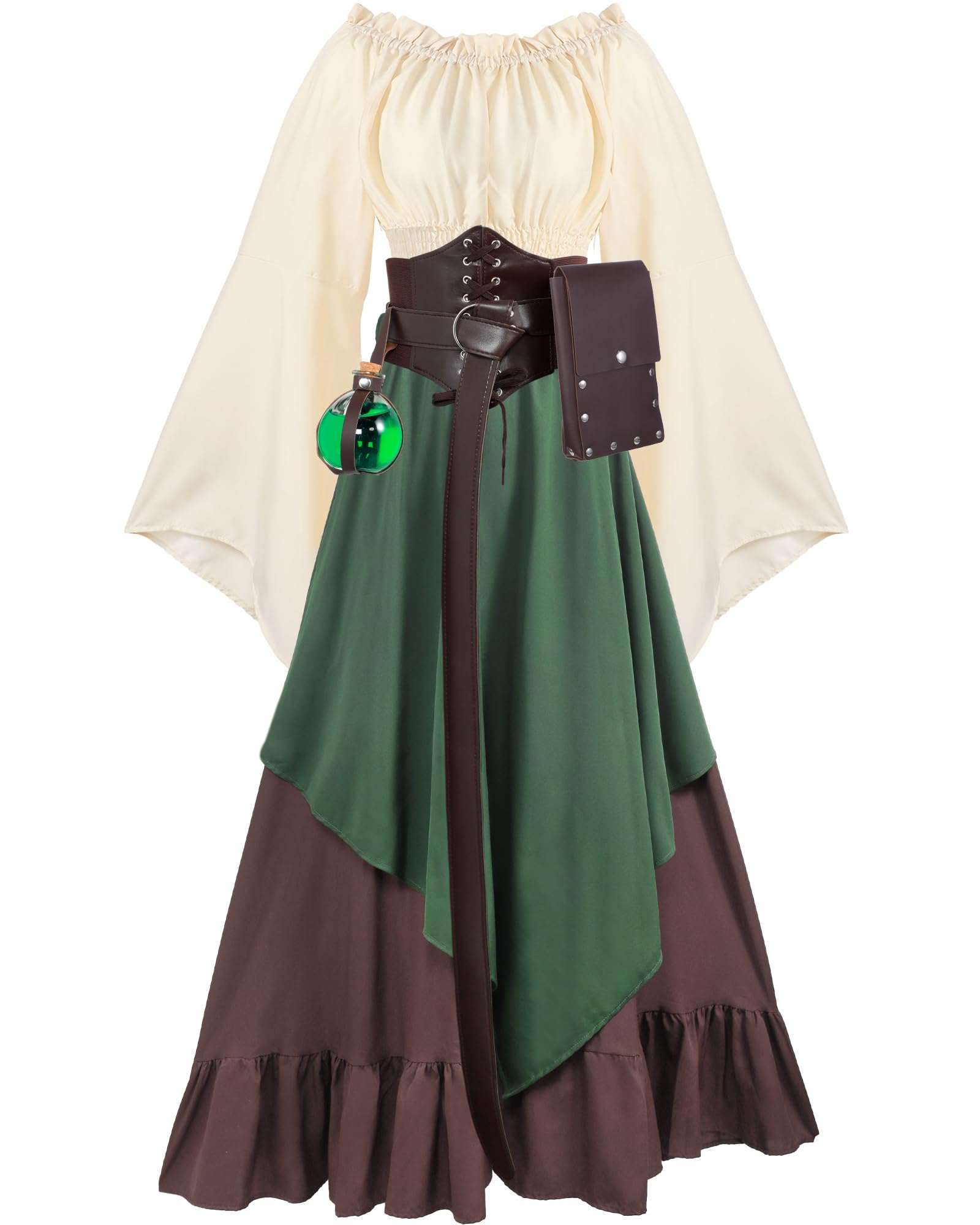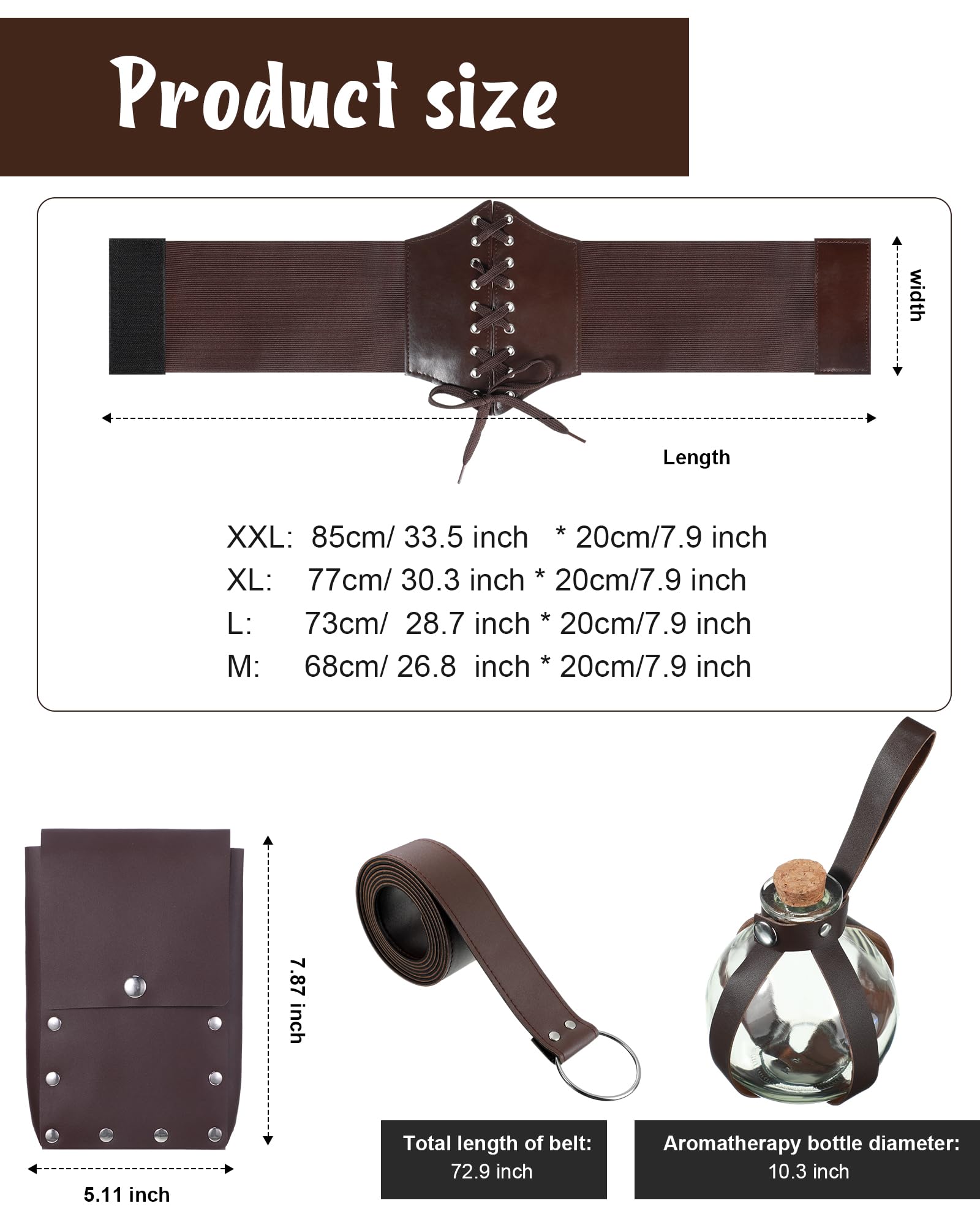 What's Included in the Package: the package comes with 1 piece of potion bottle with cork, 1 piece of pouch, 1 piece of leather belt, and 1 piece of corset waist belt, and 1 piece of Victorian dress, you can wear them in a suit, or wear them separately