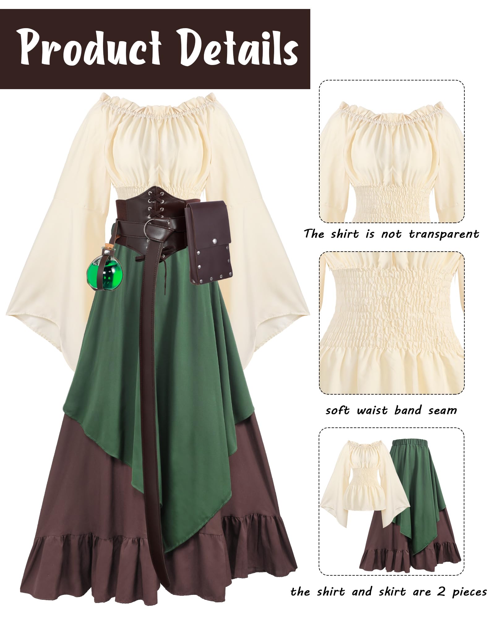 Multiple Purpose of Usage: this medieval wench costume can be widely applied to renaissance theme parties, weddings, cosplay party, Halloween party, dancing party, farmers theme parties, performing arts, and more