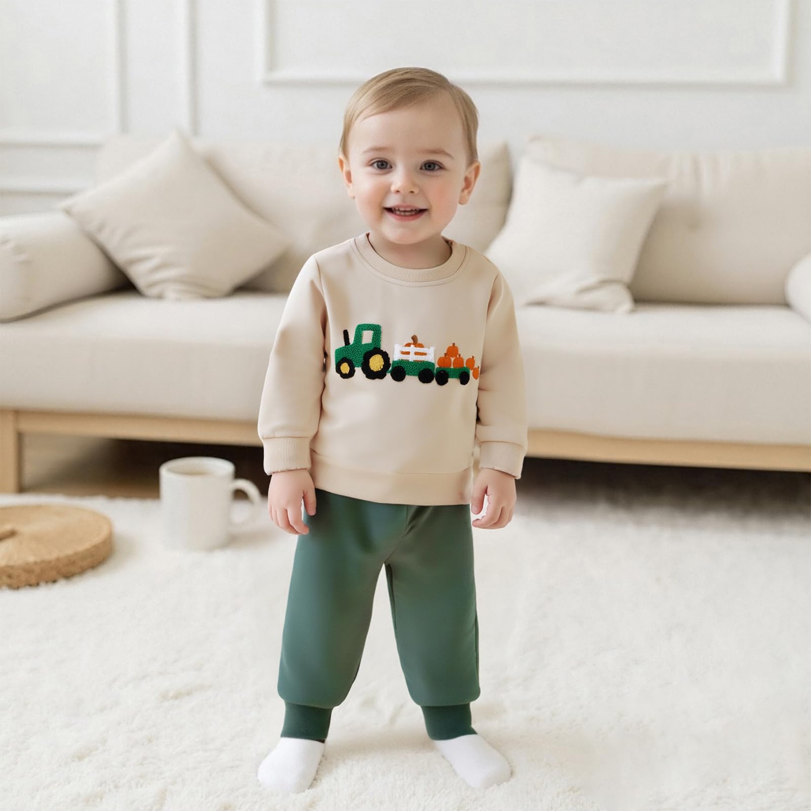 Material: Toddler boy fall outfit, made of high quality cotton blend, soft and breathable, light weight and skin friendly, No worrying that it will do harm to your kids' skin. Trendy trucks toddler boy clothes, baby boy outfits