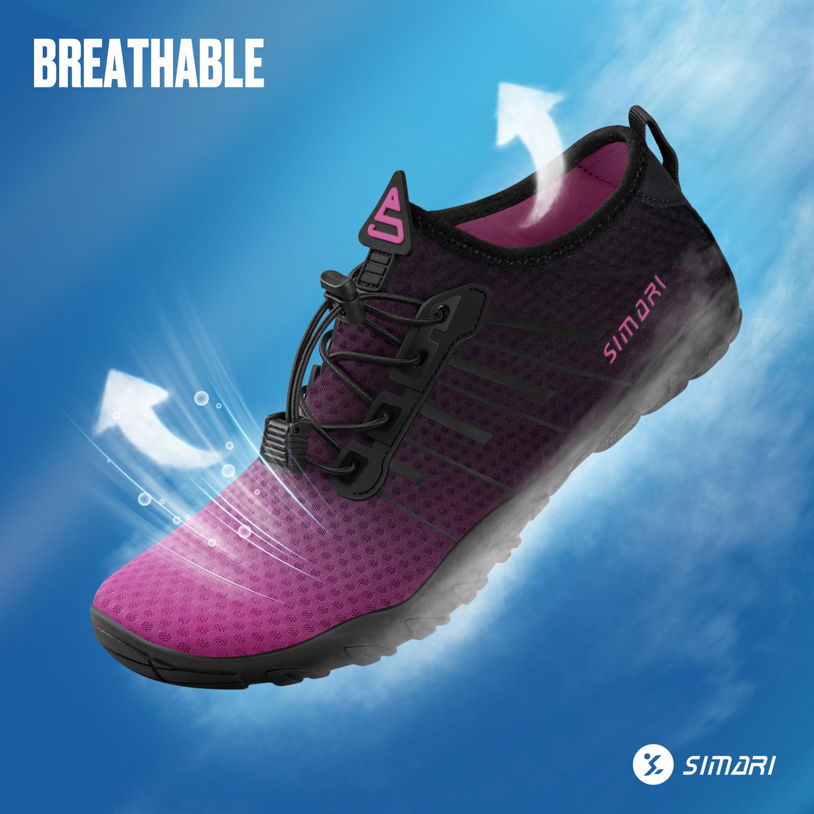 Quick-Dry Swim Shoes with Drainage Holes: 360° Drainage System, Water drains instantly through soles and insoles. The air-mesh fabric dries faster than regular pool shoes—perfect for diving, wakeboarding, canyoneering, cruise travel and water aerobics.