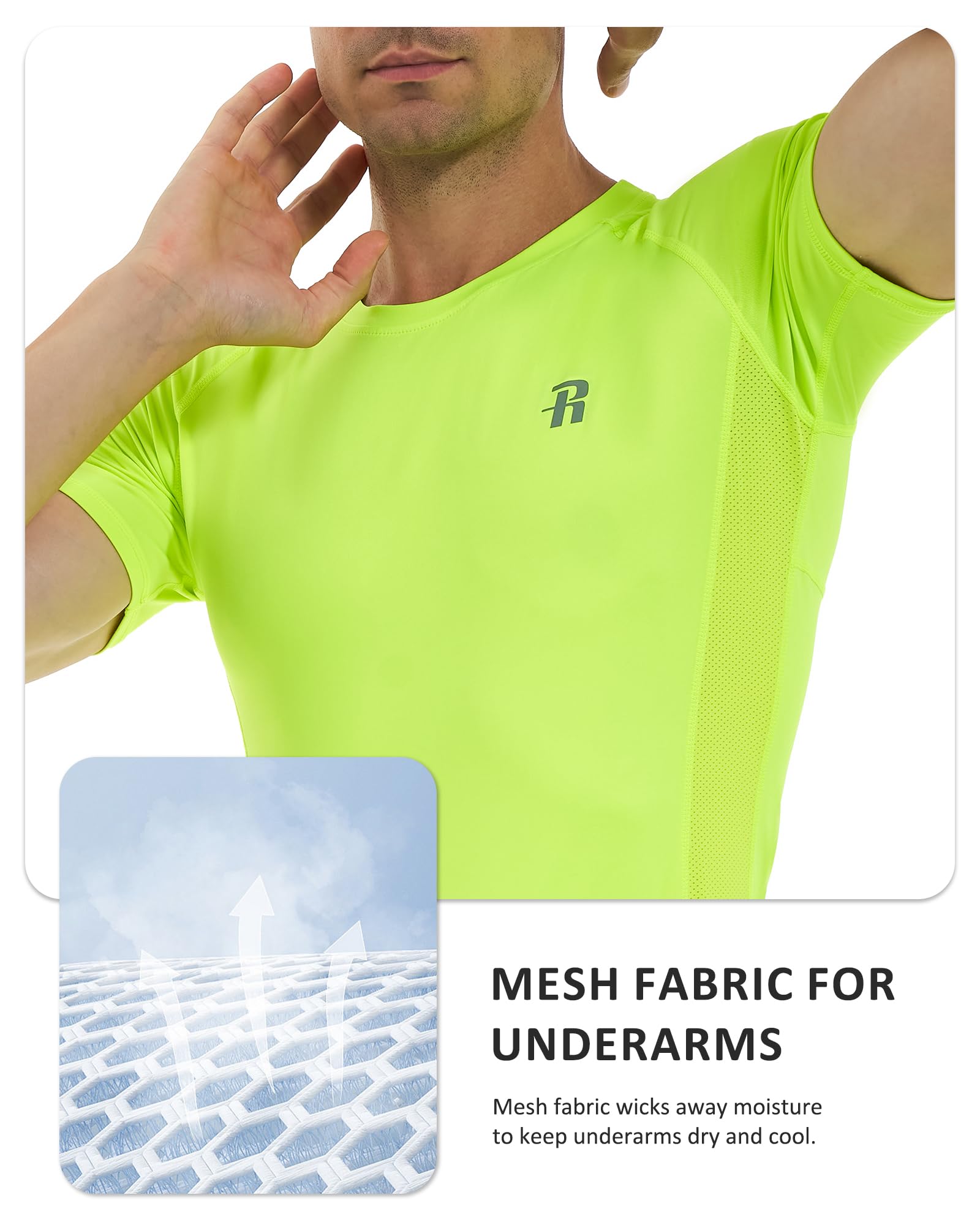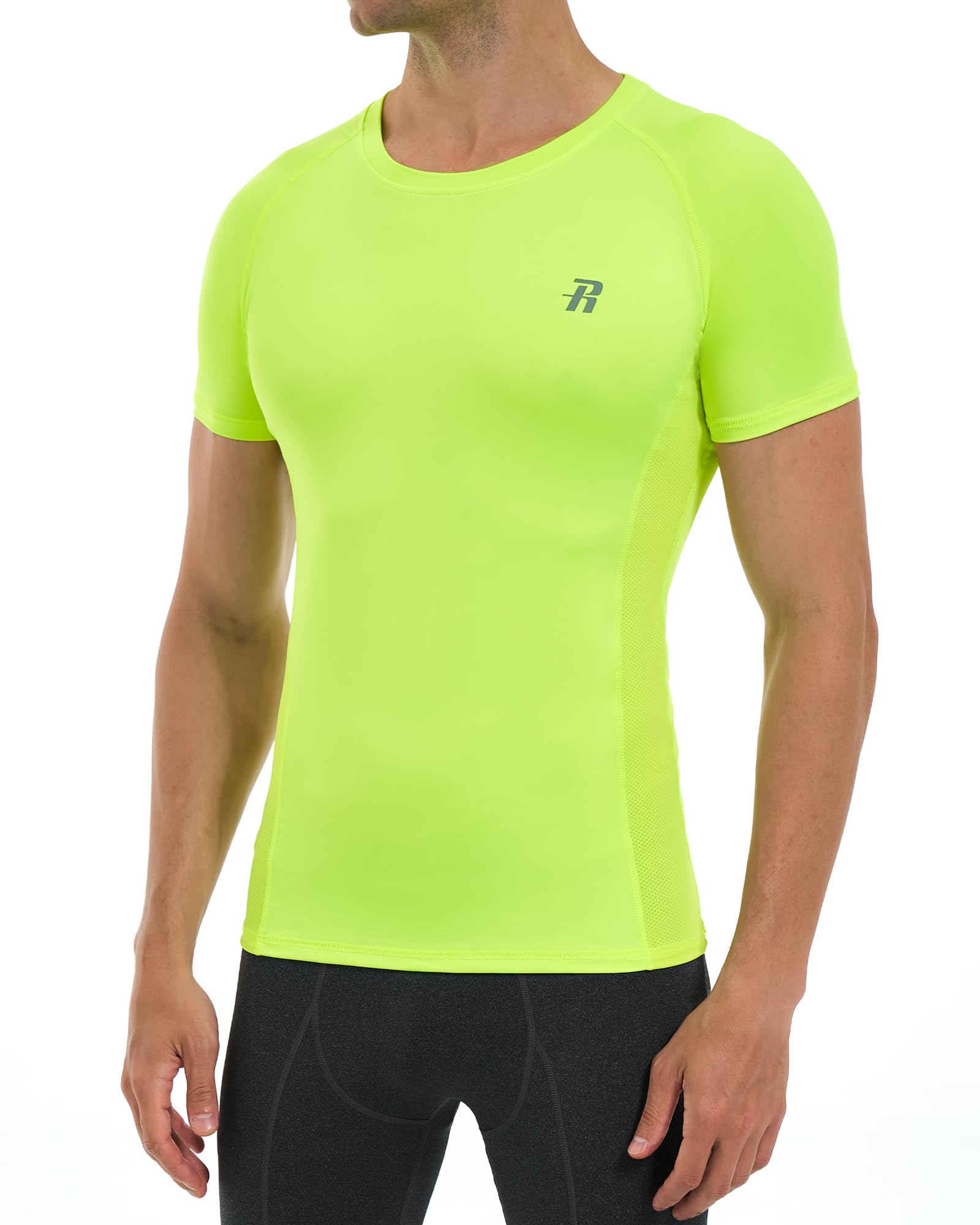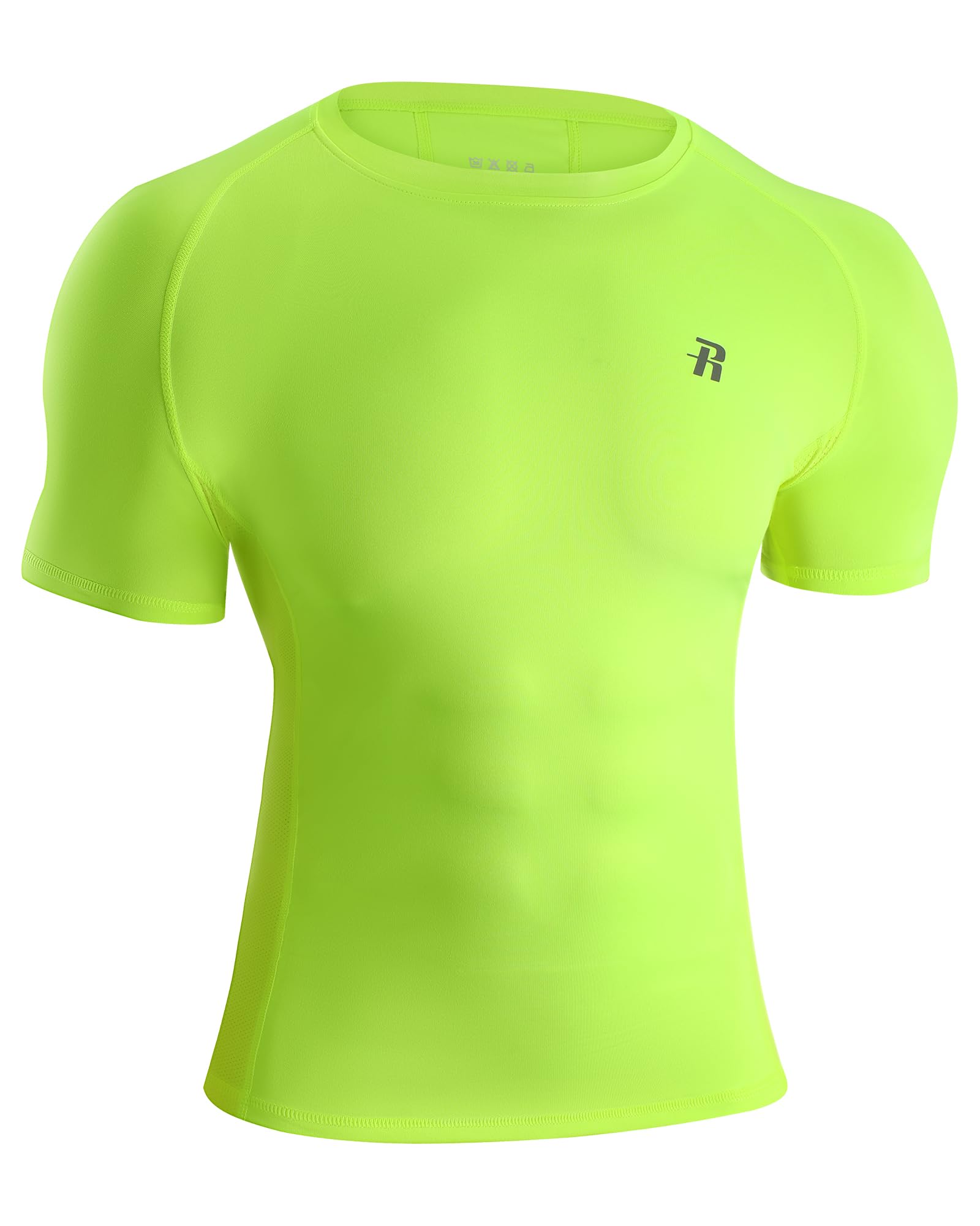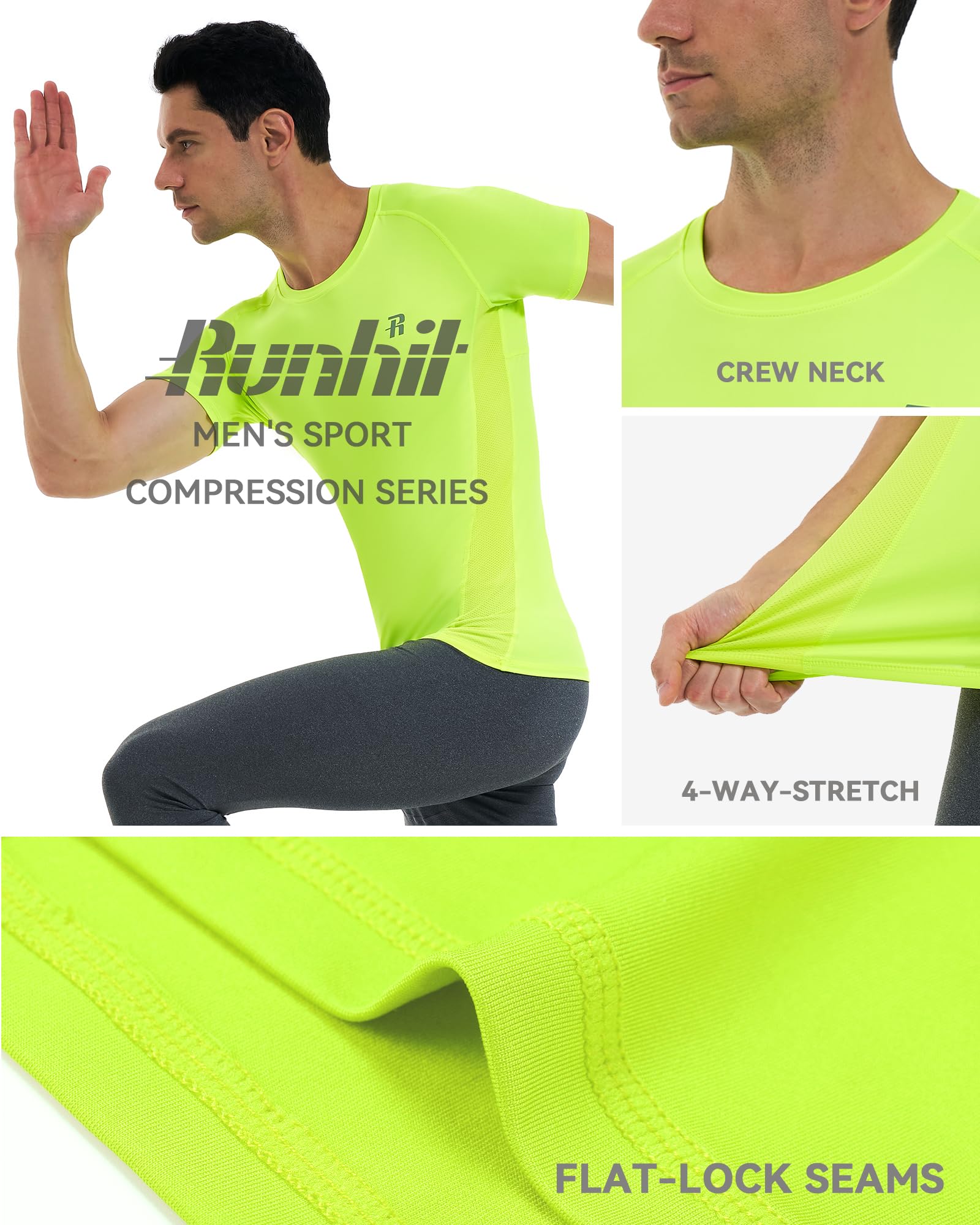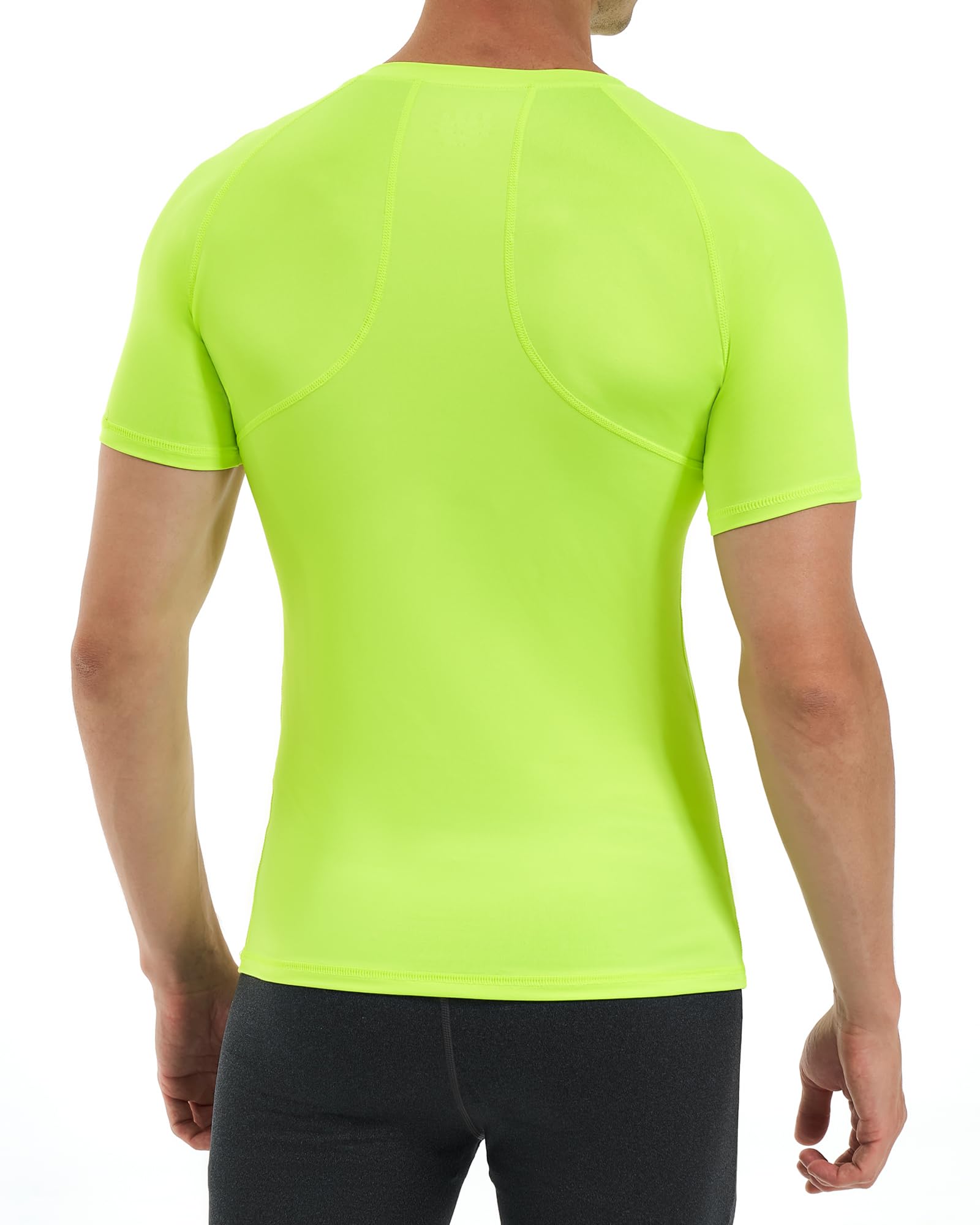 [Four-Way Stretch]: This men short sleeve compression shirt snugly conforms to your skin, providing stable support and helping to reduce muscle fatigue. Smooth flatlock seams and tagless design help minimize friction, ensuring a pleasant and comfortable experience during physical activities.
