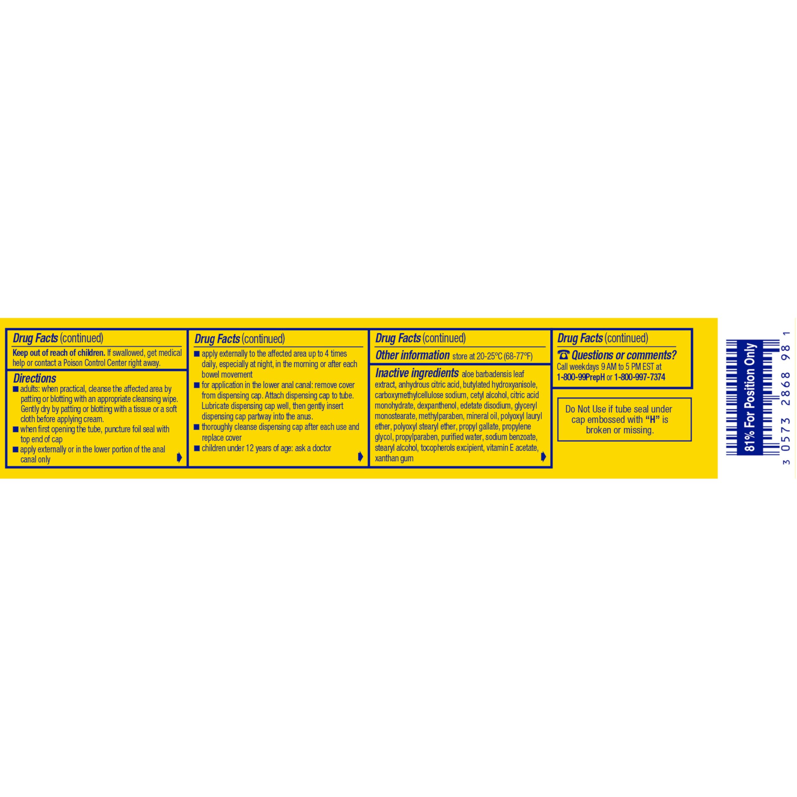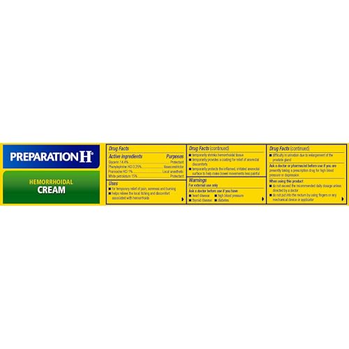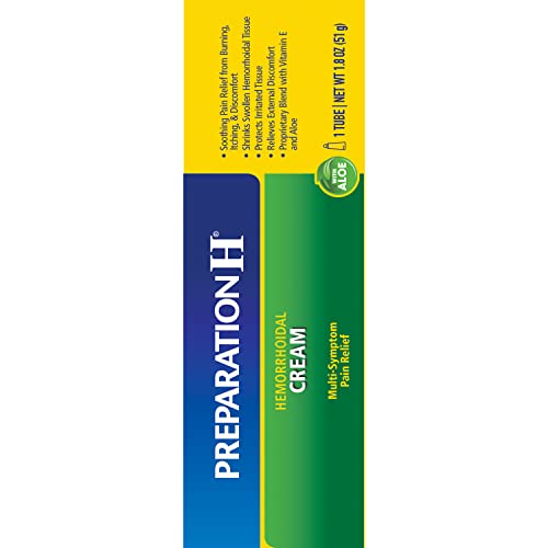 If you're asking what to do for hemorrhoids that disrupt your day, turn to Preparation H Multi-Symptom Pain Relief Cream. Among over the counter brands, it is the only hemorrhoidal cream with maximum strength pramoxine for multi-symptom hemorrhoid relief. Apply up to four times daily for rapid hemorrhoid pain relief that can help you get back to what you want or need to do. Hemorrhoids can flare-up at any time with a variety of symptoms including anus itching, burning, pain and discomfort. In fact, 75% of American men and women experience symptoms of hemorrhoids in their lifetime. While symptoms and number of flare-ups can vary from person to person, Preparation H Multi-Symptom Pain Relief Cream rapidly relieves external hemorrhoid discomfort. The smooth, cream formula is a unique blend with vitamin E, panthenol and soothing aloe to provide comfortable hemorrhoid treatment. And for better relief, use Preparation H Medicated Wipes to cool, soothe and cleanse before treating with Preparation H maximum strength cream. NET WT 1.8 OZ (51g) (1) Provoice survey dated from May 2015-August 2017 supports Preparation H is the #1 doctor recommend brand.