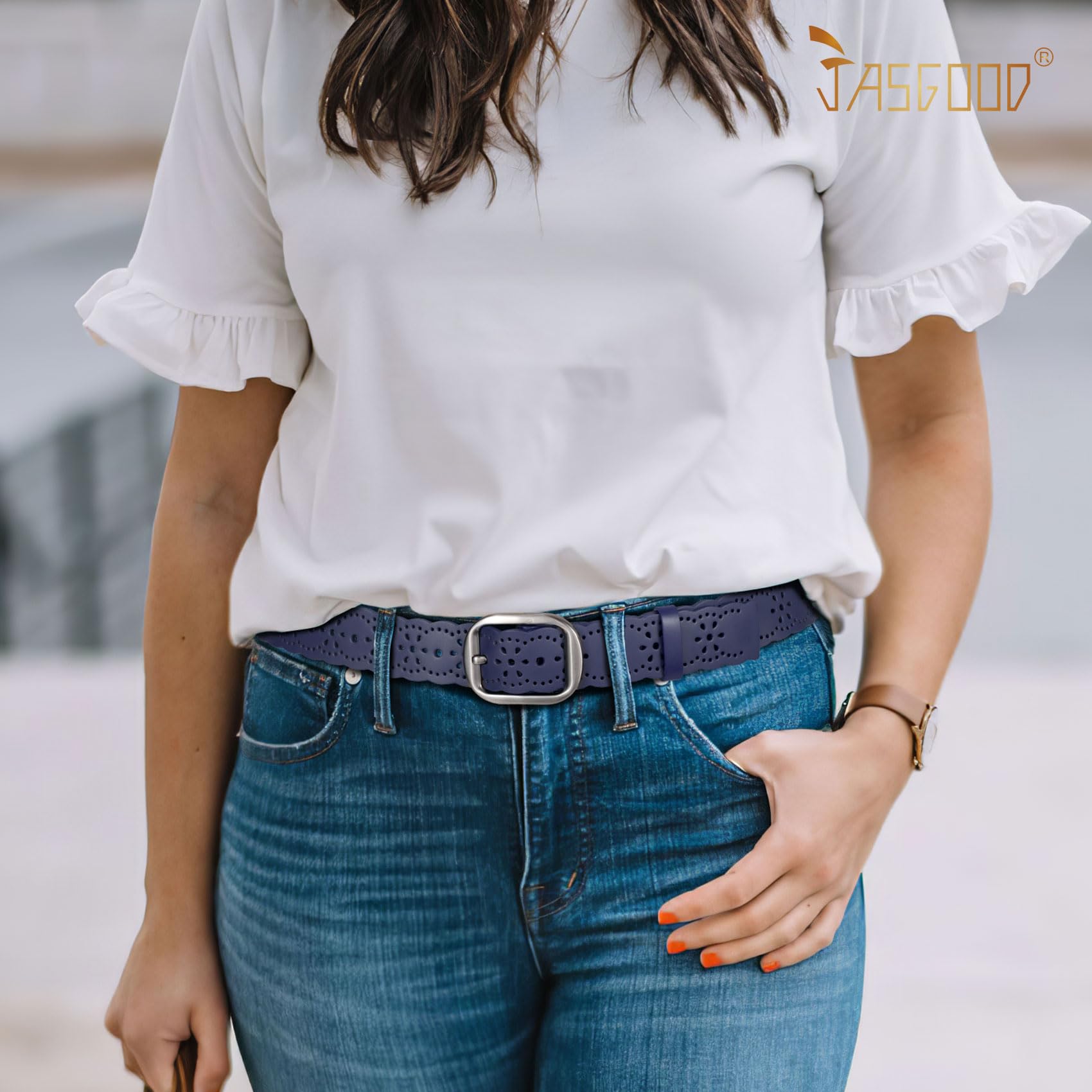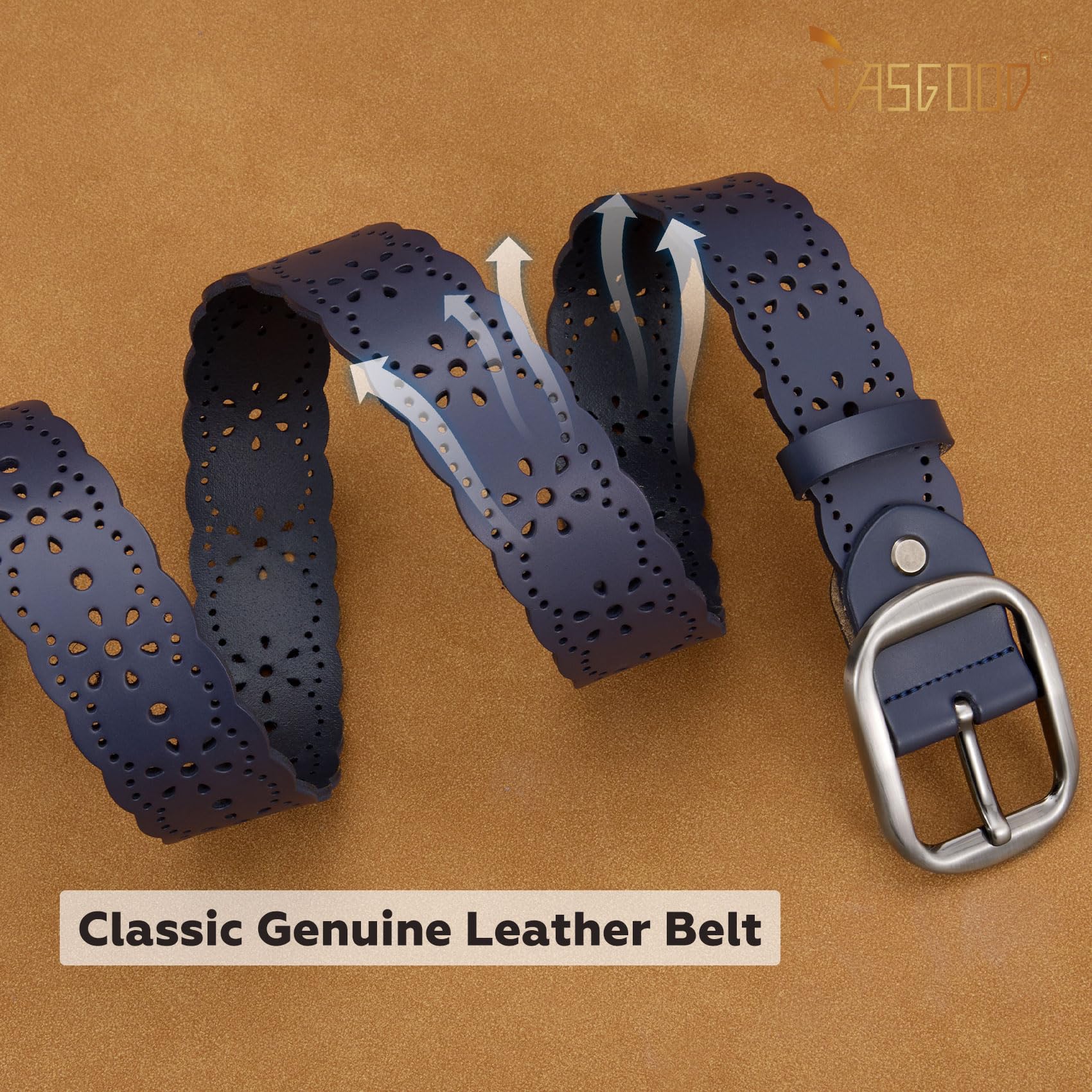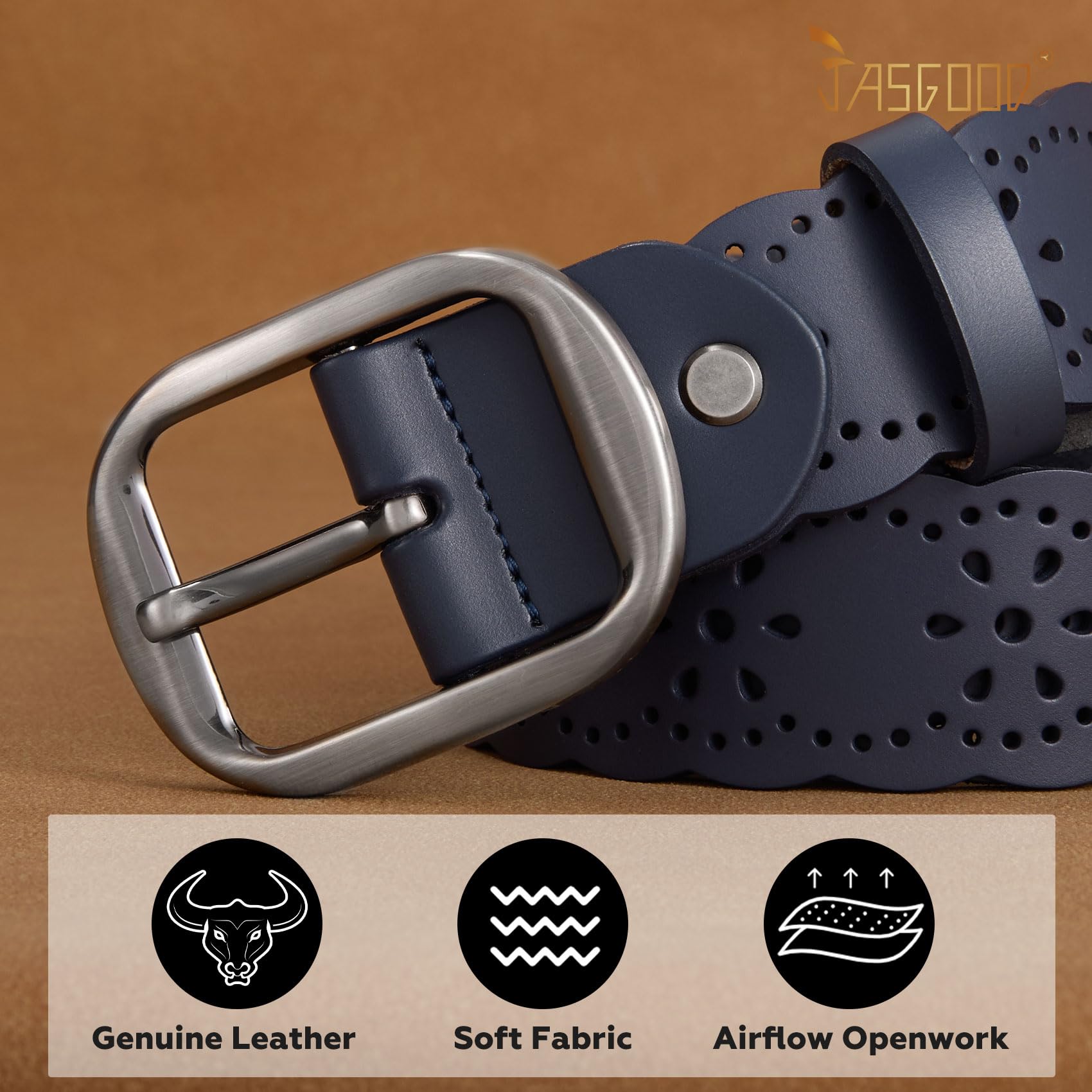 Women Wide Belt made of high quality leather that touch so soft and durable. The metal buckle is polish surface without blemishes that always keep shiny. The flower cuts are very precise and have no residual flakes of leather.