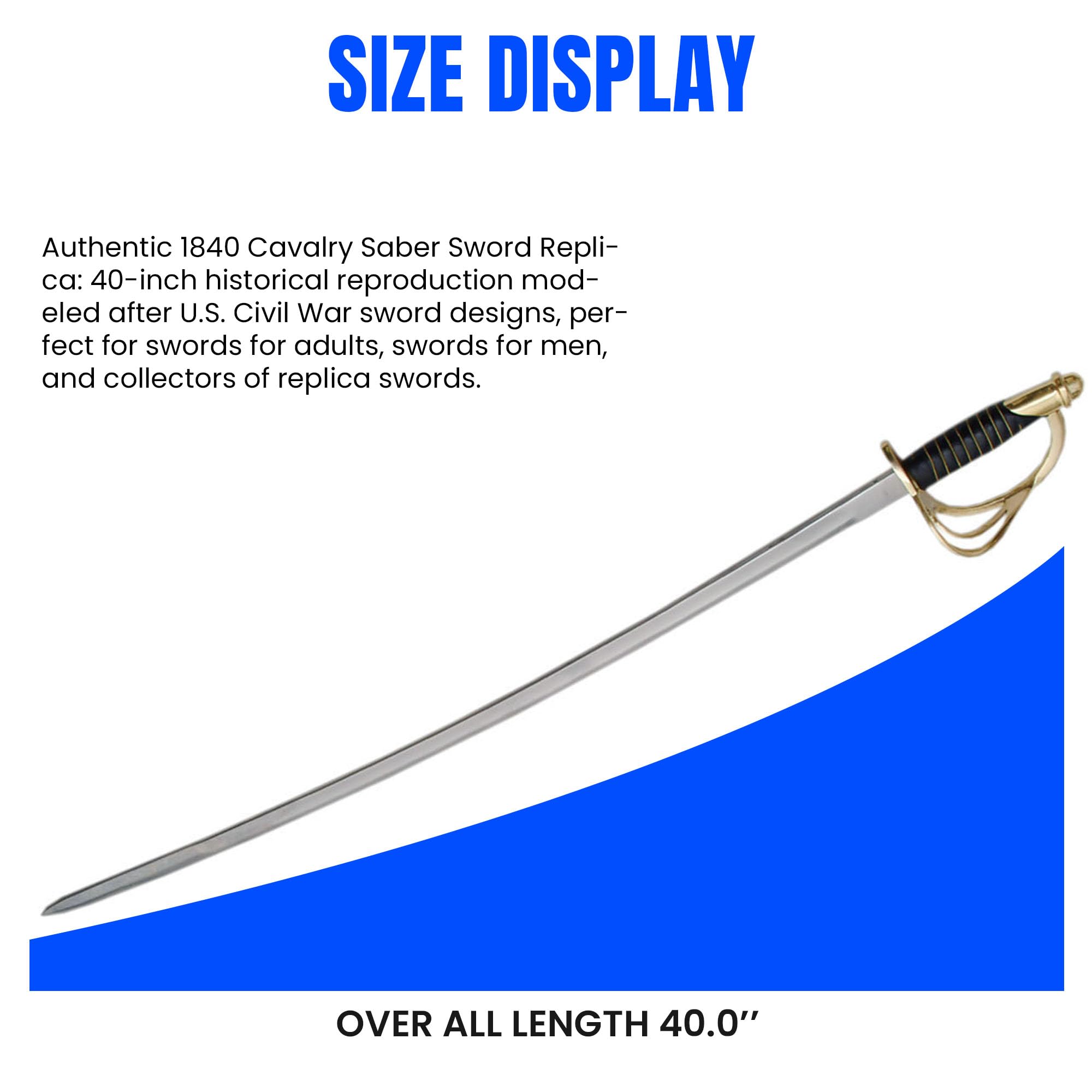 Authentic 1840 Cavalry Saber Sword Replica: 40-inch historical reproduction modeled after U.S. Civil War sword designs, perfect for swords for adults, swords for men, and collectors of replica swords.