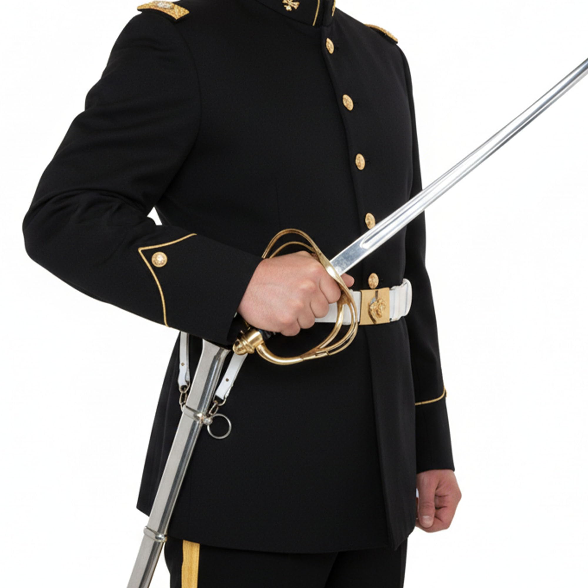 Step back into the age of mounted warriors with this 40-inch 1840 cavalry saber sword, a faithful replica sword of the real swords carried by cavalry units during the Civil War. This piece blends the elegance of a gold sword with the practicality of a steel sword blade, making it an essential for weapons for men collections, military enthusiasts, and historical displays. The curved sword real blade captures the iconic style of the original design, while the brass guard and pommel add historical authenticity. Its black handle with gold wire wrap ensures a secure grip and visually striking contrast. A polished metal sword scabbard with suspension rings provides safe storage and period-accurate presentation, making it perfect for replica swords, reenactments, or as a ceremonial prop. Whether youβre a collector, a fencing sword enthusiast, or looking for a cutlass sword or survival sword alternative, this medieval sword real style saber sword offers both craftsmanship and heritage. Itβs equally at home in a sword medieval display as it is in the hands of a reenactor, earning its place among the finest swords for adults and great sword replicas available today.