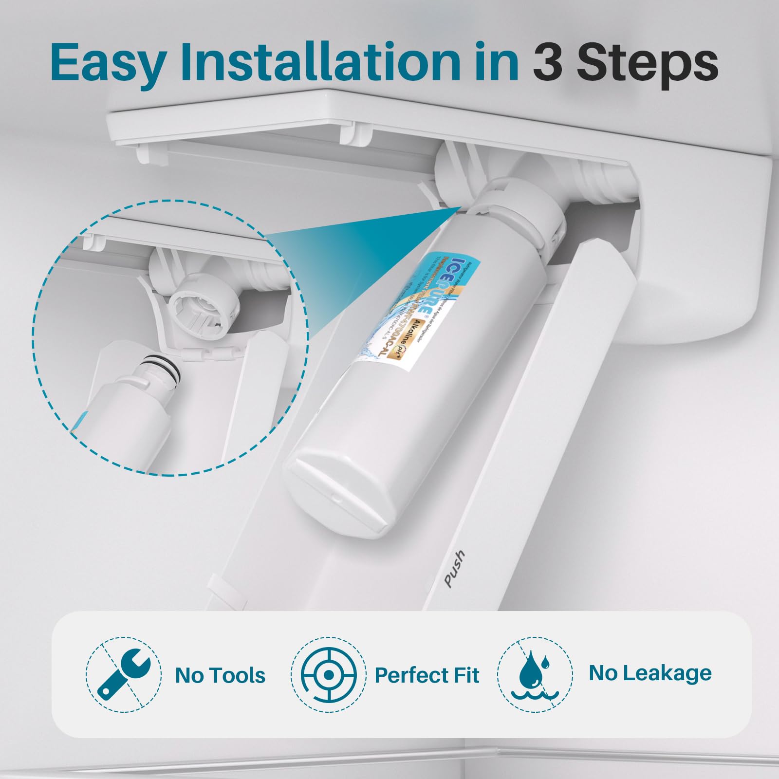 One Click Installation, Save Time and Effort - The RWF4700AC-AL refrigerator alkaline water filter unique design enables you to install without any tools. It only takes three easy steps to complete the installation. Even for the first replacement, it can be easily completed within one minute, saving time and effort and saying goodbye to the cumbersome installation process.