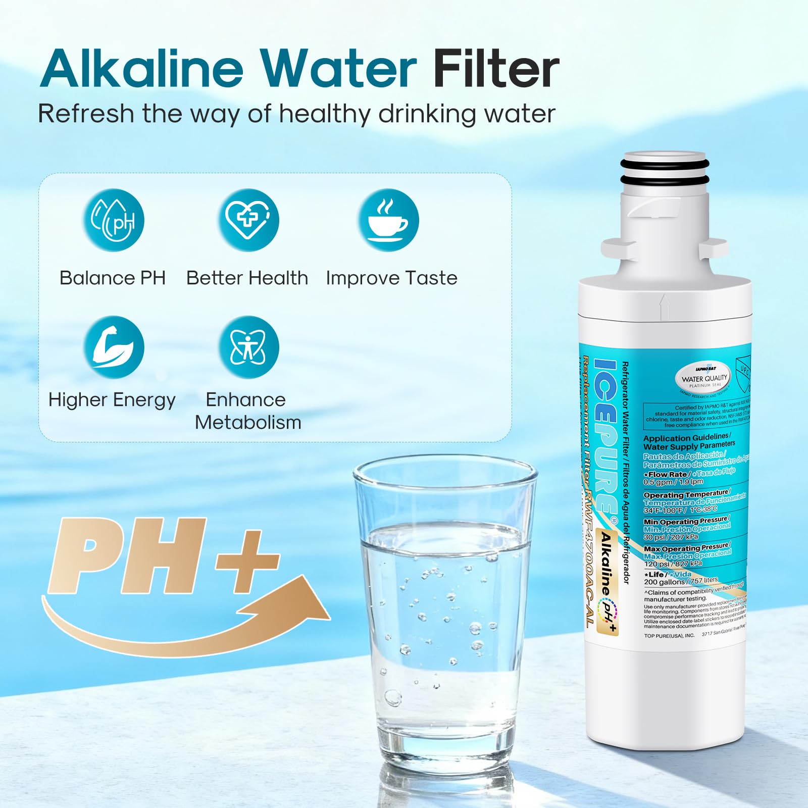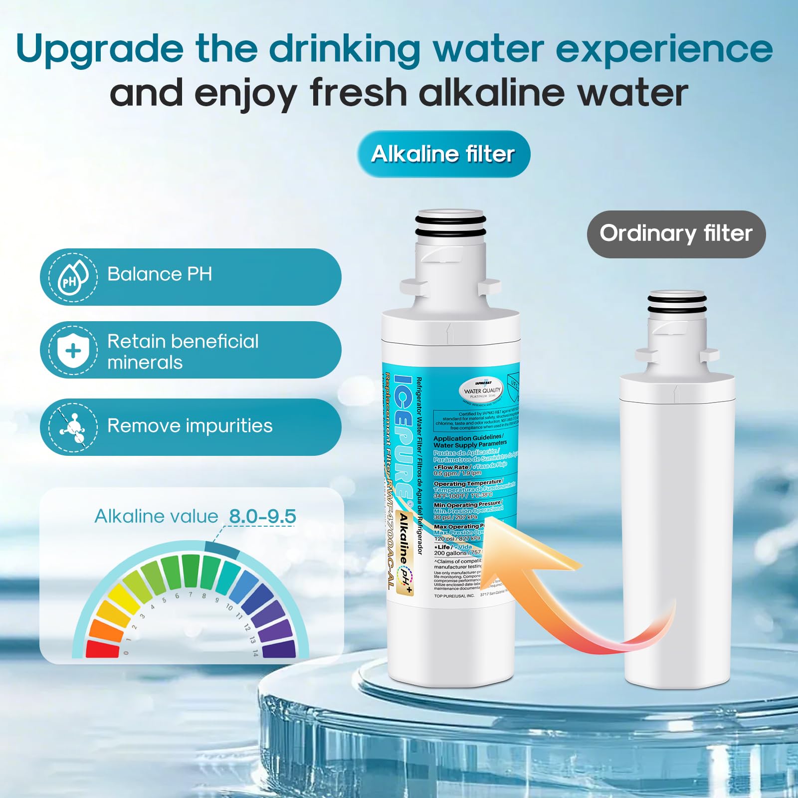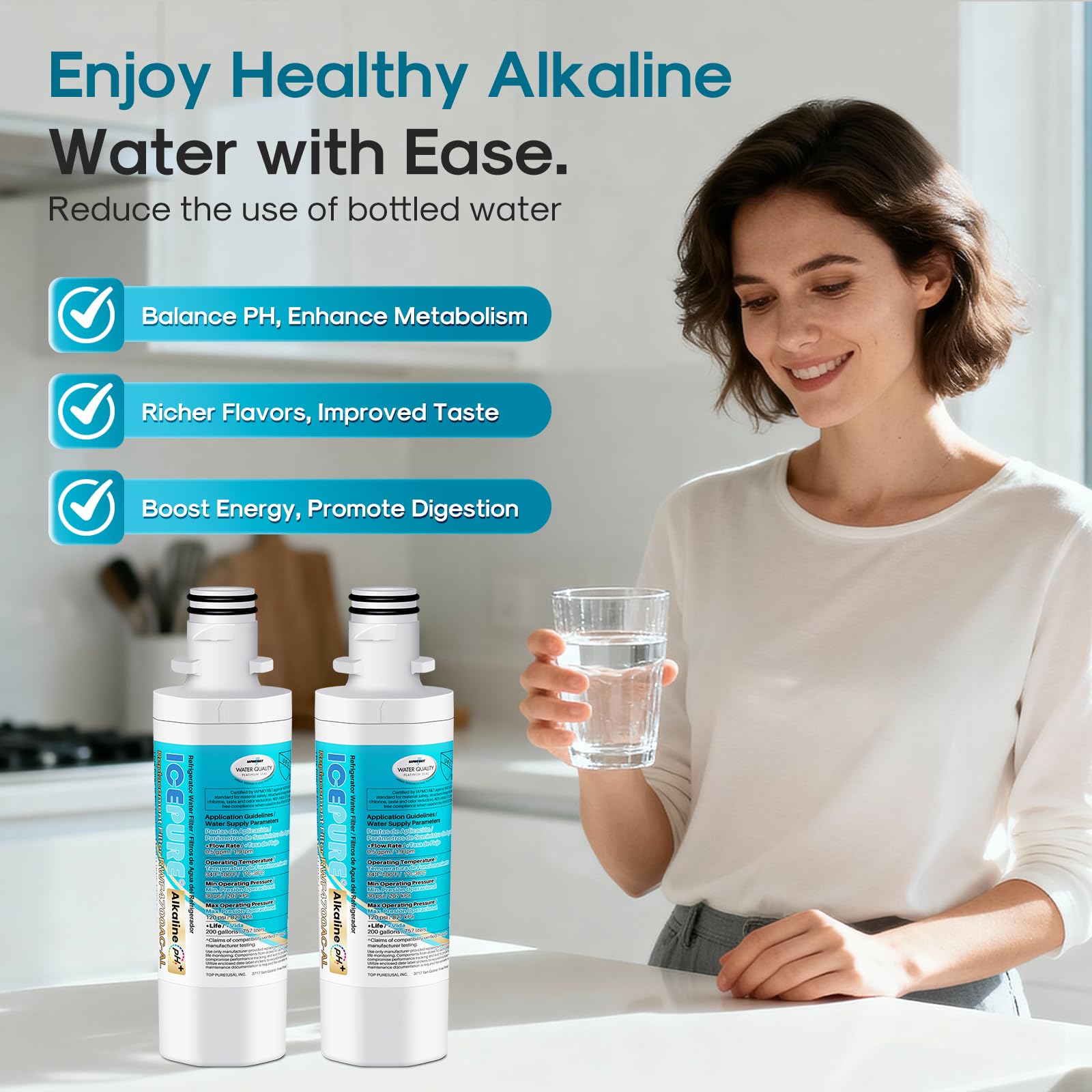 High Efficiency and Precise Filtration - The replacement for LG LT1000P refrigerator water filter adopt advanced filtration technology, food-grade materials, lead-free and BPA-free, effectively filter out impurities such as residual chlorine, discoloration and odor in water, achieving a dual effect of purification and alkalization. It helps maintain the balance and vitality of the body, making the water from the refrigerator clean and ready to drink, fresh and pure.