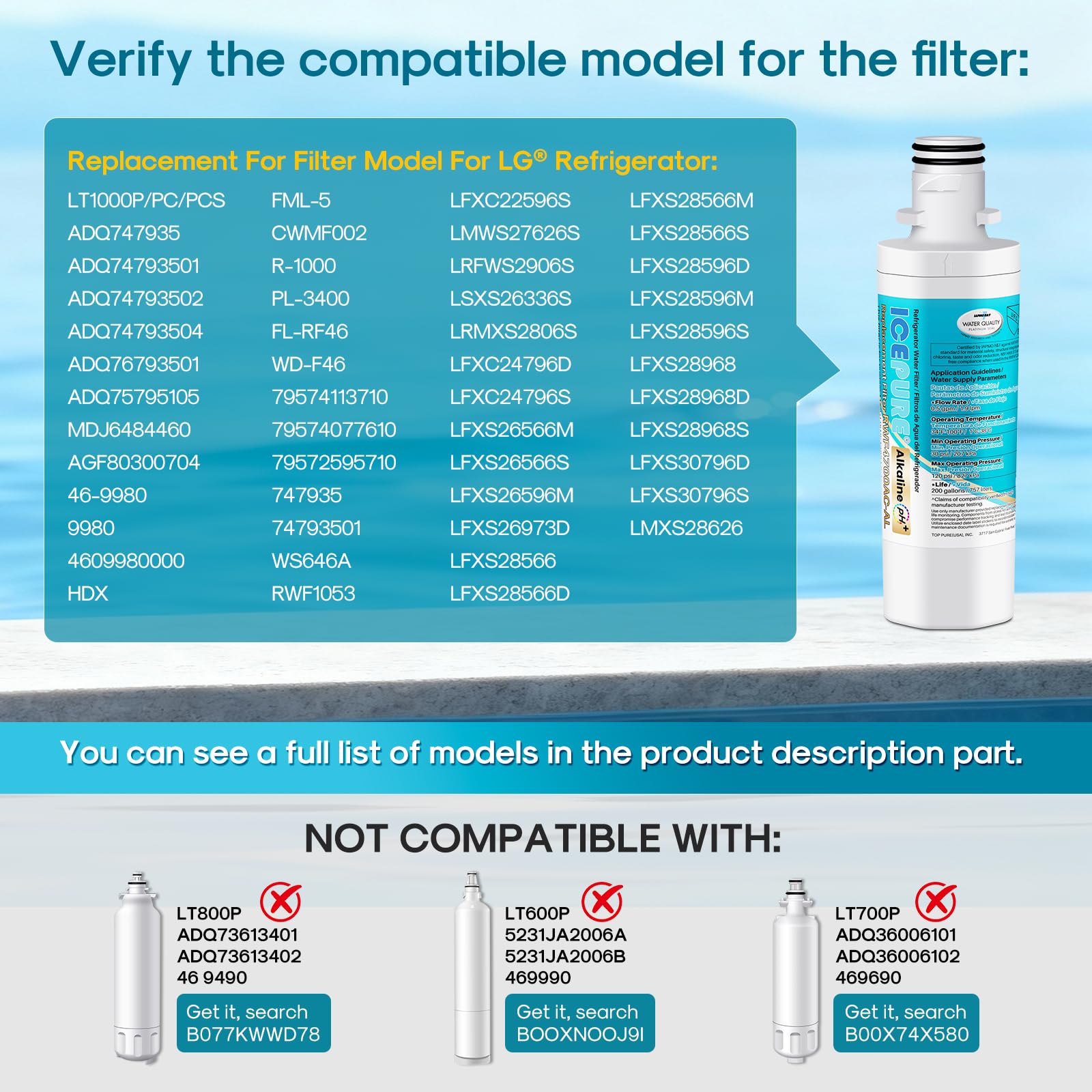 Compatible Model - Compatible with LT1000P, LT1000PC, LT1000PCS, LT-1000PC, ADQ74793501, MDJ64844601, ADQ747935, ADQ76793501 KENMORE 46-9980, 9980, 46 9980, ADQ74793502, PF16, GF-1000P, CF16, BL003-S, RWF4700A-S, RWF4700A, RWF1053, CWMF002, ZWFL7-RF300, CLT-2, PP-LT1000P, OH-1000p, AB-9834, and more. Air Filter: ADQ73214404, ADQ73334008, 46-9918, 469918, 9918. Confirm before purchase.