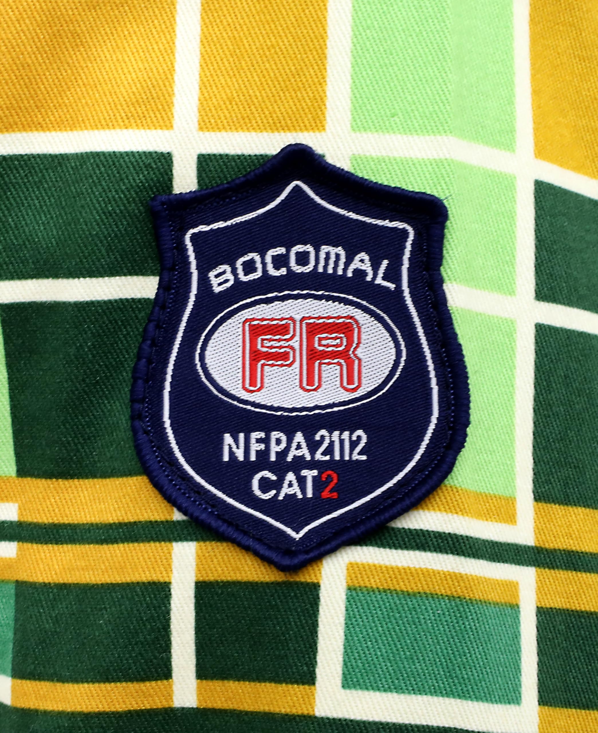 FR MATRIALSοΌ6.5OZ Printed Plaid Cotton Twill FR Treated,FR Buttons,FR Sewing Threads!Clear FR Tag on arms and bottom front.More FR info On Tag About UL Certification.