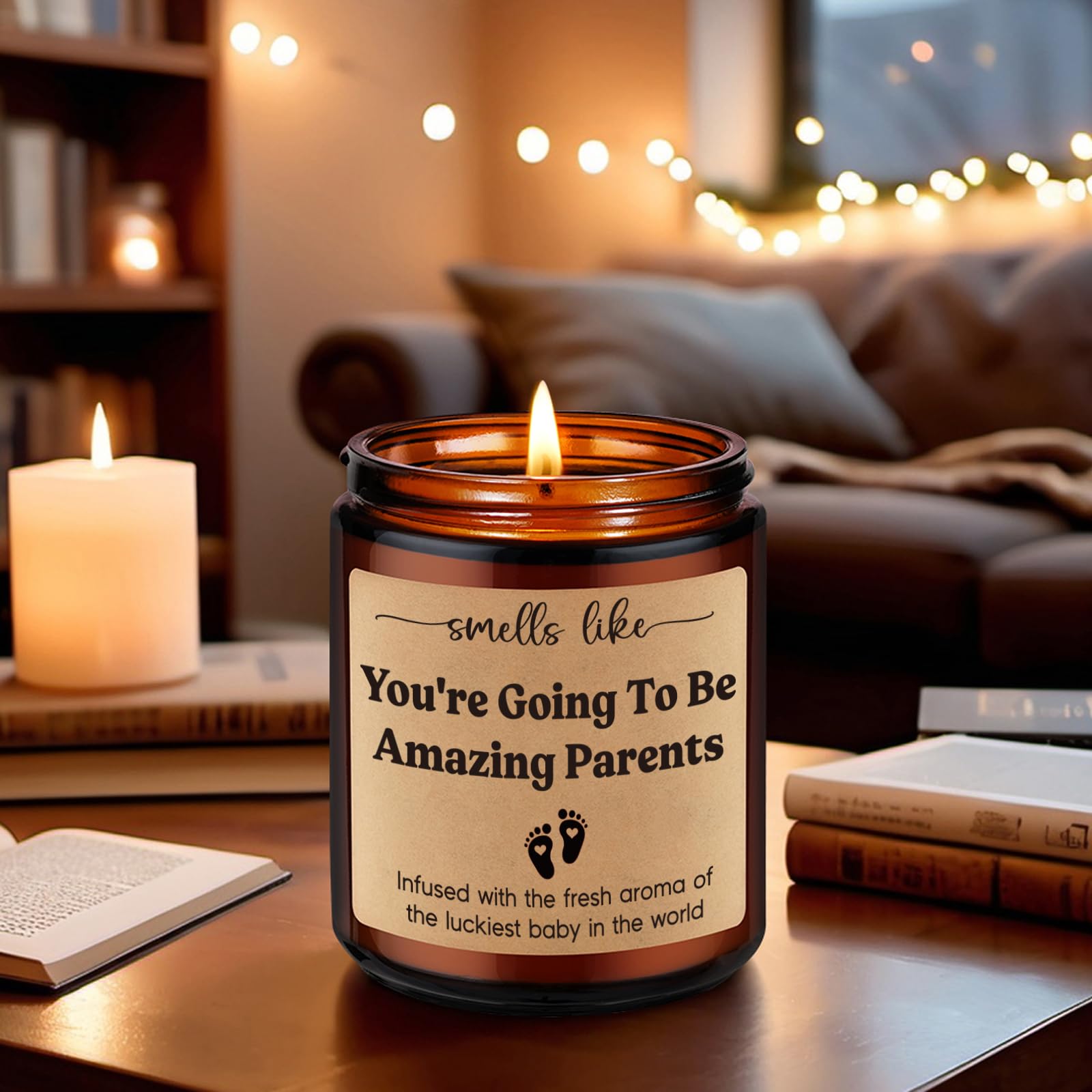Gifts for new parents: With its funny message “Smells like you’re going to be amazing parents; Infused with the fresh aroma of the luckiest baby in the world,” this candle is an ideal present for parents to be, first time parents, new moms, new dads, first time moms, or dads to be; Whether it's for a postpartum present, a gender reveal celebration, a baby shower, or to congratulate on the arrival of a new baby, this candle adds a touch of humor and warmth to their special journey into parenthood