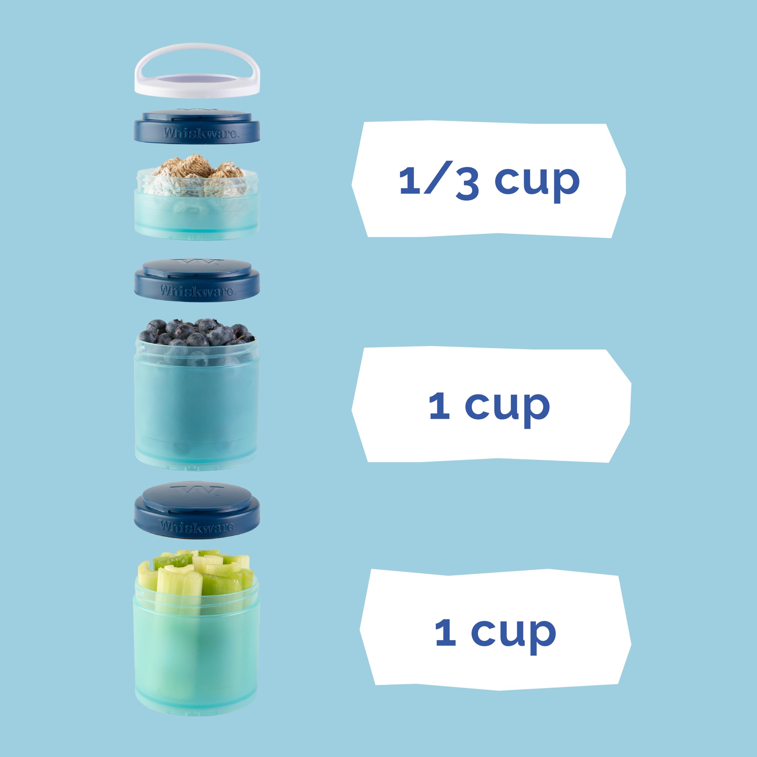Includes 3, cupholder friendly jars, measuring 1/3 cup, 1 cup, and 1 cup, BPA and phthalate-free for safety; dishwasher and freezer safe for convenience
