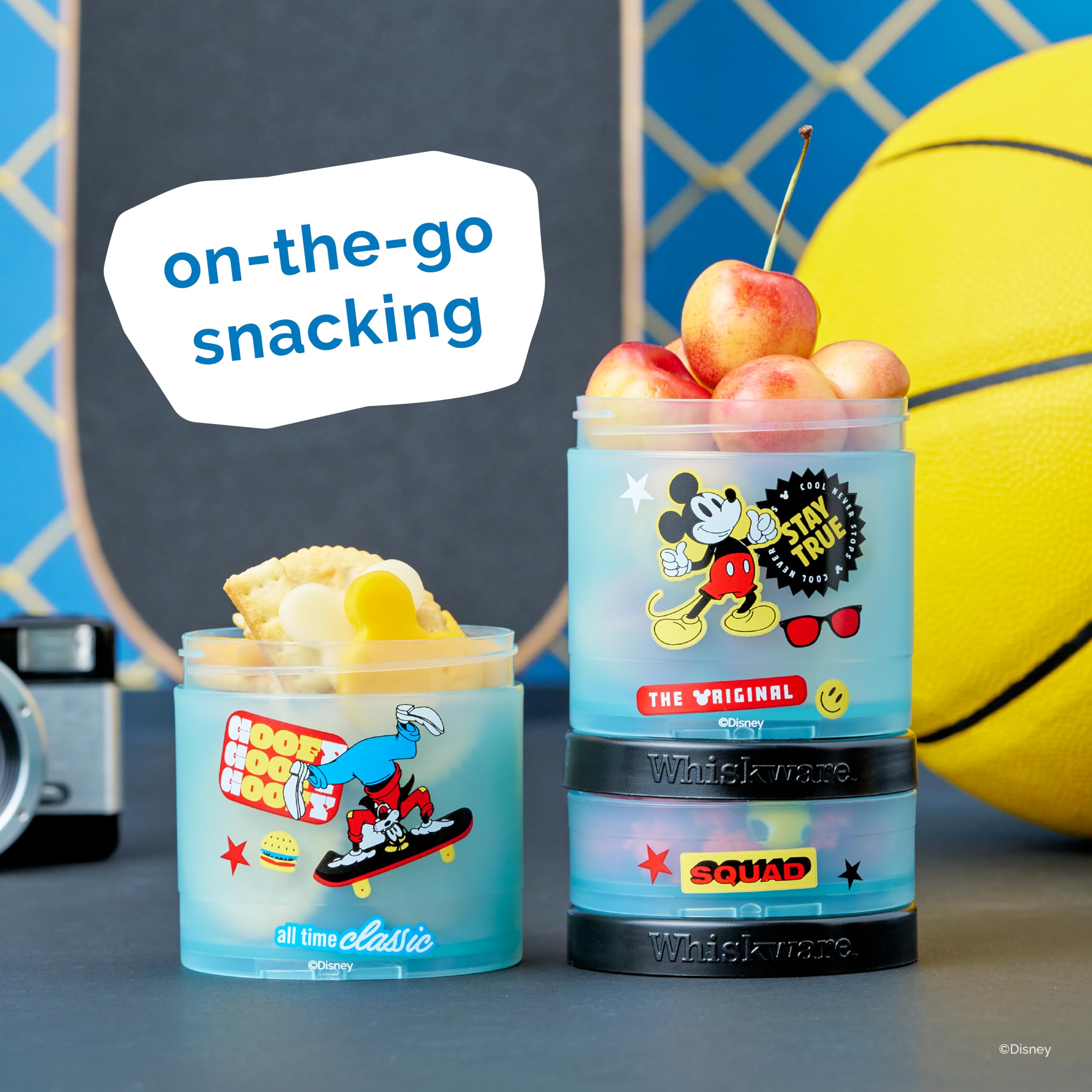 Durable, stackable snacking containers designed to make eating easy, fun, and mess free
