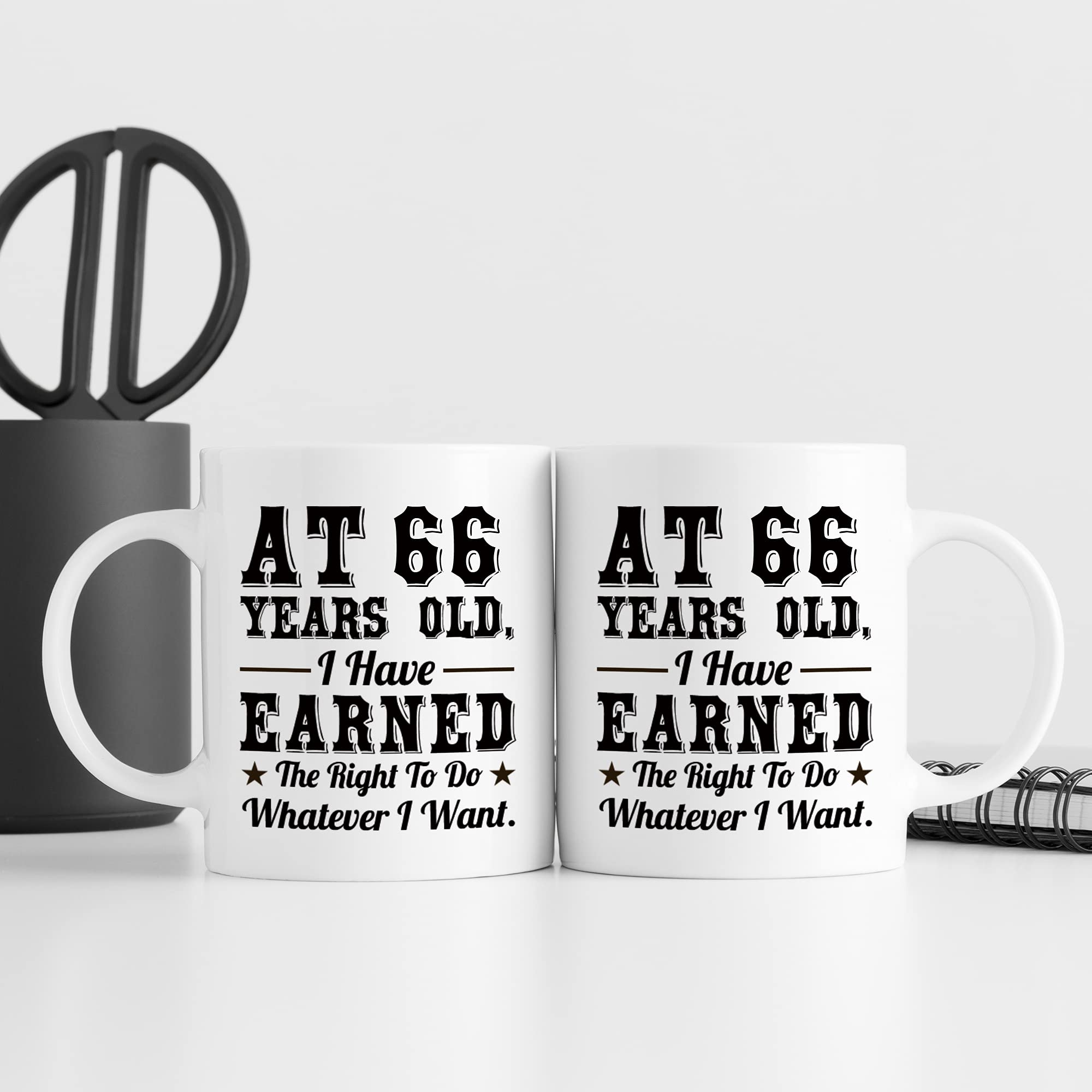 💖 BEST 66TH BIRTHDAY GIFT - The saying “AT 66 YEARS OLD, I Have EARNED The Right To Do Whatever I Want.” was printed on both sides of the 66th birthday mug. 66th Birthday Mug is a great gift idea for a grandma and grandpa who is going to celebrate their 66 years old soon. This mug is a Vintage Birthday Gift for senior Men and Women that will make them laugh.