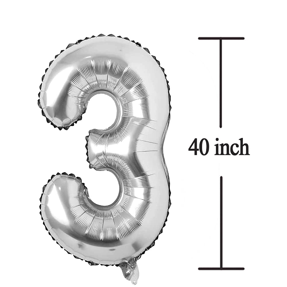 2 Pieces 40 Inch Silver number balloons:No.3 Silver number balloon + No.0 Silver number balloon .