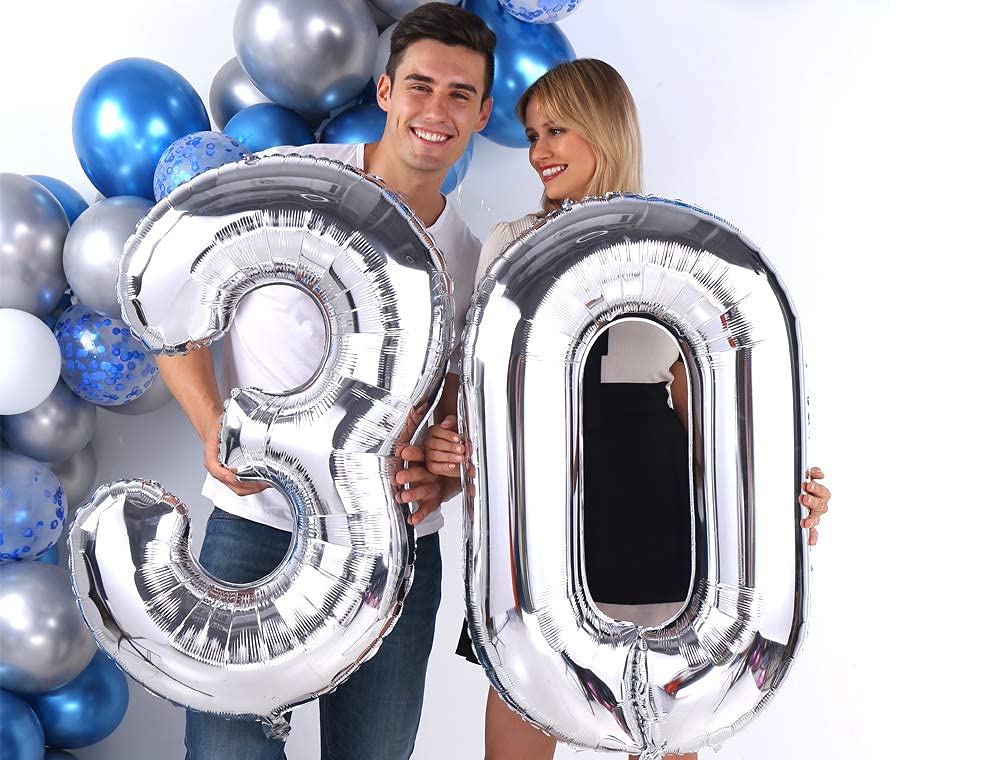 30 balloons, Silver number 30 foil mylar balloon 40 inch number balloons, Large number 30 balloons is perfect for 30th birthday anniversary party decorations。