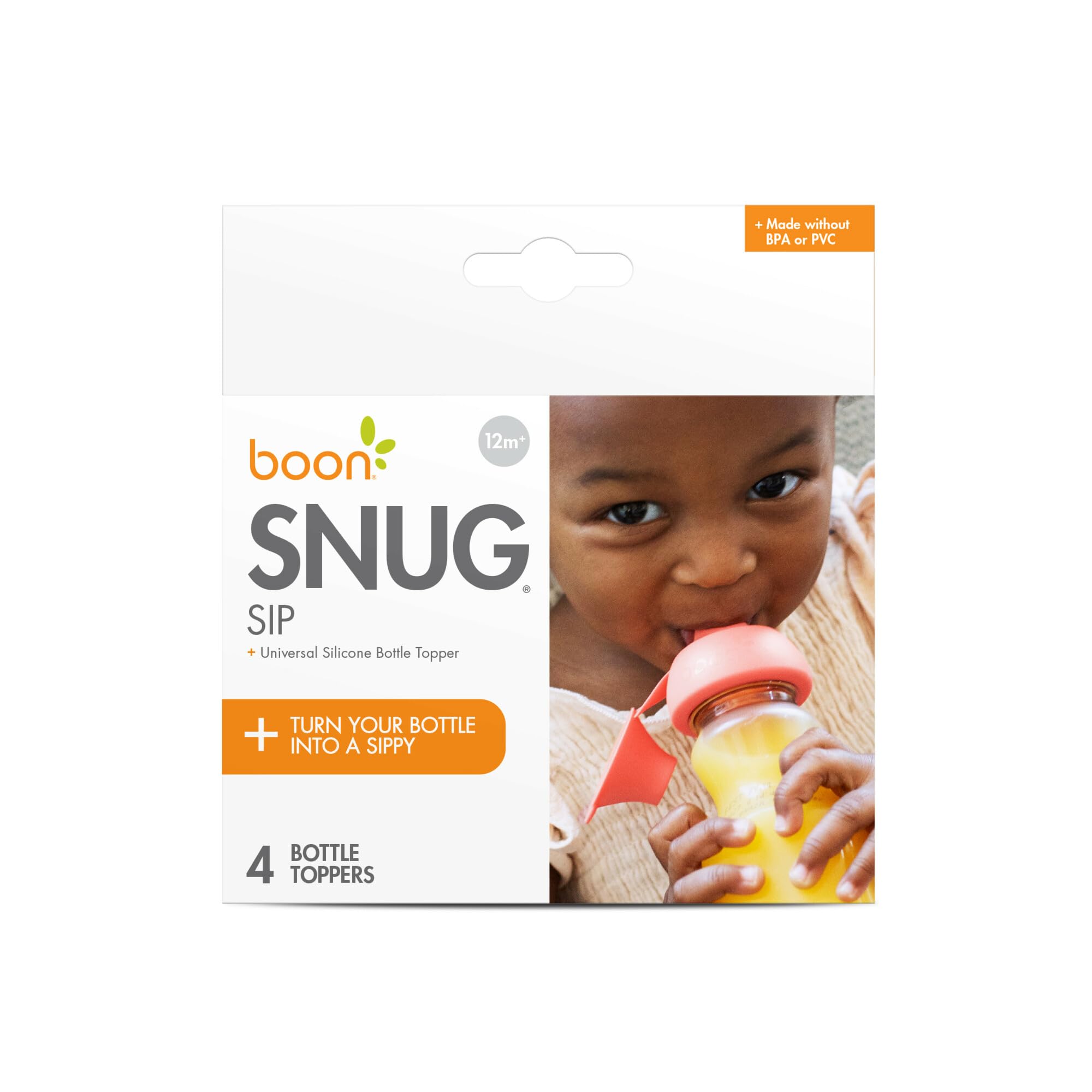 Easy Clean: The Boon Snug Sip bottle topper transforms an everyday bottle into a spill proof water bottle, and they're top-rack dishwasher safe for quick and easy clean up