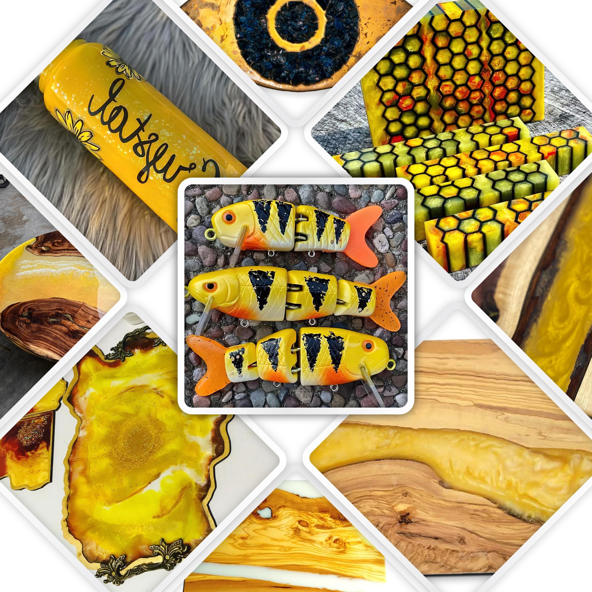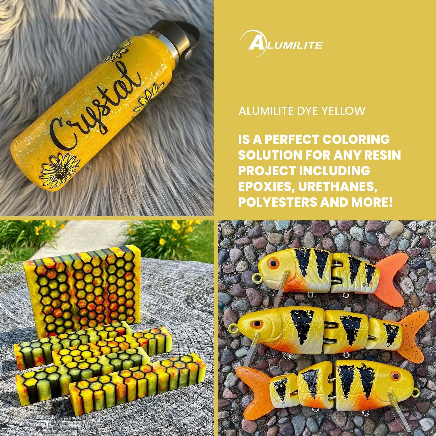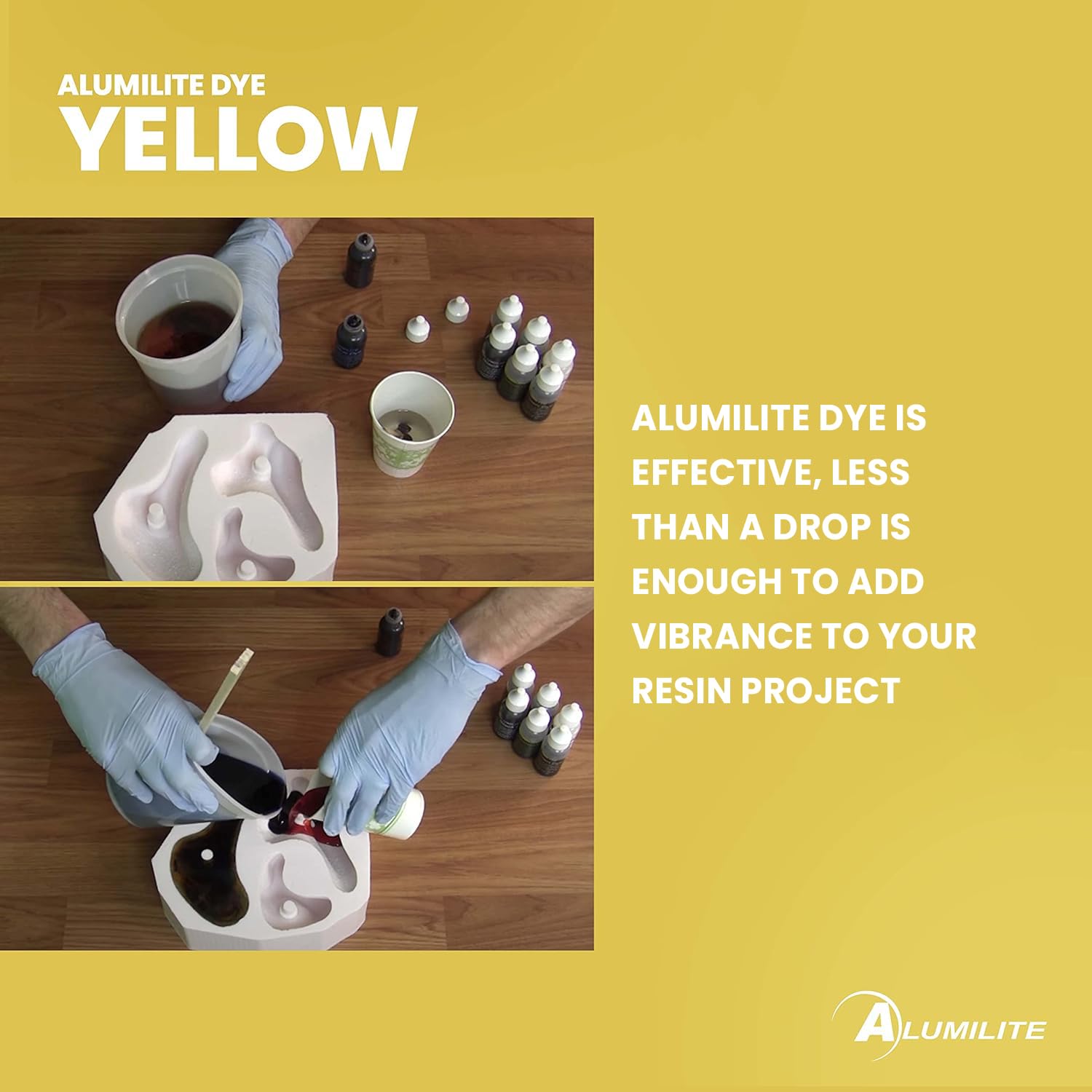 Resin Enhancement - Add Alumilite dyes to clear or opaque resins, or with epoxy for dynamic art and craft coatings, achieving translucent or solid colors for versatile use.