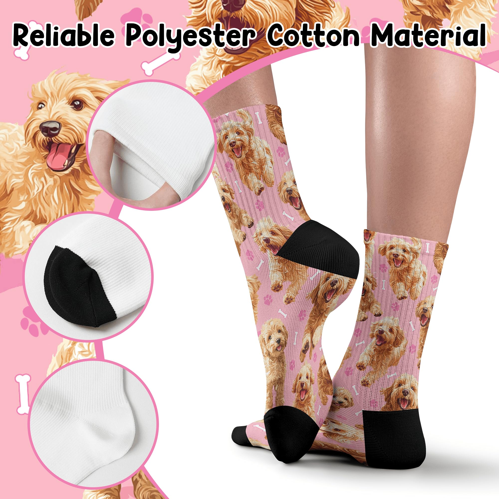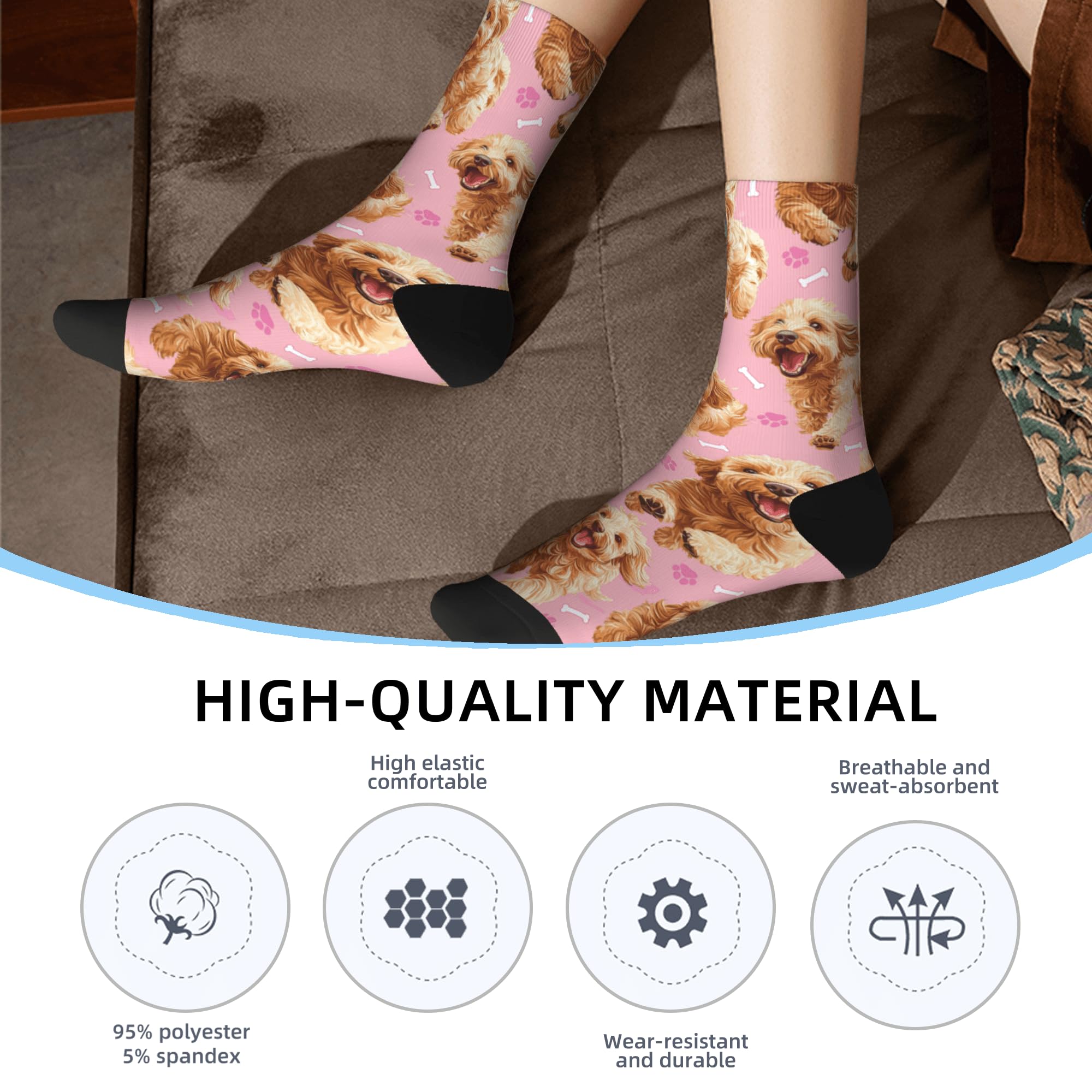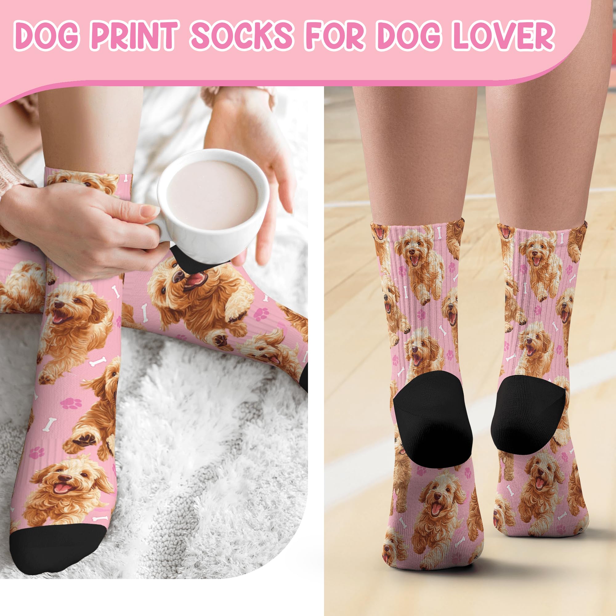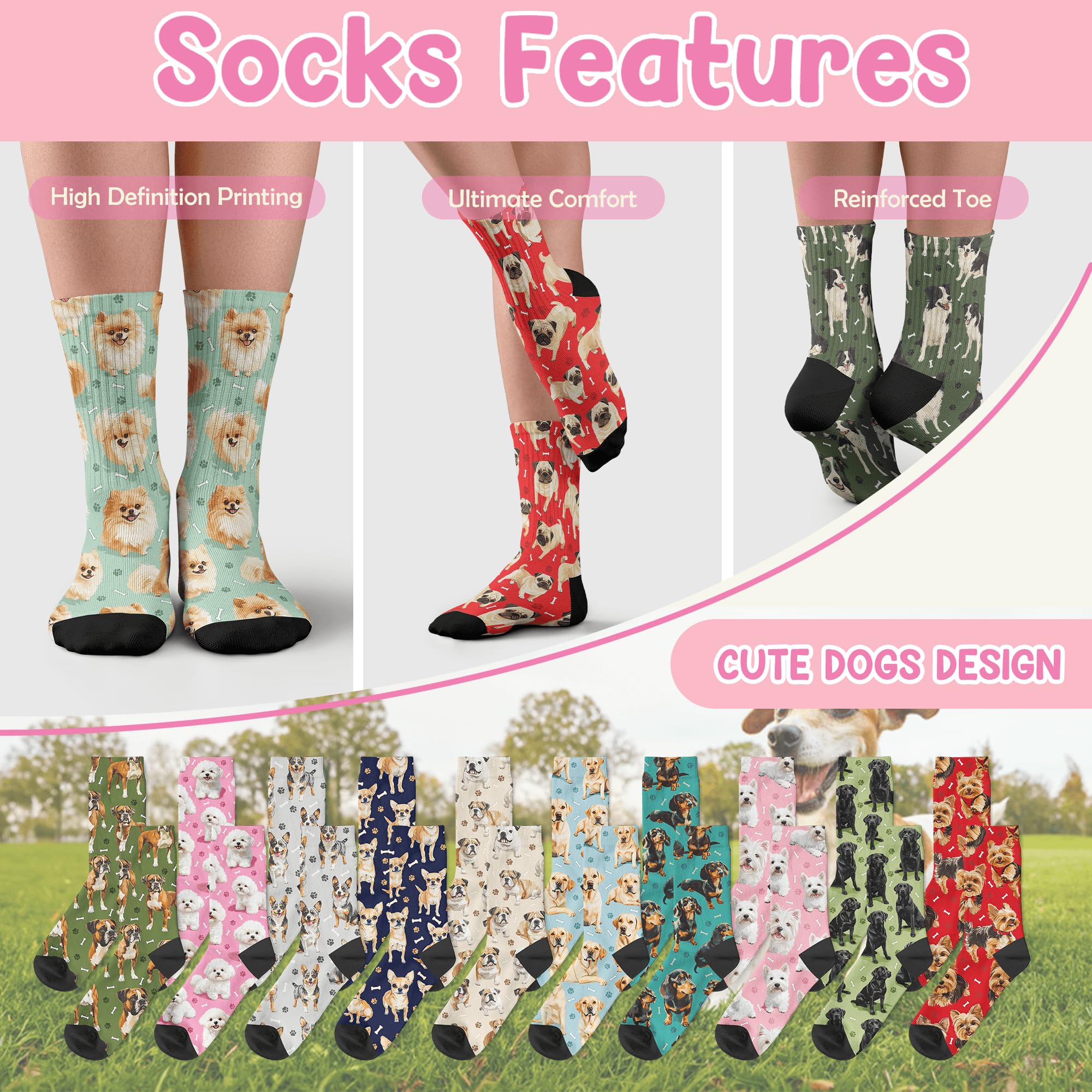 QUALITY MATERIAL: Our dog print socks are designed with a comfortable composition of 90% Polyester and 10% spandex for a flexible fit. They won't fade and are machine washable.