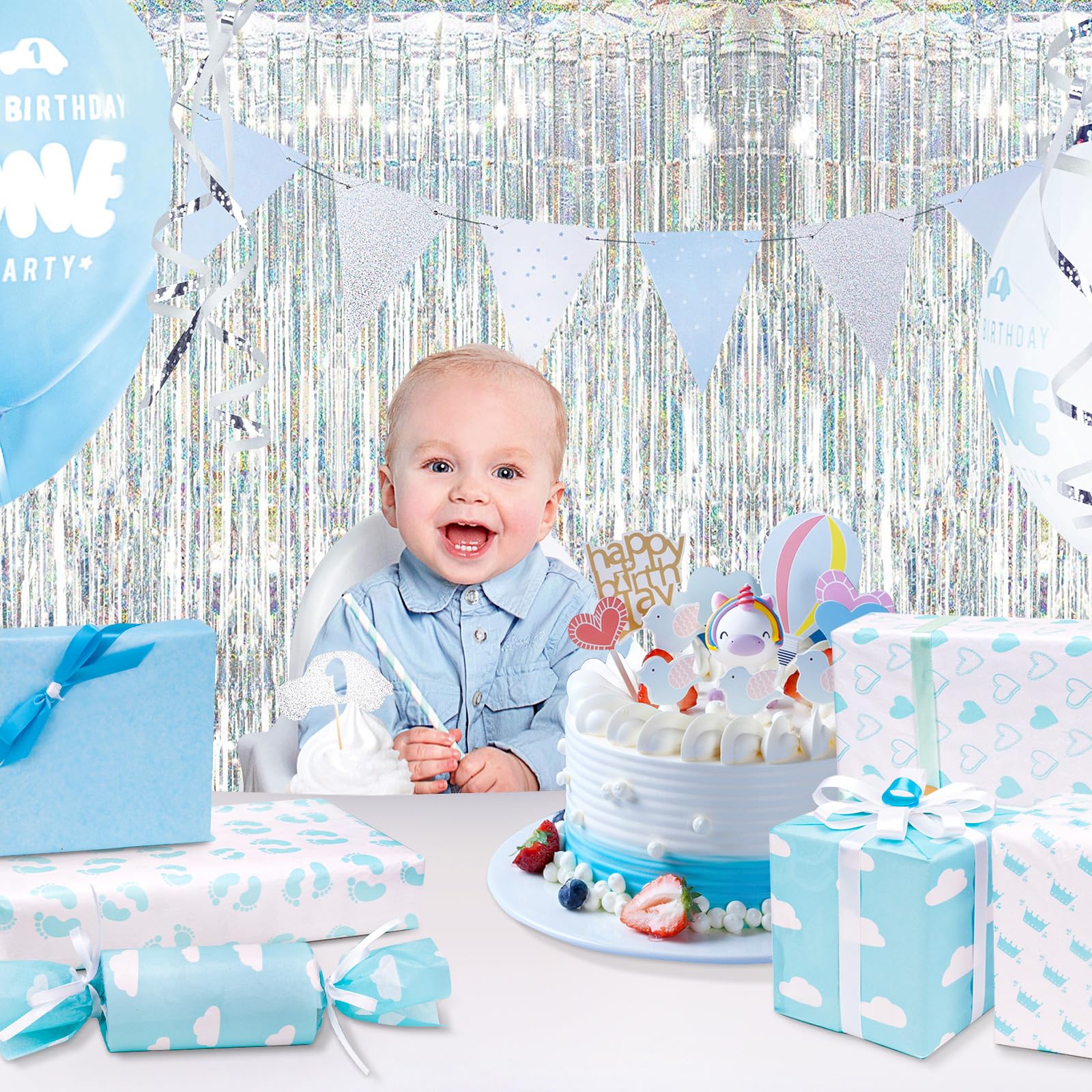 {Easy to Use}: Each pack of metallic streamer curtains has double-sided tape on the top of the back. Just tear it off easily and stick it on the wall, window, door, table or parade float for decoration. Note that the surface of the foil tinsel curtain is smooth, if you encounter knots during use, just shake it open gently.