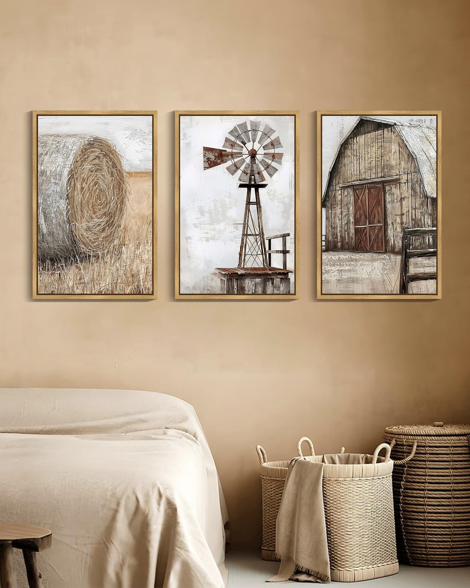 FARMHOUSE ART - Farmhouse Framed Wall Art captures the essence of rustic charm with its detailed windmill and barn design. Perfect for creating a cozy and inviting atmosphere in your home.