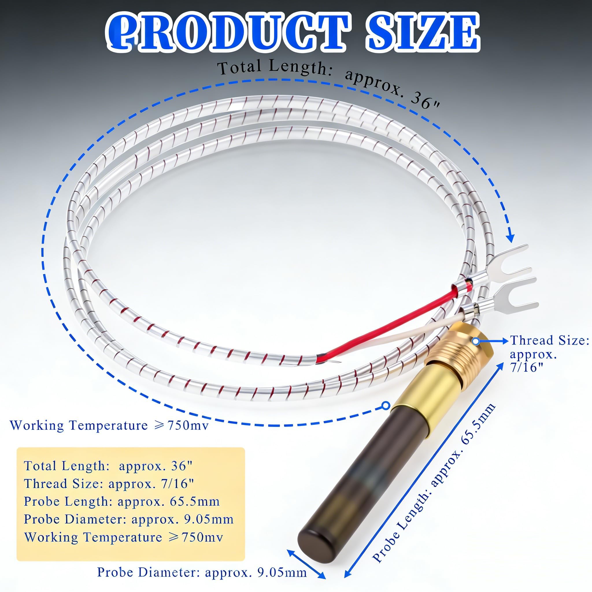 The Thermopile safety & Energy savings -0.4 x 0.3 x 0.1 inches;Specifications: Length 36 inches and Rating: 750 mv. Wire Material: glass fiber wrapping line, metal aluminum envelope, these lines are high-temperature resistance fire line.Suitable for gas grills, gas ovens, gas boilers and gas water heaters, propane gas & natural gas restaurant kitchen fryers.