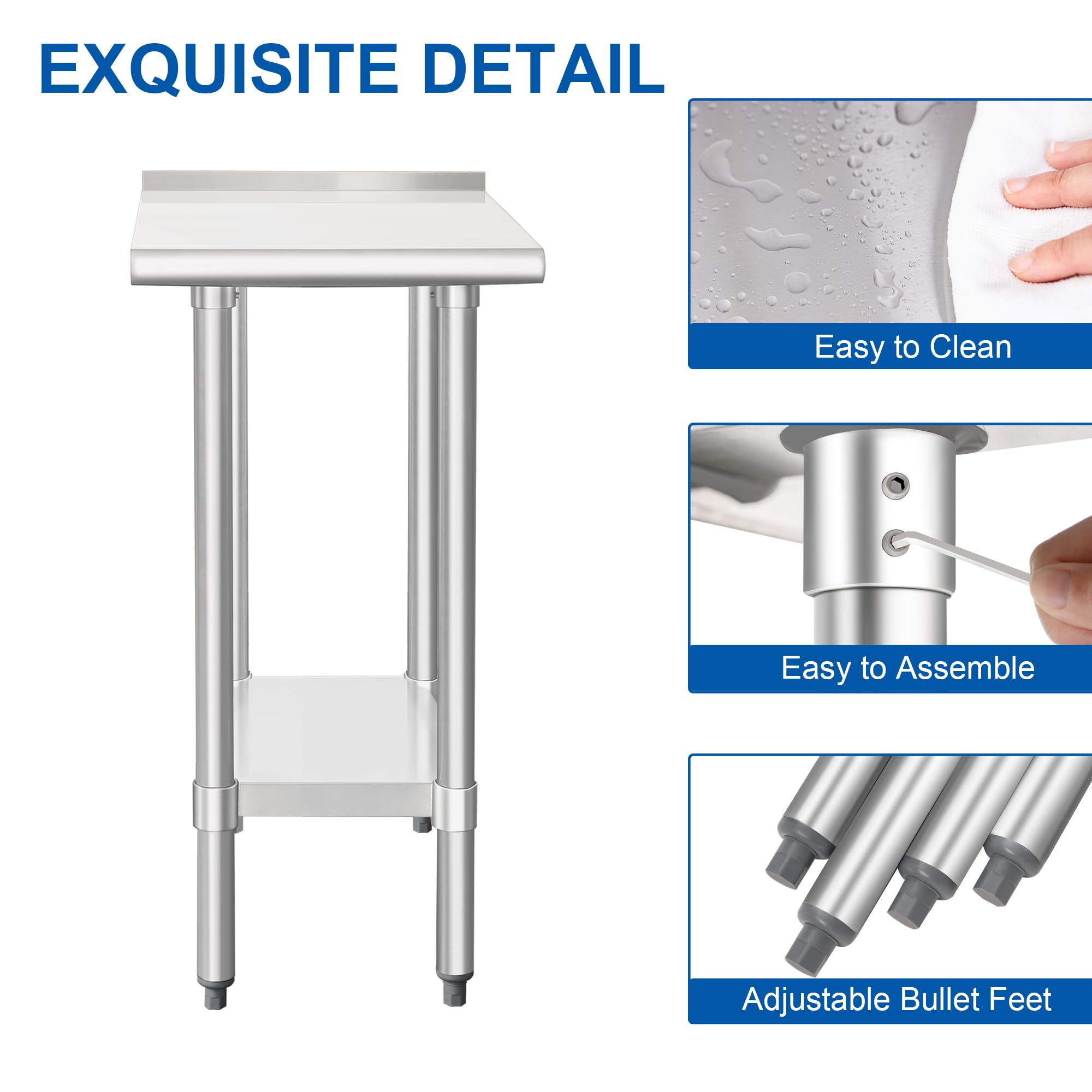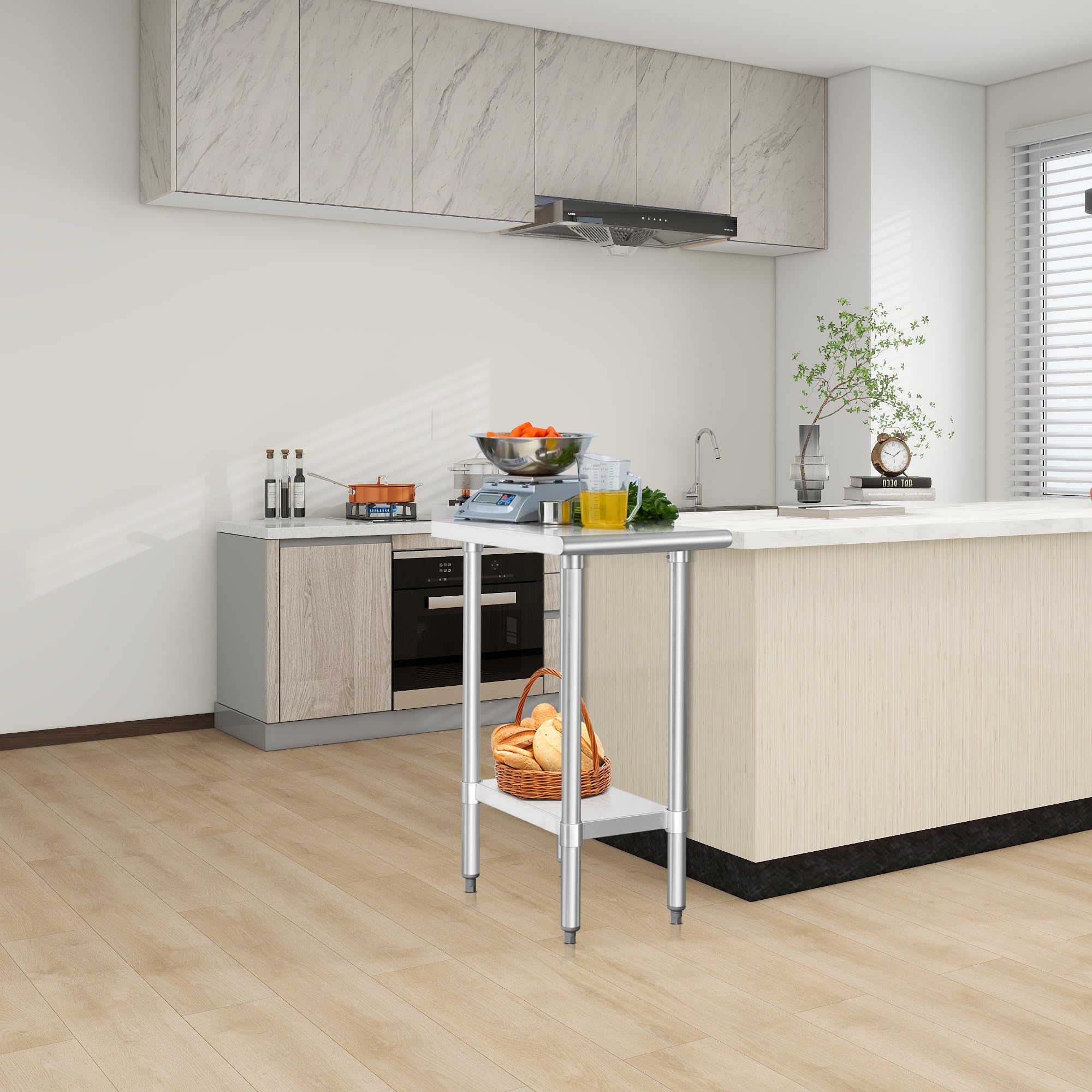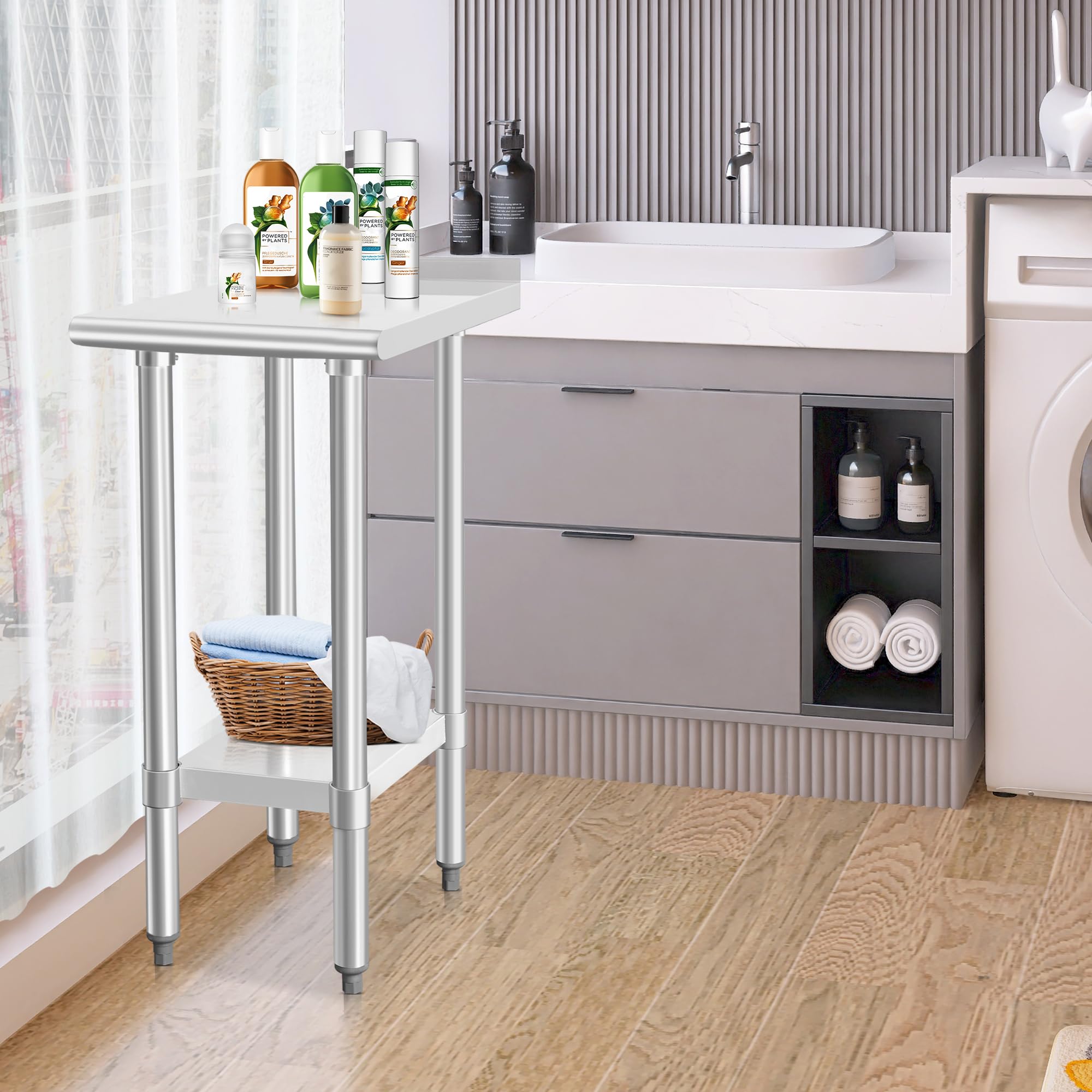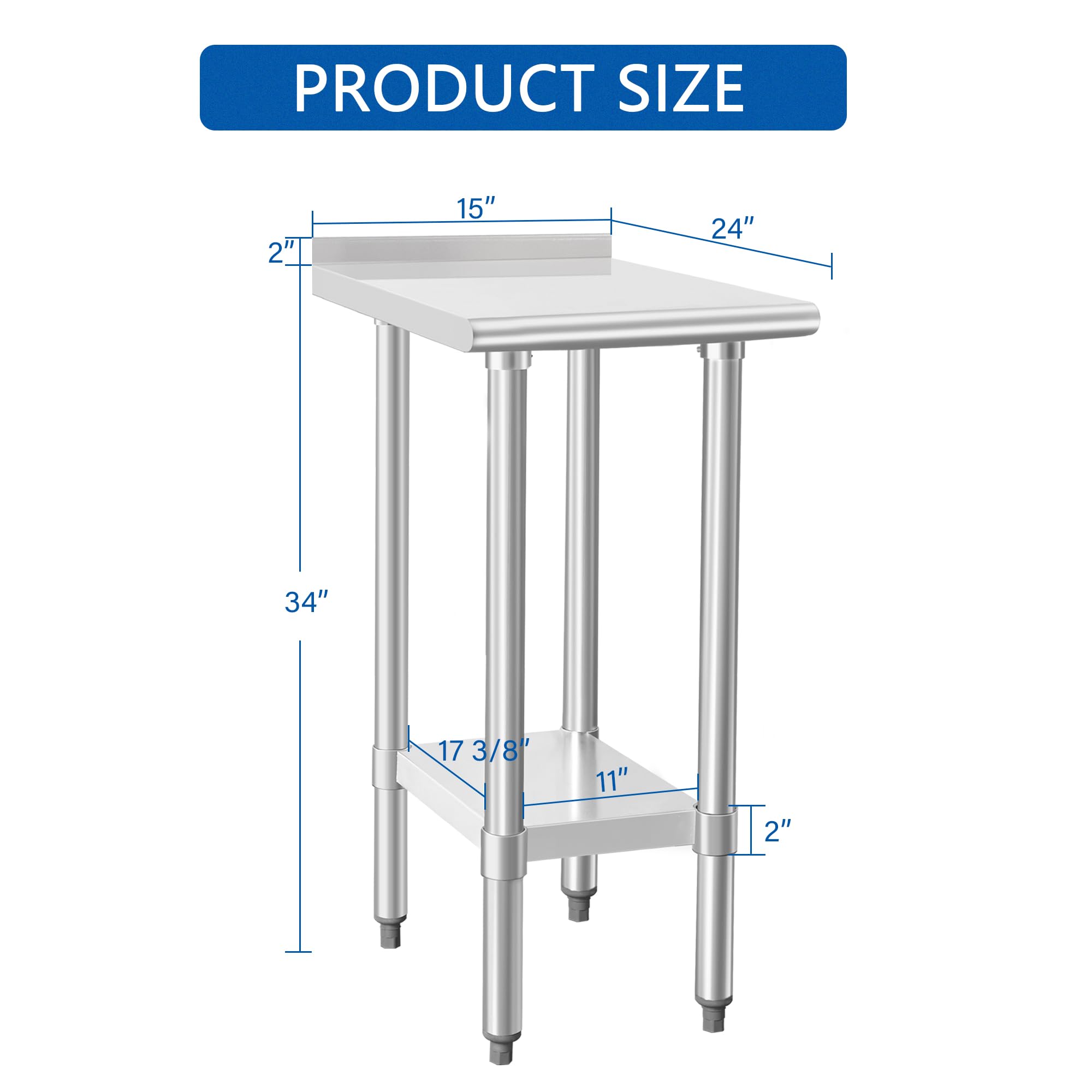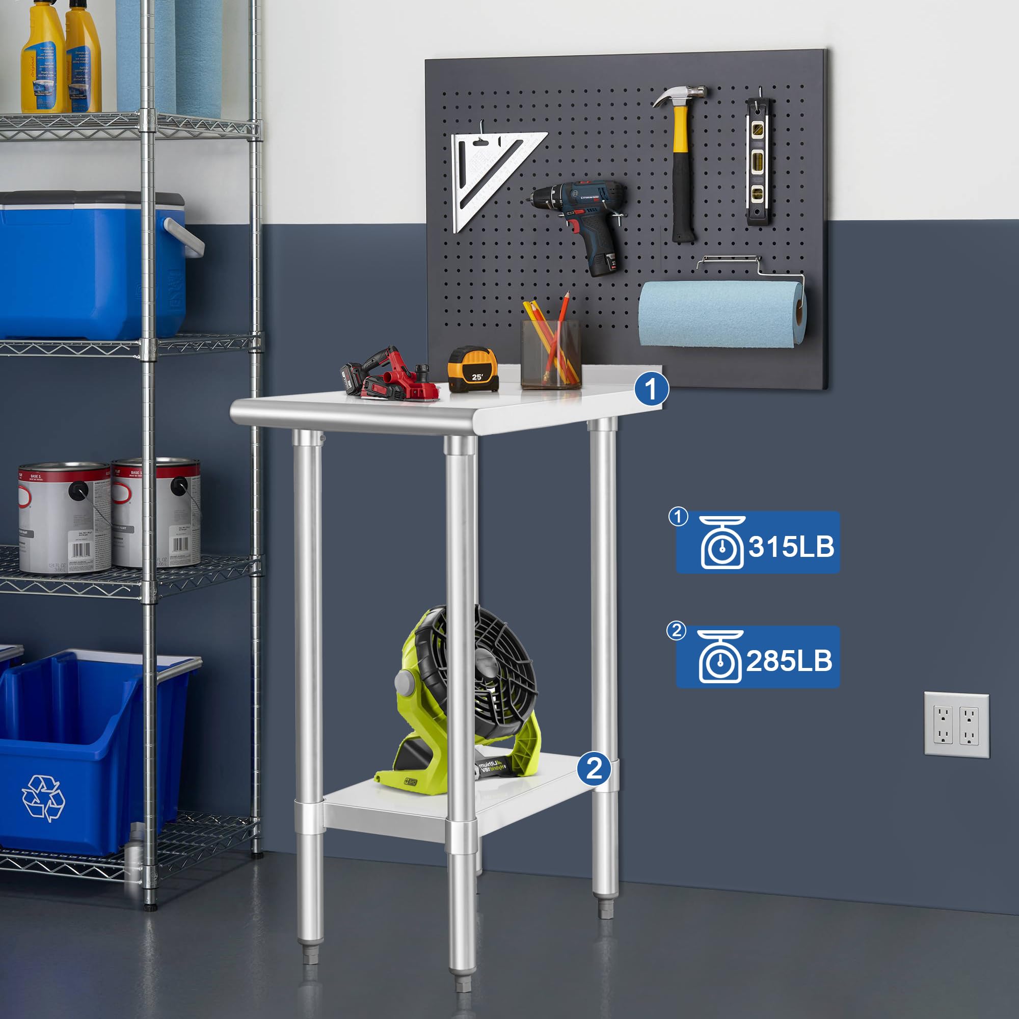 【COMPACT STORAGE SPACE】- The 24×15 inches stainless steel workbench is optimized for compact spaces and fits easily into a variety of work needs, whether it's a work table for garage, small workshop or light industrial production line.This unit is sturdy and utilitarian enough for food prep, such as store microwave, oven, air fryer, etc.