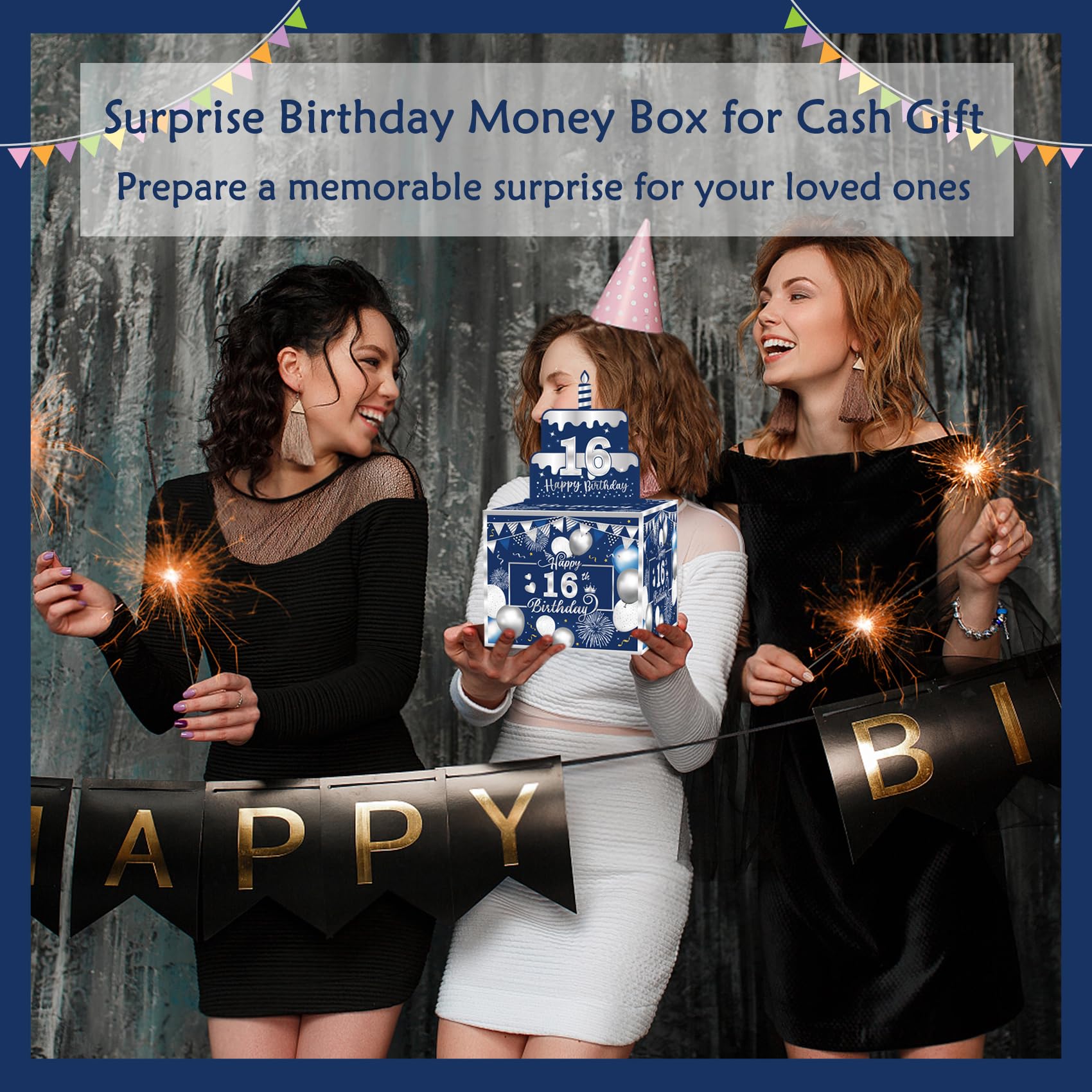 Package You Received: Including a beautiful "16th Happy Birthday" money box, a happy birthday cake card and 100 plastic bags with adhesive strips. You can DIY this money box and put any cash in it as a cash gift to your family and friends. Imagine the faces of your family and friends when they opened the money box. This will be an unforgettable moment.
