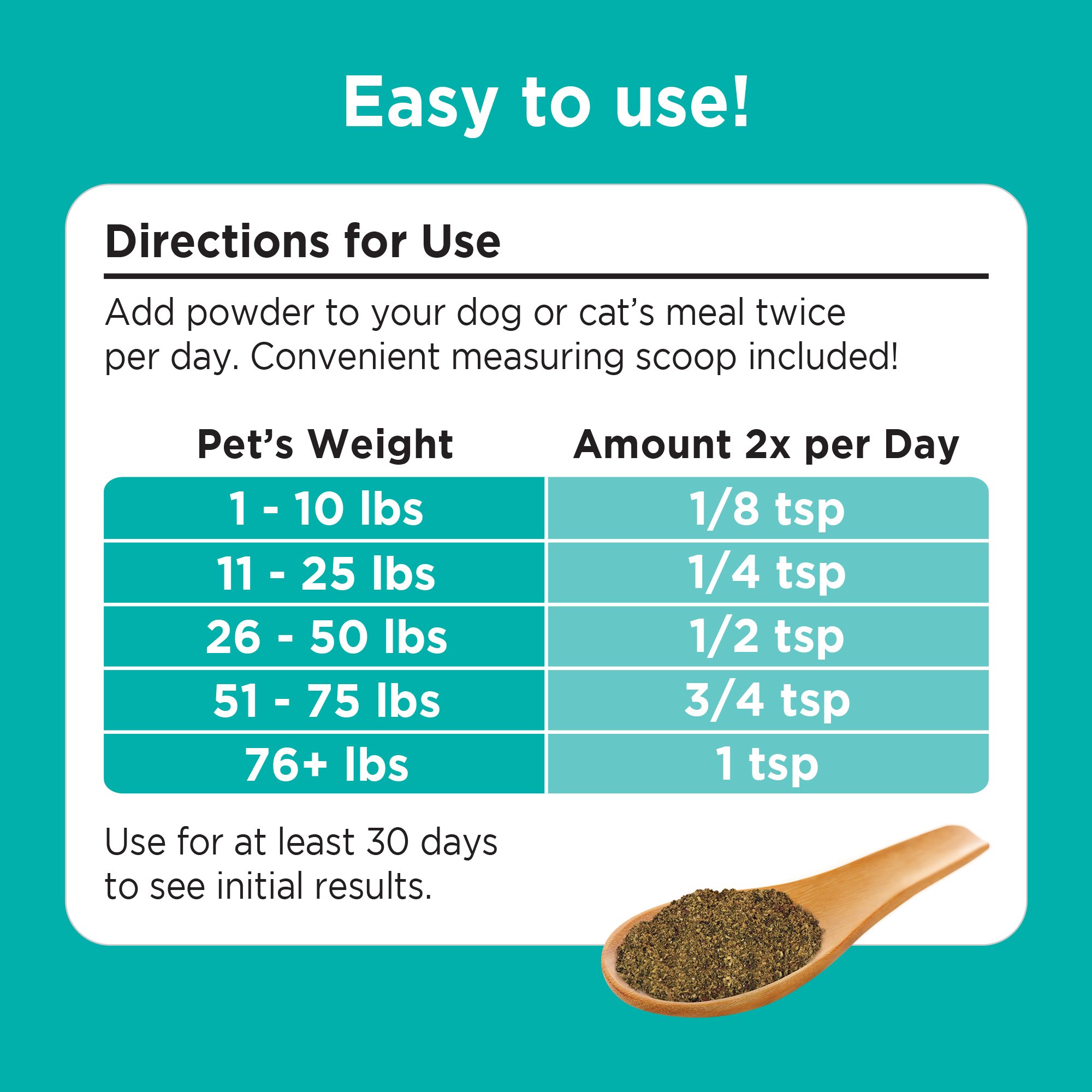 Skin & Coat Health – This dog multivitamin with omega 3 supports skin hydration & coat shine in dogs & cats. A go-to cat & dog powder supplement for those seeking omega 3 for dogs, cat omega 3 supplement, or itchy skin relief support for all ages