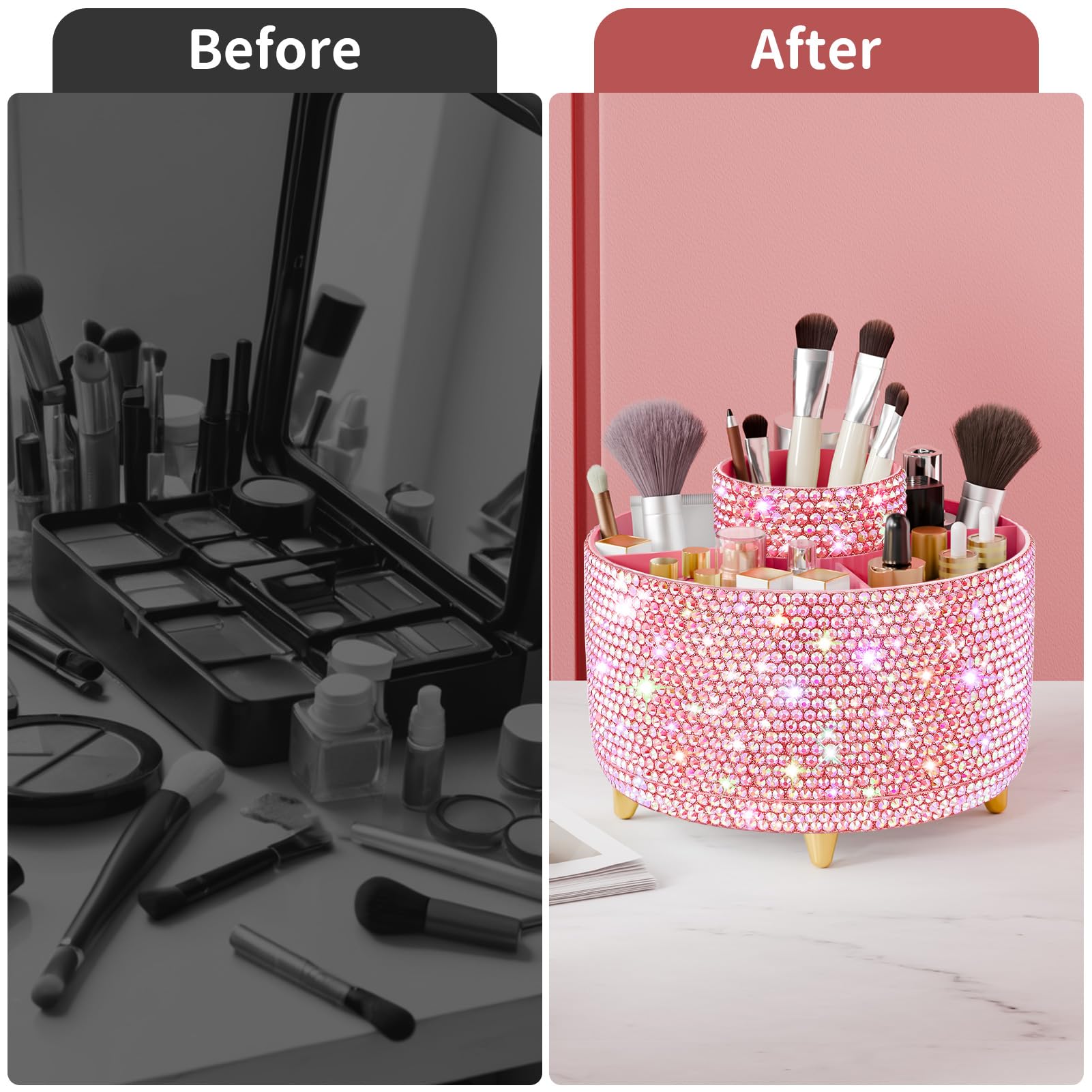 【SHINY APPEARANCE】Our makeup organizer is handmade with a fully diamond wrapped surface, designed to bring a more attractive and sparkling appearance. Which must be the best charming ornament for any countertop, vanity, or dresser
