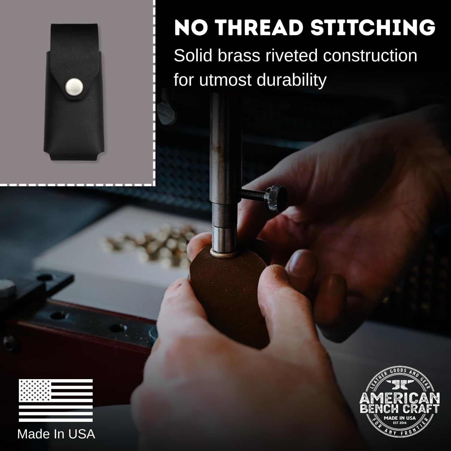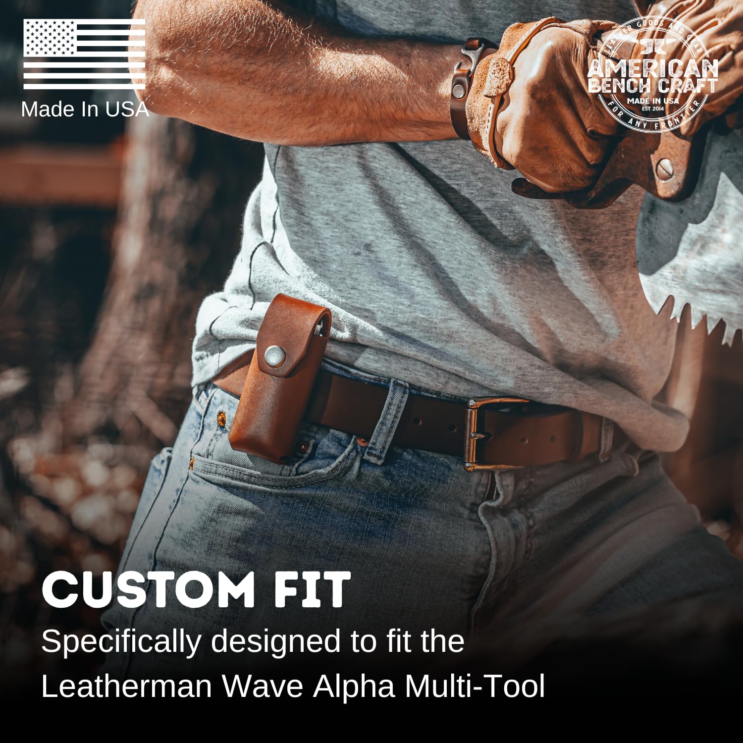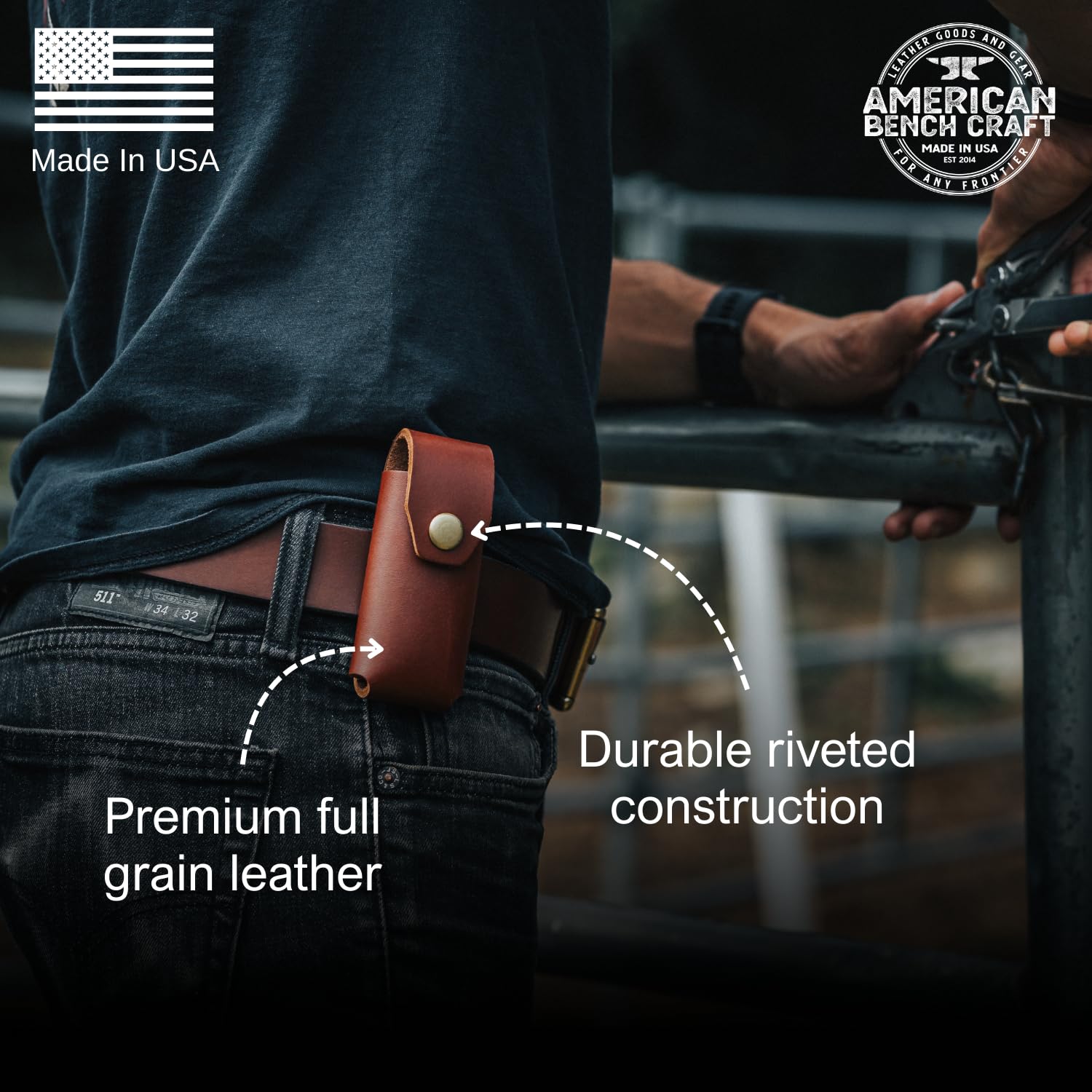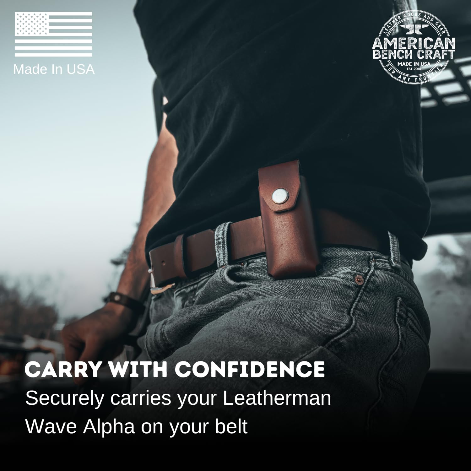 Made in the USA: This multitool belt sheath is proudly crafted by American Bench Craft, a veteran-owned company based in Wilmington, Massachusetts. By choosing this multitool case, you're supporting American craftsmanship and veterans.
