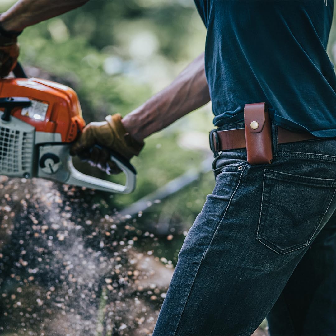 Timeless Leather Durability: Our multitool belt pouch is made of thick full-grain leather which is the toughest and most beautiful leather available. This multitool belt holster is built to endure the harshest conditions, keeping your multi-tool safe and ready for action, wherever your adventures take you.