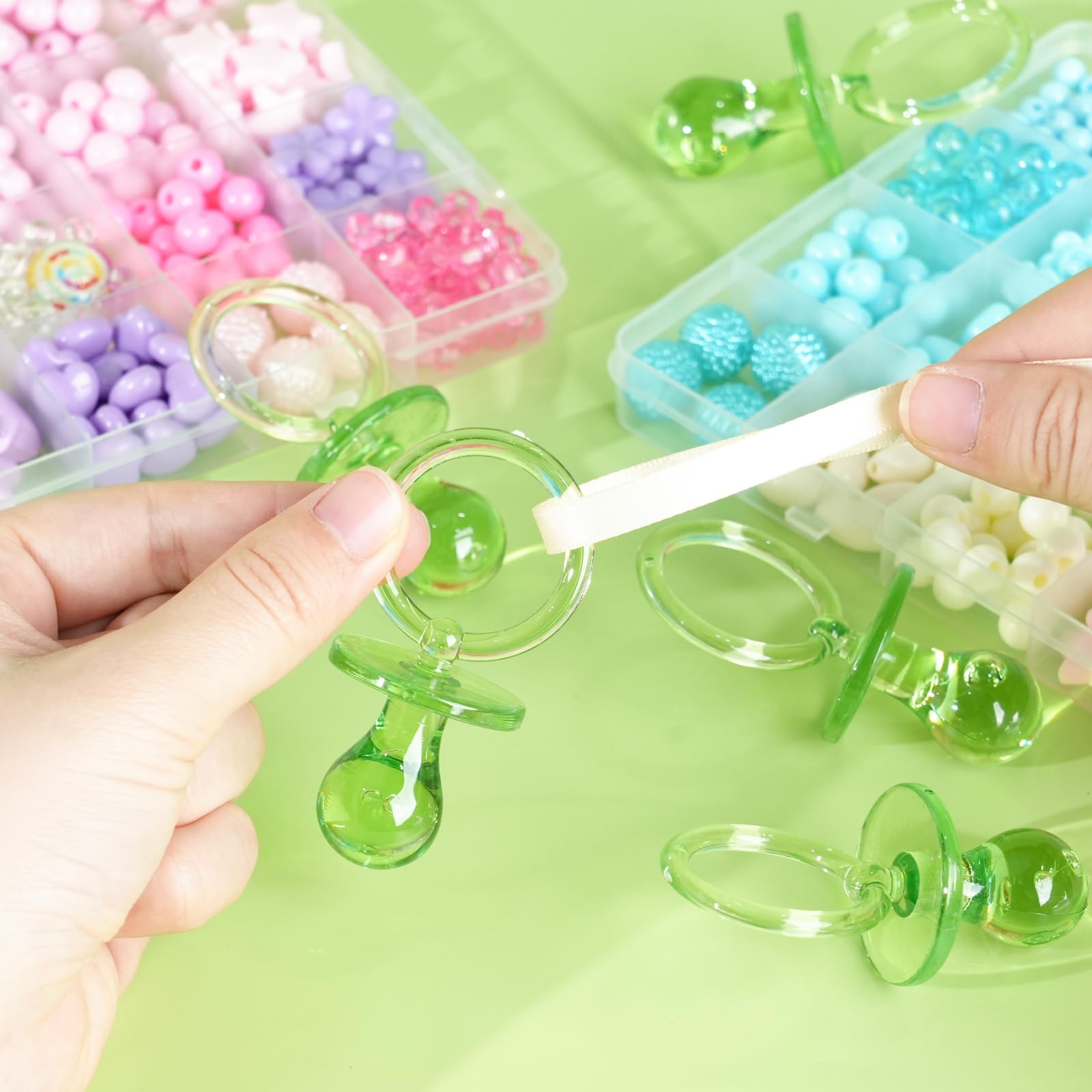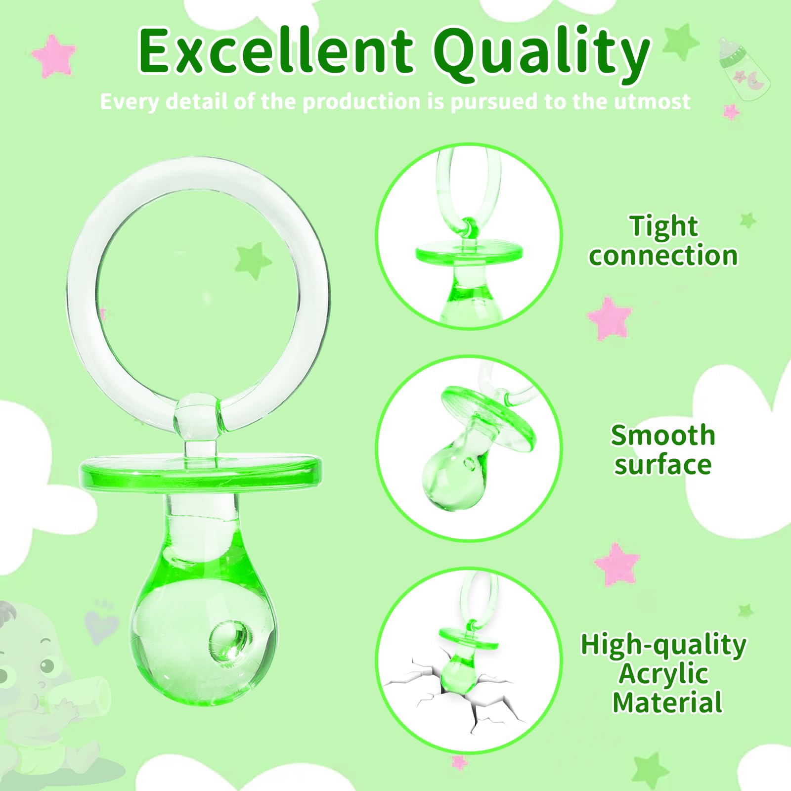 Reliable Acrylic Material - These pacifiers for baby shower game are made of high-quality acrylic material, which is smooth, durable, and odor-free. Safe to use as your table decoration or wear on your body