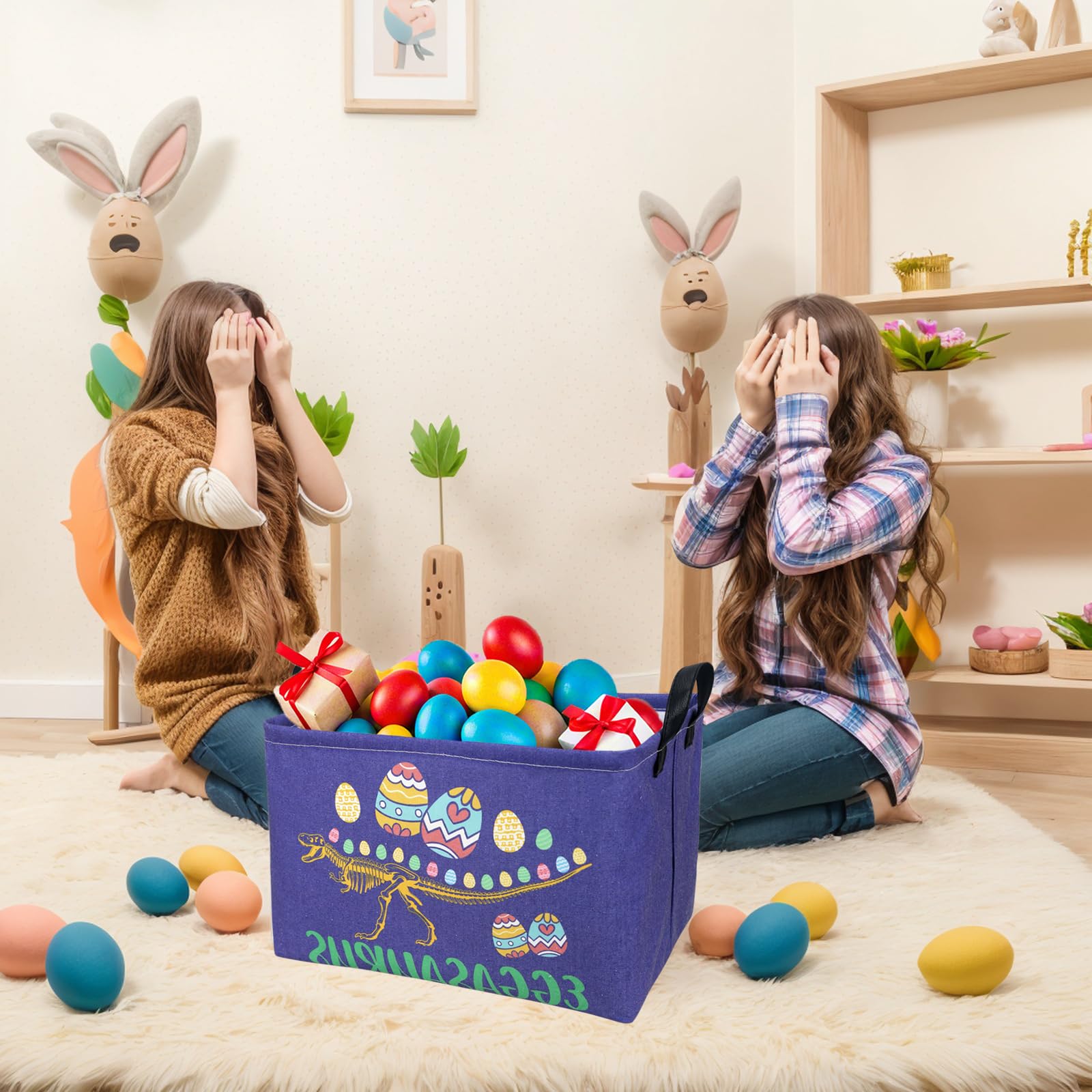 【BASKET MULTIPURPOSE】: An empty Easter gift basket can hold more gifts and is the perfect gift for friends. It is also very suitable for storing children's toys, clothes, and household items in daycare centers, laundry room,kid's room, game room, craft room, bathroom, bedroom, and cloakroom.Using this basket for decoration during Easter is also an ideal choice for searching for Easter eggs or storing holiday gifts and toys.