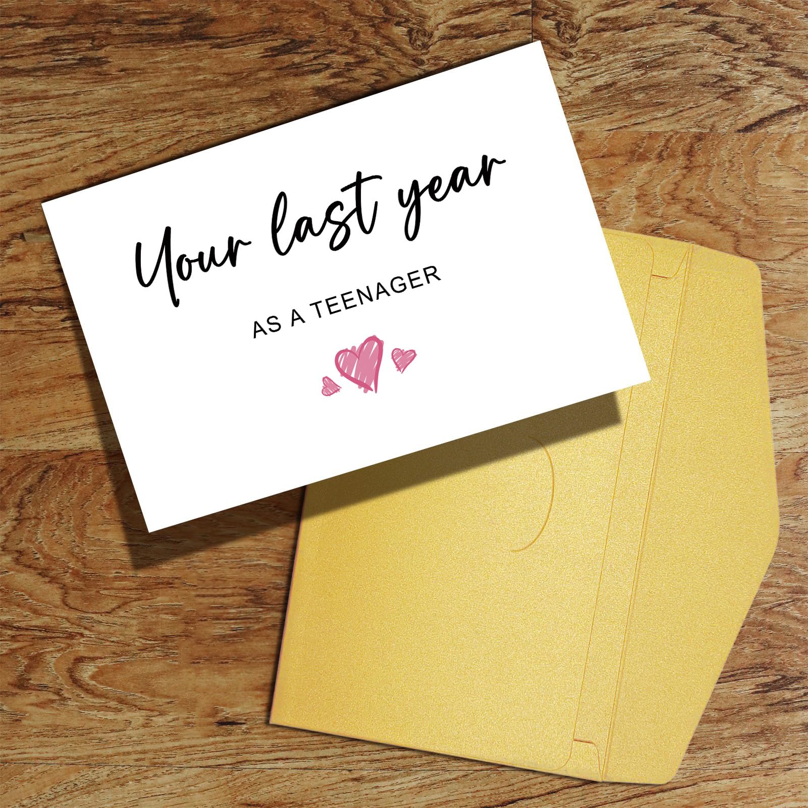 The funny Your Last Year As A Teenager celebration card is perfect 19th birthday gift for your son, daughter, girlfriend, boyfriend, sister, brother, granddaughter, grandson, niece, nephew, etc.