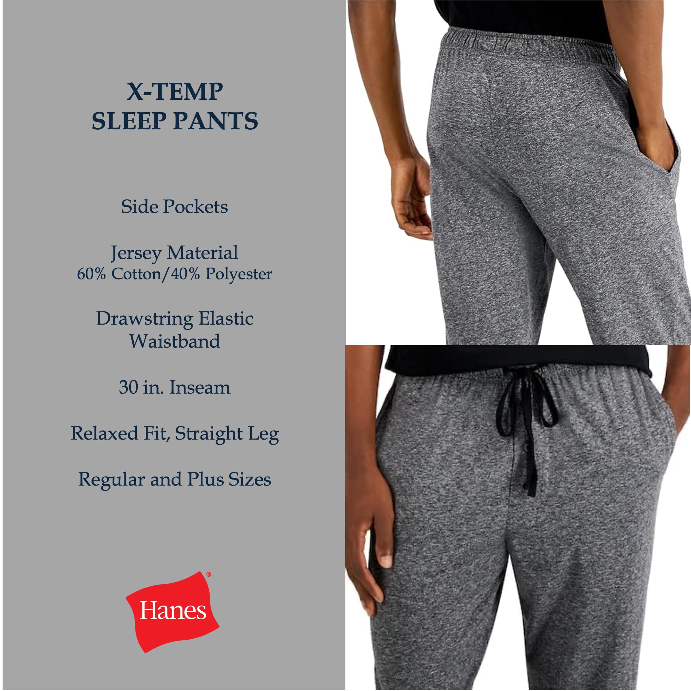 Incredible Comfort: The Hanes Men's X-Temp Jersey Pant designed using non-irritating solids: 100% cotton; heather: 60% cotton/40% polyester jersey, these feel sensationally soft on the skin and make the perfect loungewear for catching a comfortable nap, just relaxing in the house or getting a great nights sleep