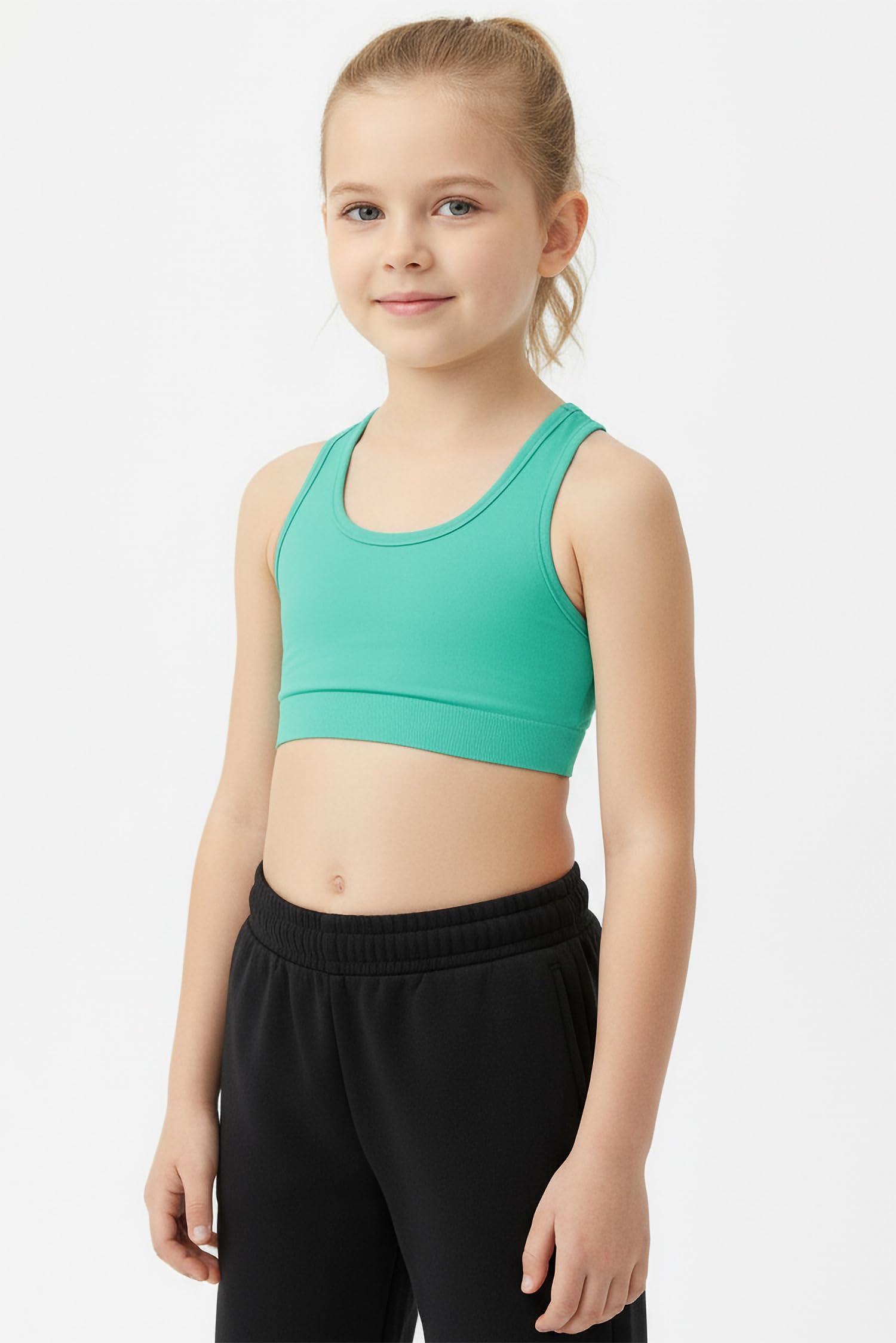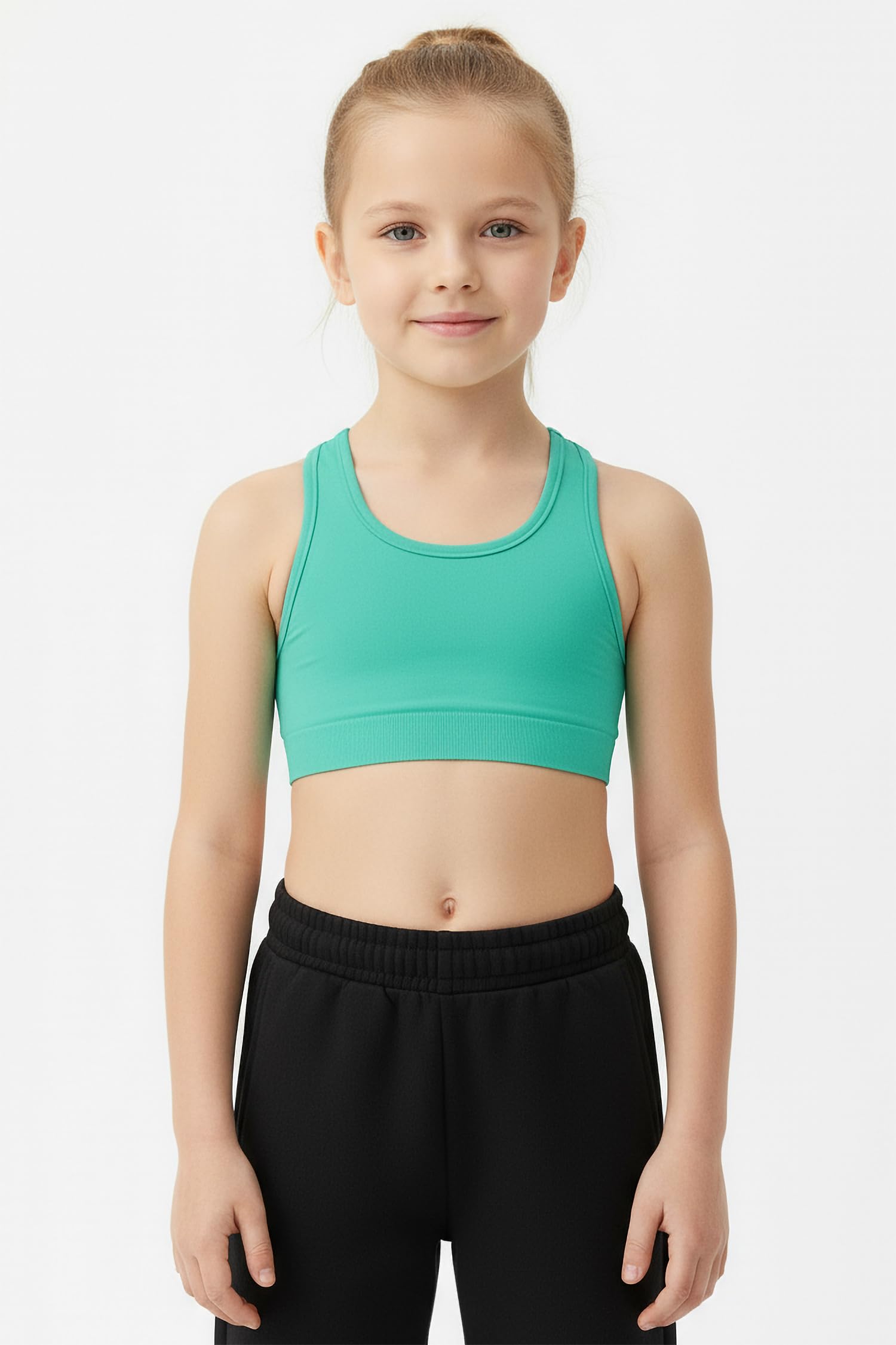 This athletic top is a seamless training bra that provides gentle support and coverage without any adjustable straps. The bra has a seamless construction that eliminates irritation or discomfort, and fits snugly and comfortably against the body, allowing young girls to move freely during their activities. The outfit's moisture-wicking capabilities keep kids sweat-free and dry during exercise, making it a perfect choice for active children who want to stay comfortable and cool while they play.
