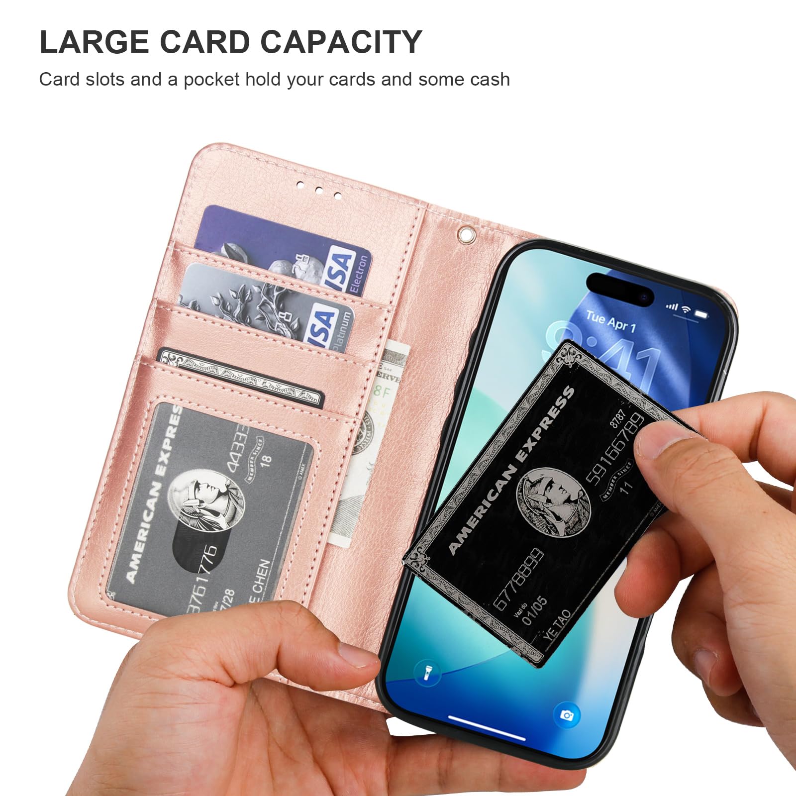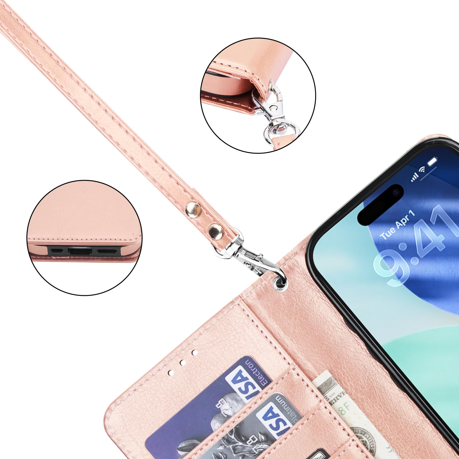 【Convenient Wrist Strap】: Attached with a removable wristlet, this magnetic leather flip case can be hanged on your phone as you like when you don't want to hold it in your hand. Round corners provide a comfortable grip while premium PU leather offers a smooth texture.