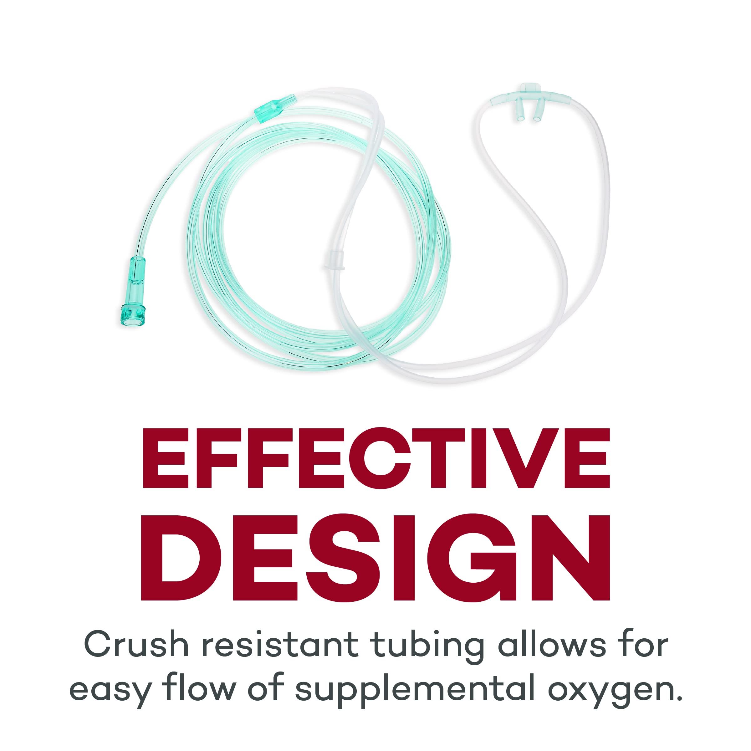 Effective Design: This device consists of a single-use, crush resistant 7 ft. (2.1 m) lightweight tube which on one end splits into two prongs. The other end of the tube is connected to an oxygen supply.