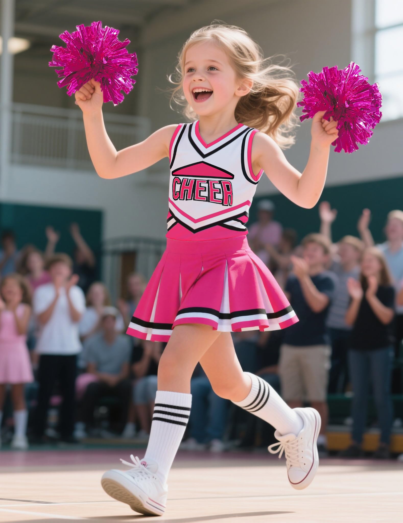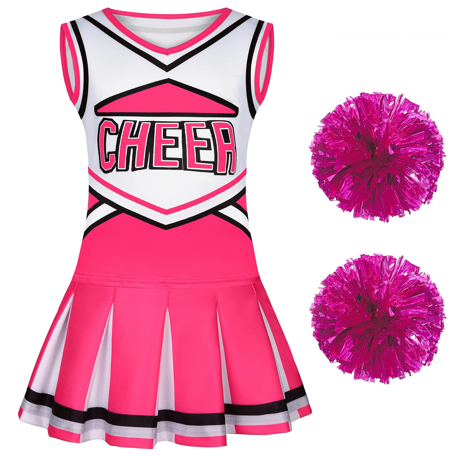 Girls Cheerleader Costume : included cheerleader tops,skirts and a pair of cheerleading pom poms. Our Cheerleader Costume comes in four colors:bule ,green,red,pink ,you can choose any one you like.The bright colors of make your girl's stand out from the crowd.