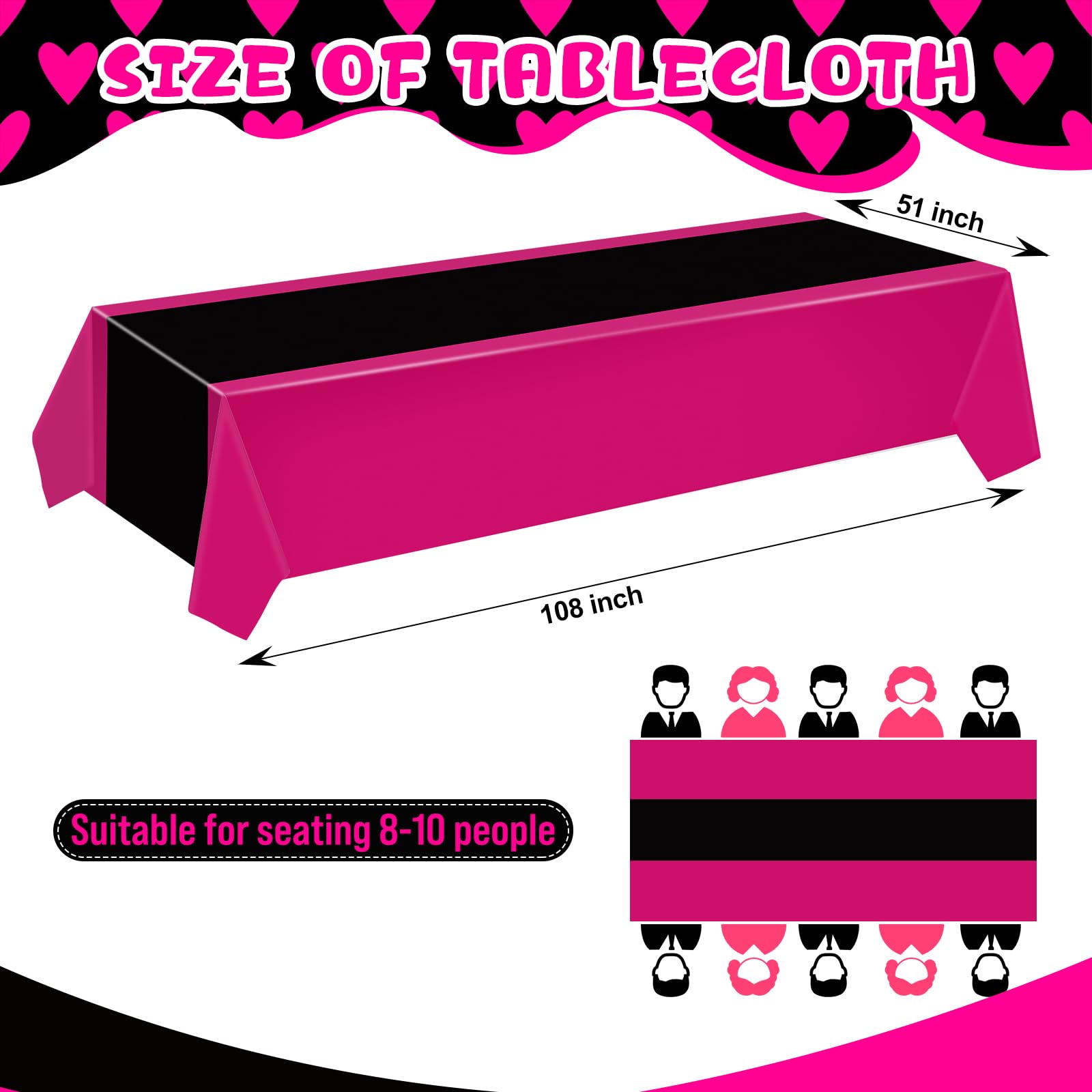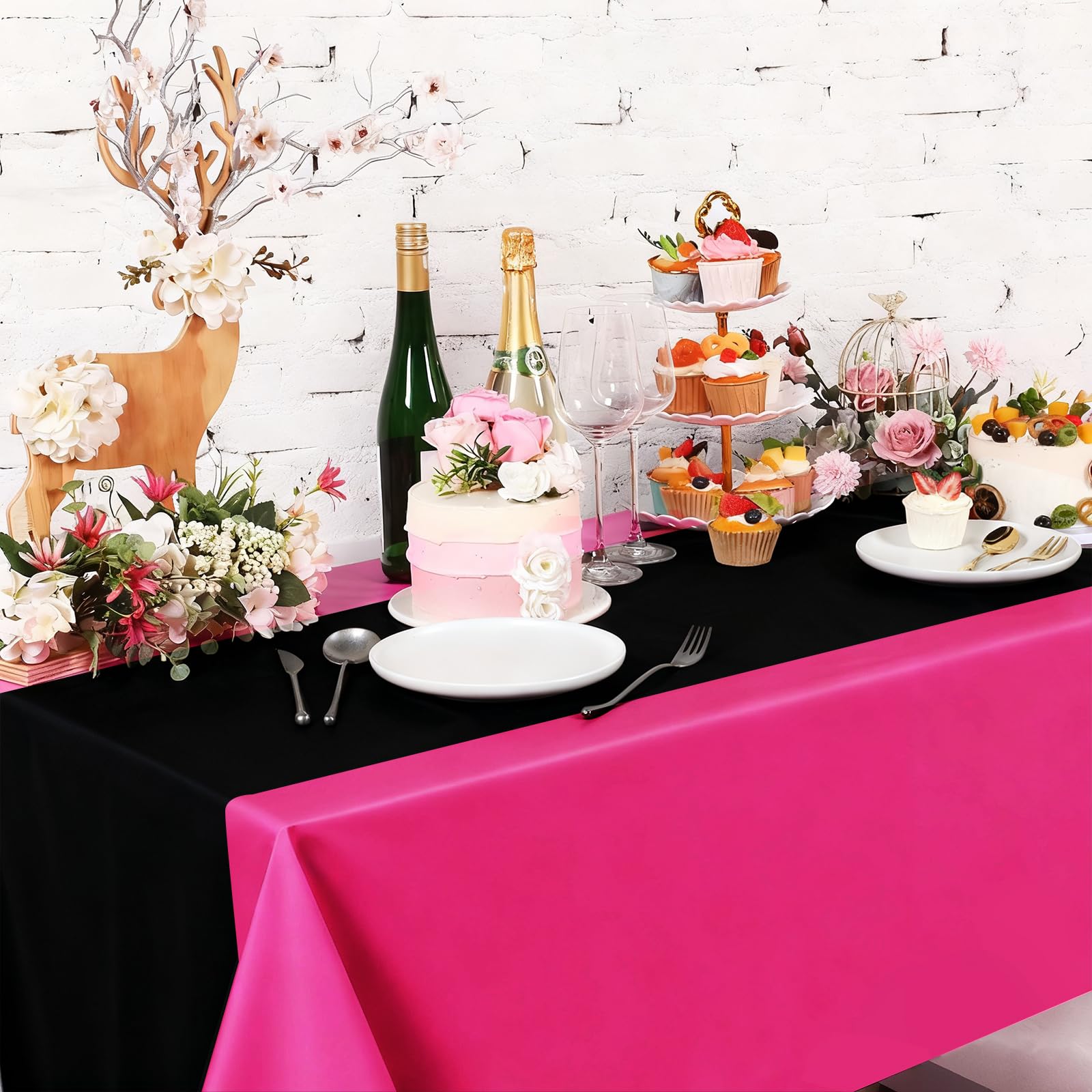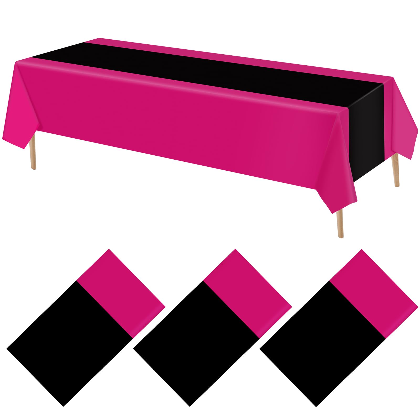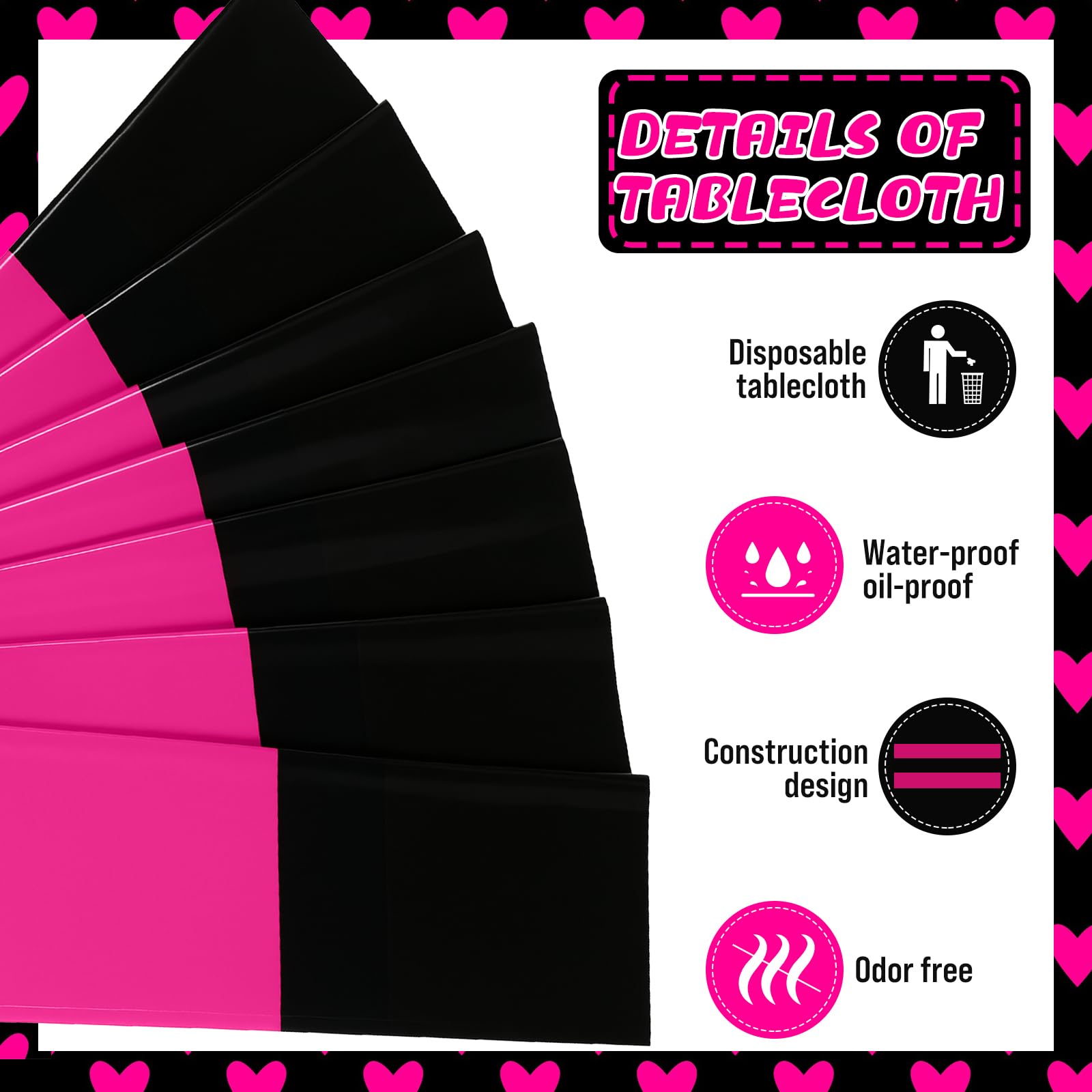 Elegant Design: the black and hot pink design of these plastic table cloth disposable adds elegance to any dining experience, you can use them directly or cut them to decorate your wedding table or desk according to your needs and preferences; Your guests will be impressed with the sophisticated atmosphere they create