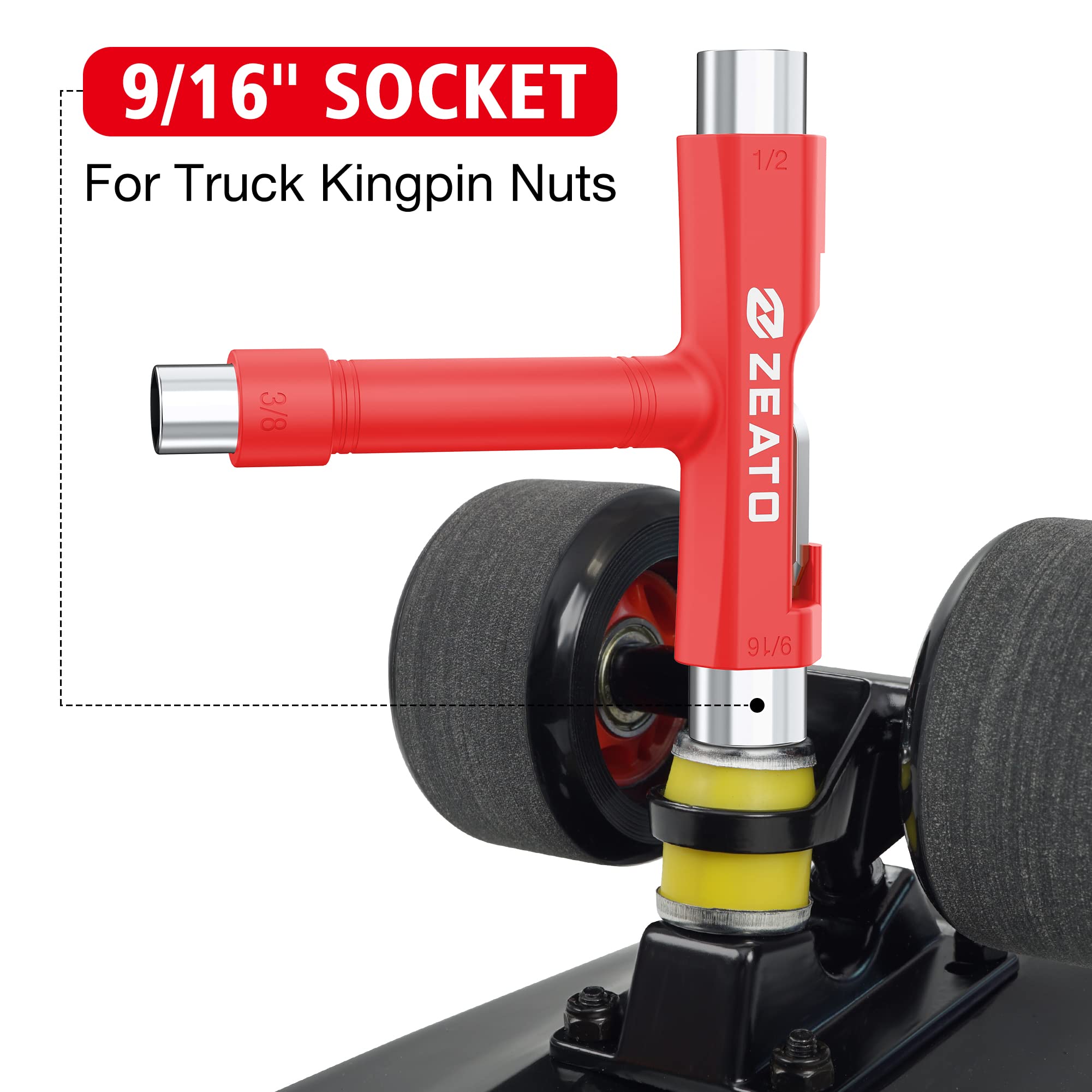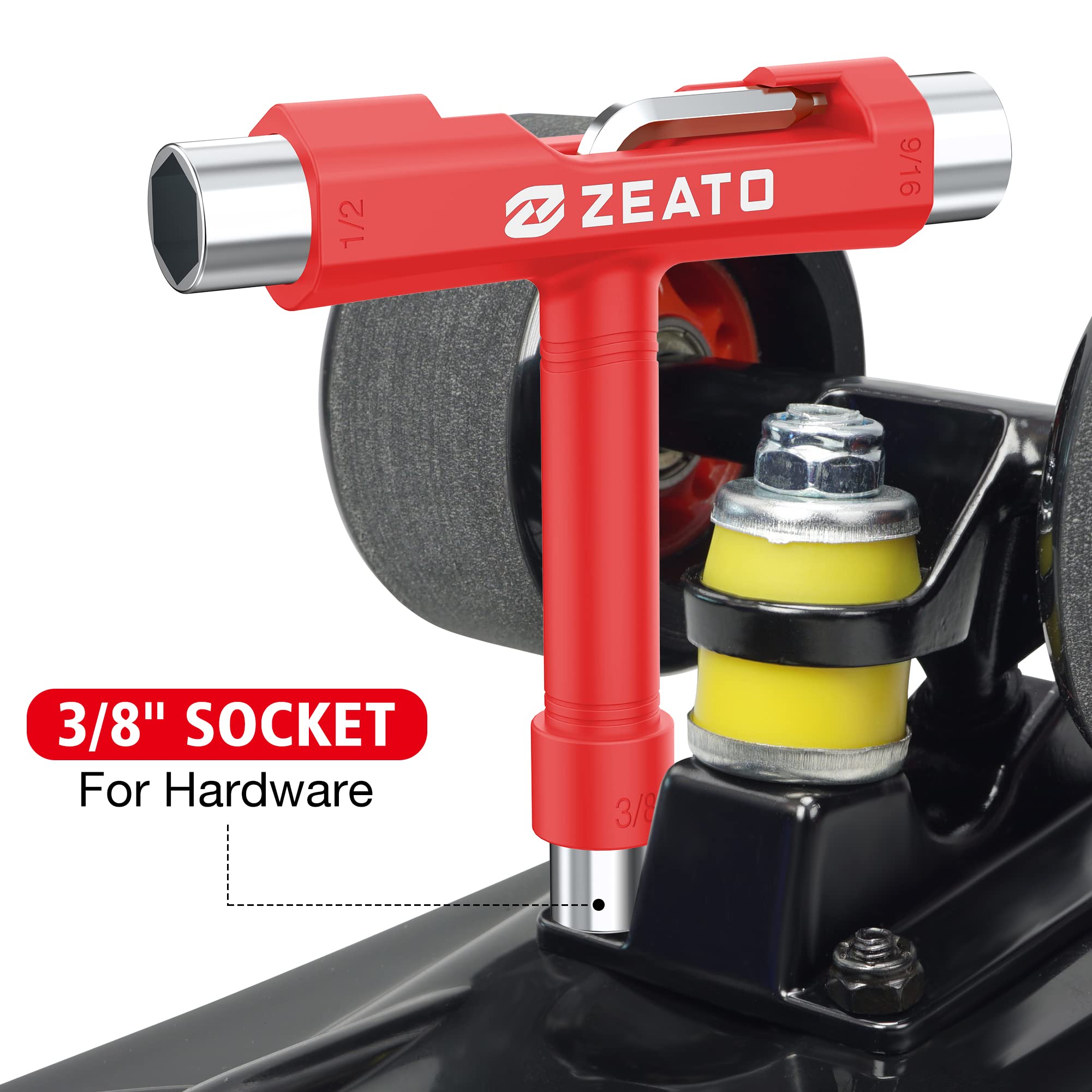 [Multi-functional Tool]: A multi functional skateboard T tool that allows you to adjust axle nuts, mounting hardware, and the kingpin nut on the top of the truck; which is perfect for completing skateboard assembly