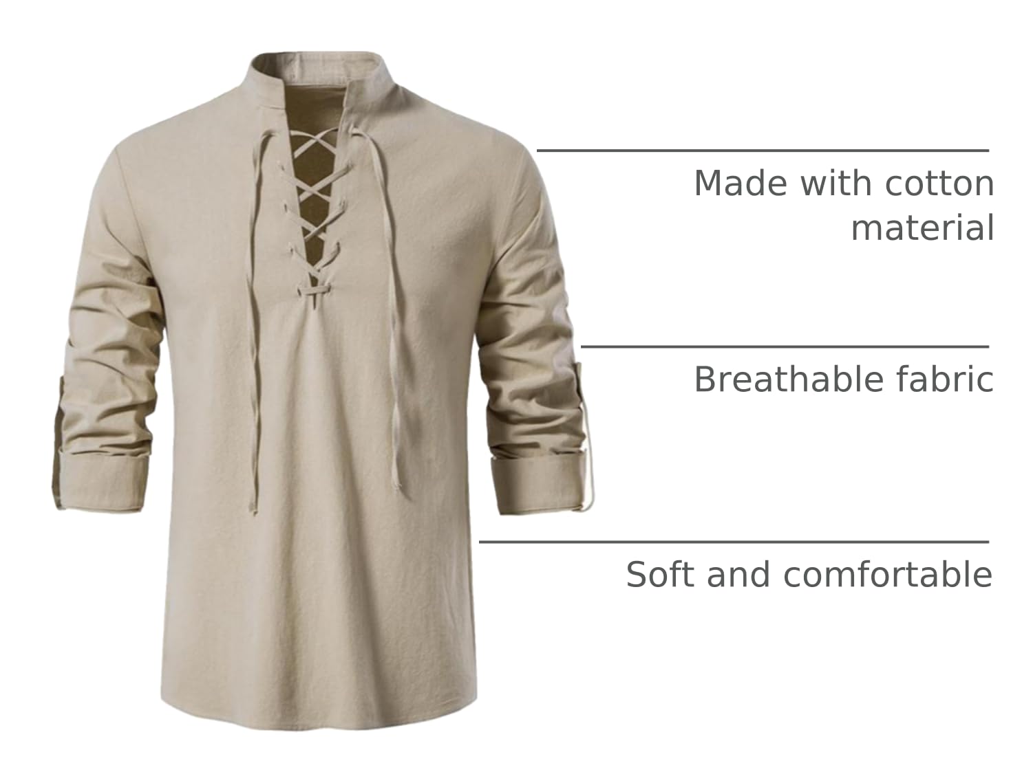 LACE UP DESIGN: The medieval renaissance shirt has a novel design with a laced design. The drawstring design makes the overall look more retro. And this shirt can be matched with any pants: for example, casual pants and white shoes.