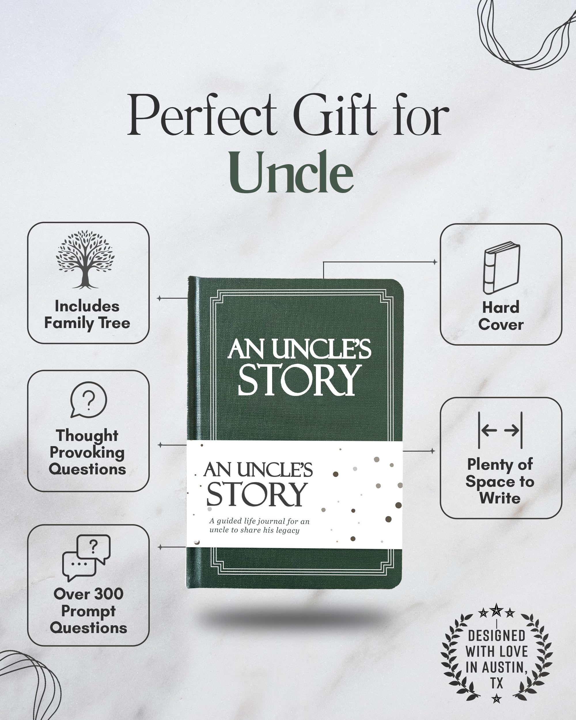 Our guided legacy journal with prompts is a perfect gift idea for an uncle. There are more than 250 fun questions to fill out, and these questions are carefully designed to help an uncle share his memories and tell his life story in his own way.