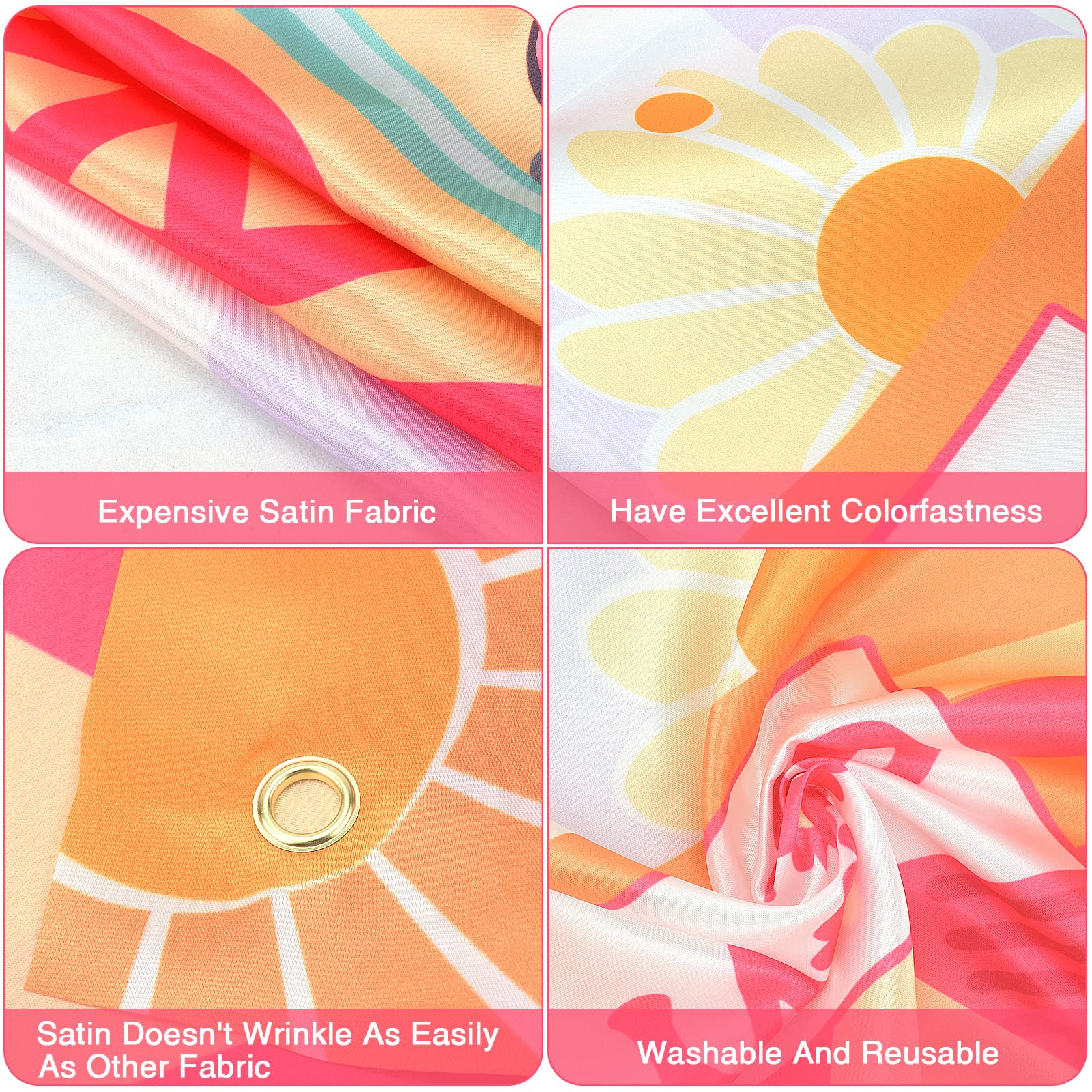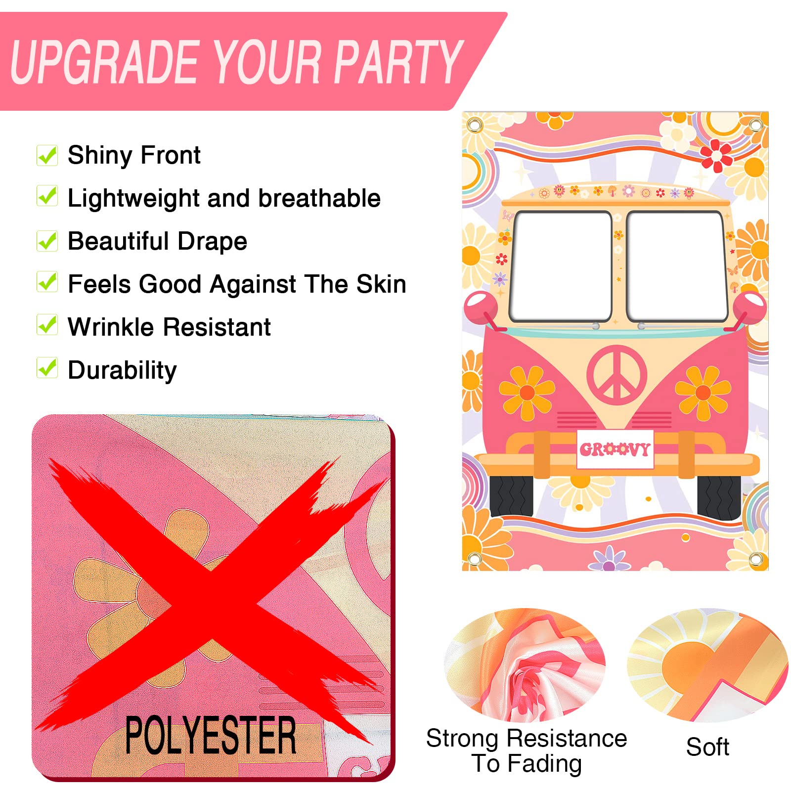✿ REASONS TO BUY: Background banner: the photo booth backdrop is made of durable Satin fabric, with vibrant colors and realistic details. it's easy to handle and move. Memories may fade but photographs last forever. It is a special Groovy Hippie photo prop which is the addition to your themed party. Believe that both adults and children can have a lot of fun with this interesting banner when taking photos.