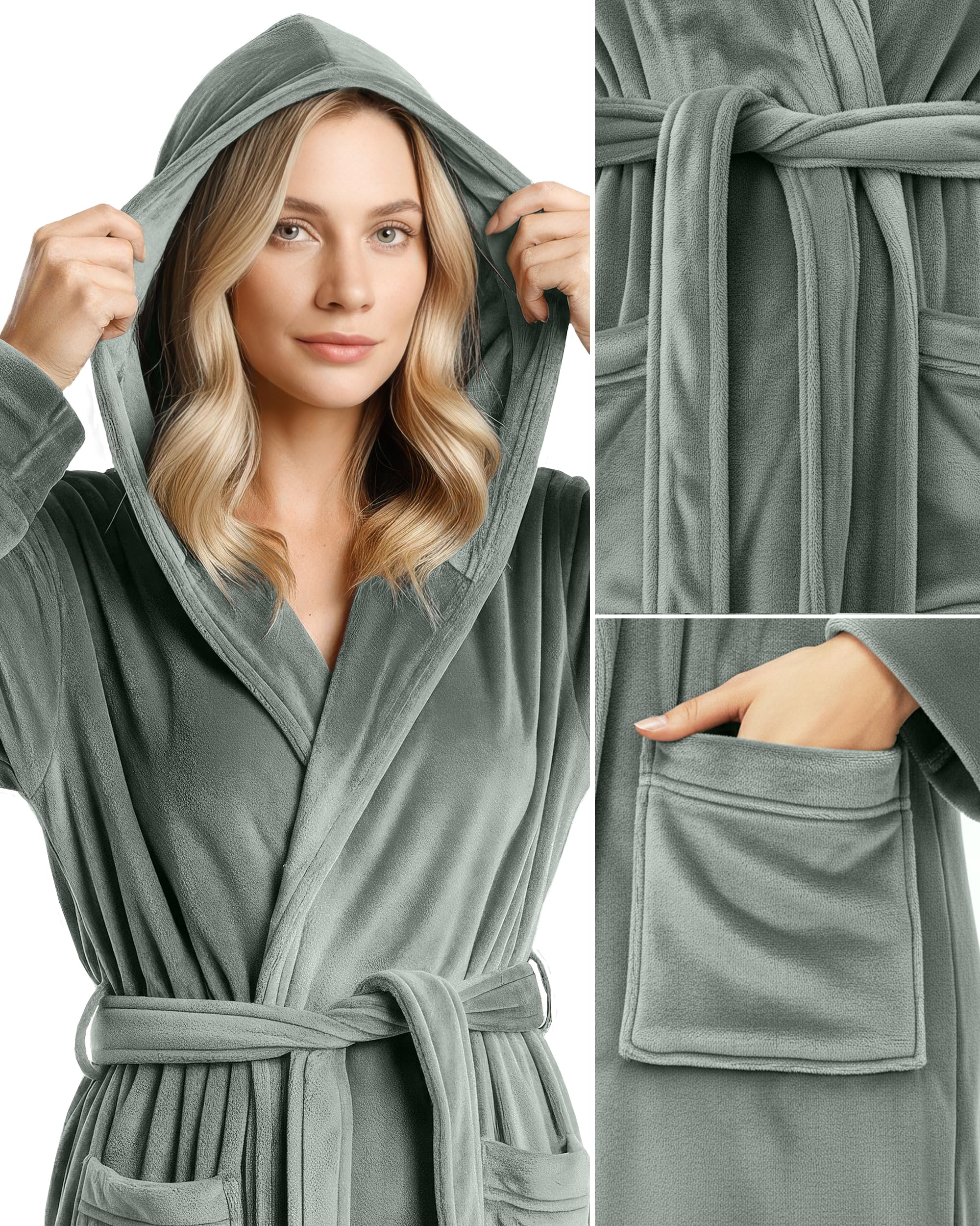 Description Enjoy refined comfort with our Women’s Hooded Bathrobe, thoughtfully created for cozy, luxurious relaxation. Designed with a soft hood for extra warmth, this bathrobe is crafted from plush, fluffy fleece with an ultra-soft feel that’s gentle on the skin. Made for comfort instead of absorbency, this non-absorbent bathrobe is ideal for post-shower lounging, peaceful mornings, or relaxing evenings at home. Its stylish design and premium appearance bring everyday luxury while keeping you warm and comfortably at ease.