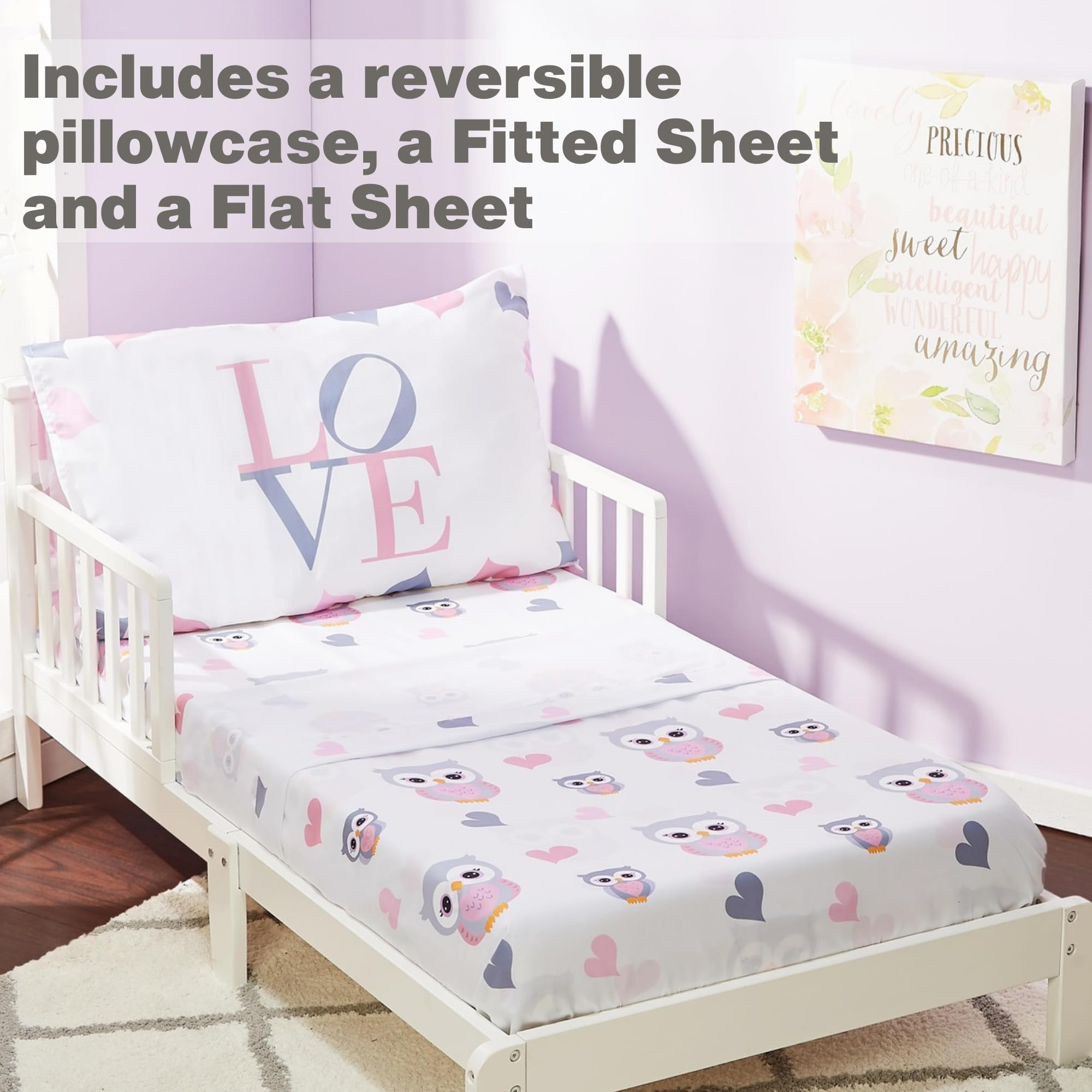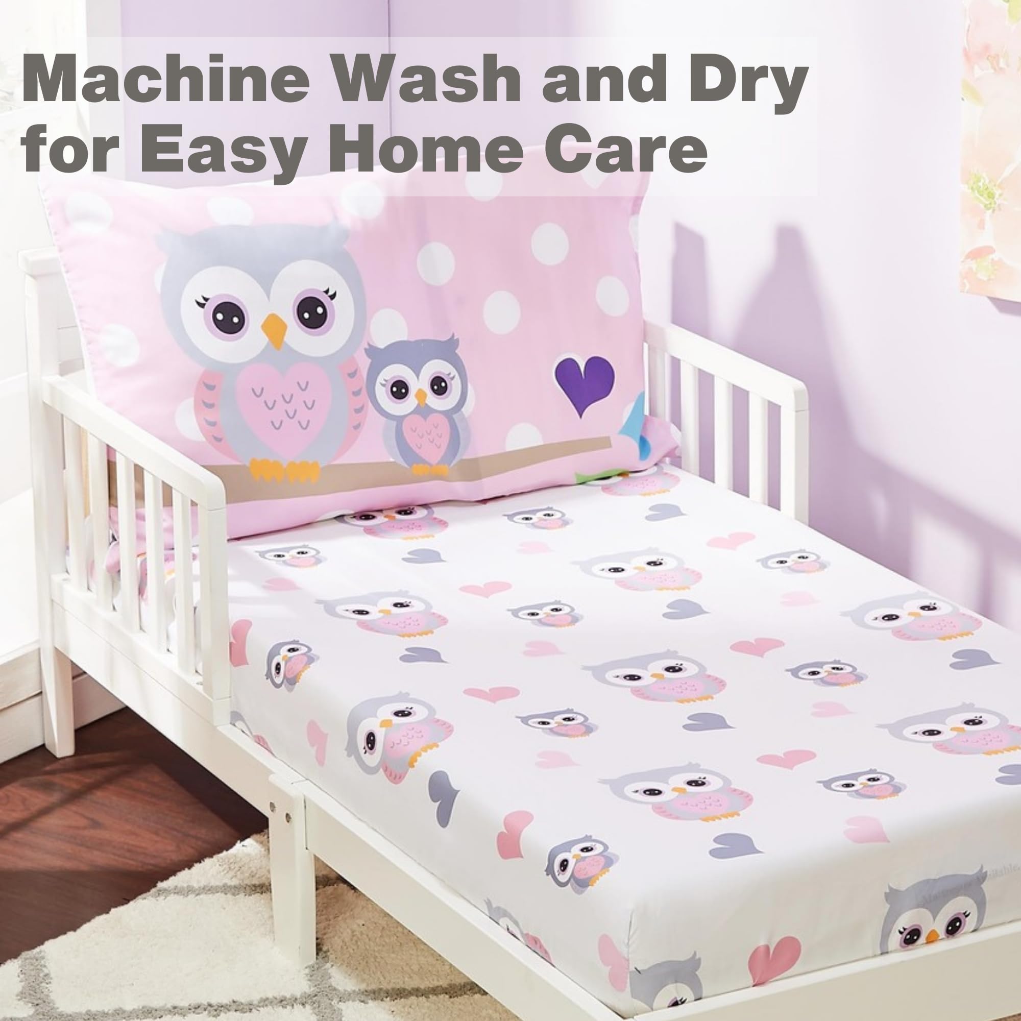 PERFECT FIT – This set includes a flat sheet (60” by 45”), a fitted sheet (52" by 28") and a pillowcase (30" by 20"). The fitted sheet is made to fit a standard size (52” by 28”) toddler mattress or crib with an 8” pocket. We have tested it on a ton of crib/toddler mattresses, so you don’t have to.