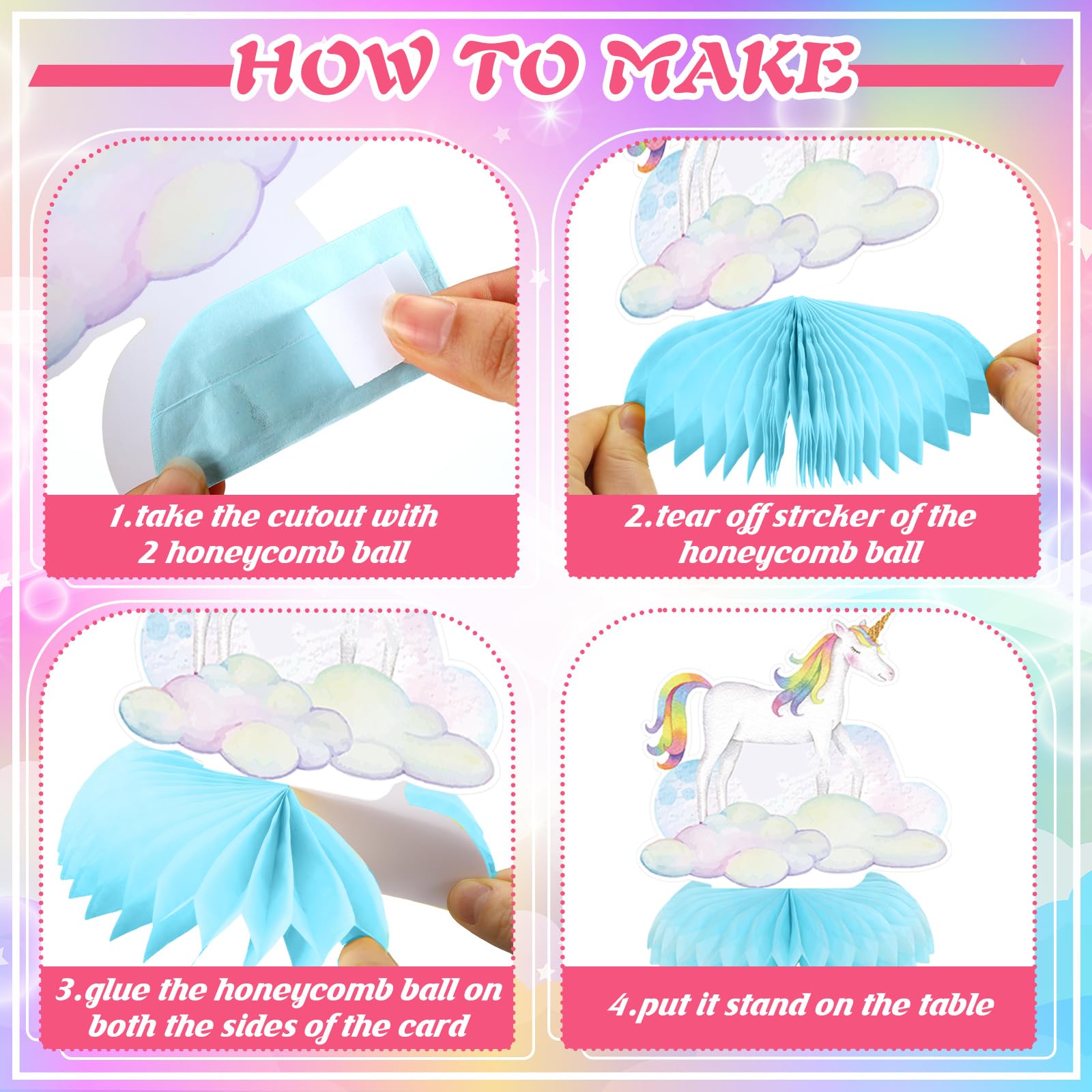 Easy to Assemble: it takes only a few seconds to complete the honeycomb decoration of these unicorn themes, saving time and labor; Tear the adhesive tape seal of the honeycomb and stick to the card; Put them in your favorite exhibition area and enjoy a lively time