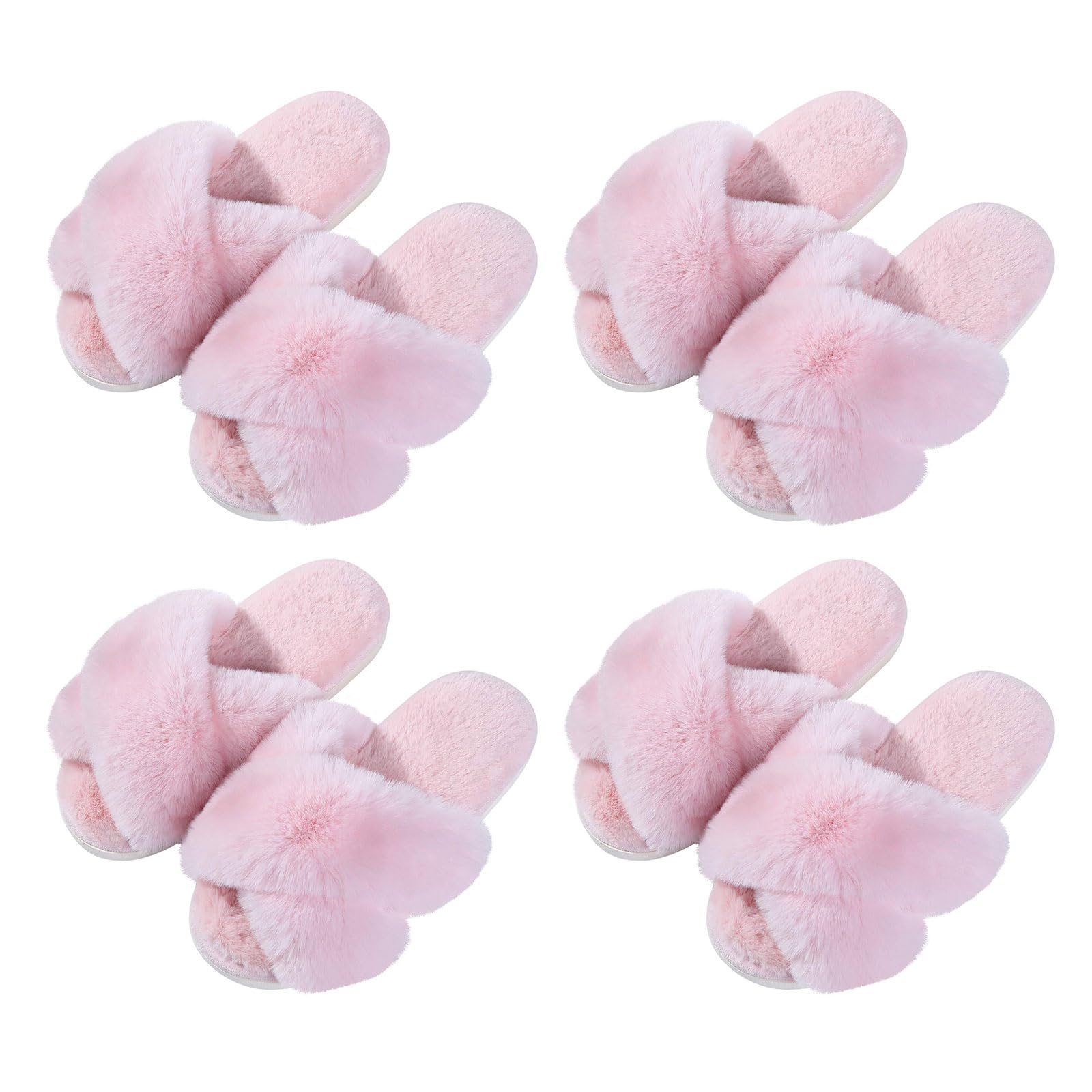 FUZZY HOUSE SLIPPERS: Fuzzy faux fur upper and footbed surround your foot in cloud comfort, making your feet cozy. A good choice for reducing muscle fatigue after a long day of work.